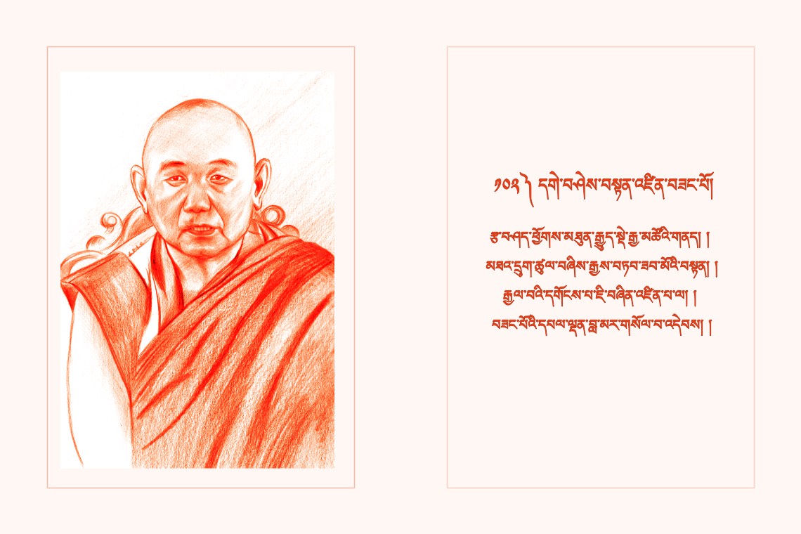 མཐར་བོད་རྒྱལ་ལོ་ ༢༡༥༠ ཟླ་བ་ ༠༨ ཚེས་ ༣༠། ཕྱི་ལོ་ ༢༠༢༣ ཕྱི་ཟླ་ ༡༠ ཚེས་ ༡༤ ཏེ་གཟའ་སྐར་འཕྲོད་འབྱོར་རབ་ཏུ་དགེ་བའི་ཉིན་དཔལ་ལྡན་སྨད་རྒྱུད་པའི་མཁན་རབས་ ༡༠༣ པའི་ཁྲི་འཕང་མཐོན་པོར་མངའ་གསོལ་ཏེ་༧རྒྱལ་བསྟན་སྤྱི་དང་བྱེ་བྲག་གྲྭ་ཚང་འདིའི་གསང་སྔགས་ཀྱི་འཆད་ཉན་དམ་ཆོས་འགྲེལ་པ་བཞི་སྦྲགས་དང་བདེ་གསང་འཇིགས་གསུམ་ཀྱི་བསྐྱེད་རྫོགས། རྗེ་བཙུན་ཤེས་རབ་སེངྒའི་རྒྱུད་ཀྱི་ཊཱིཀྐ་སོགས་འཆད་ཉན་རྣམས་ཆད་ལུས་མེད་པར་བསྟན་པའི་མིག་རྒྱན་དུ་འགྲོ་བར་མཛད་པའོ།། [མཆན། བརྒྱུད་འདེབས་ཚིགས་བཅད་རེ་རེ་བཞིན་མཁན་པོ་གོང་མ་འཕོས་མཚམས་སུ་འོག་མའི་བླ་མ་དབུ་མཛད་ནས་ཕུལ་ཏེ་བརྒྱུད་རིམ་ནང་བཅུག་དགོས་པ་ཡིན། འོན་ཀྱང་འཆད་ཉན་ལོ་དུས་ཚང་བར་མཛད་ཁོམ་མ་བྱུང་རྣམས་ཀྱི་བརྒྱུད་འདེབས་ནས་བཅུག་སྲོལ་མེད། ཕྱིས་ནས་མཁན་ཁྲིར་རིམ་བྱོན་གྱི་ལོ་རྒྱུས་རྣམ་ཐར་མཚམས་འདི་ནས་བསྣན་དགོས་སོ། །]
