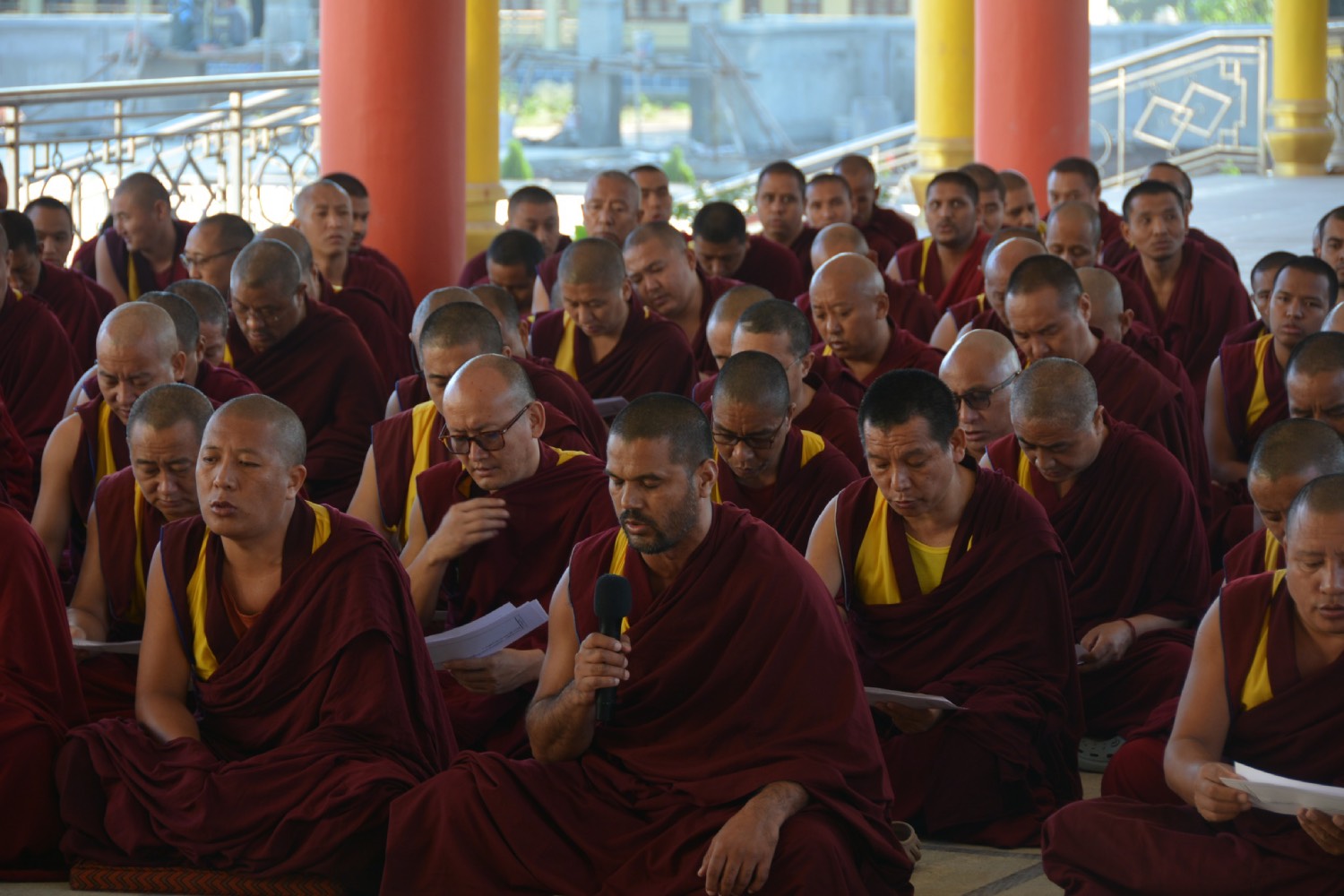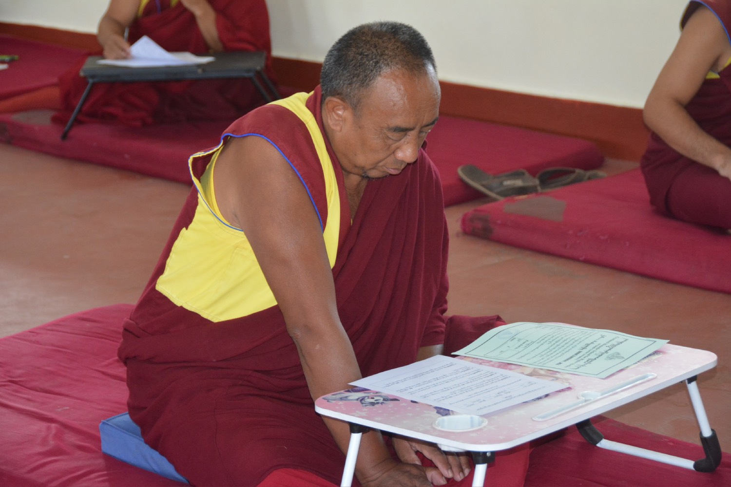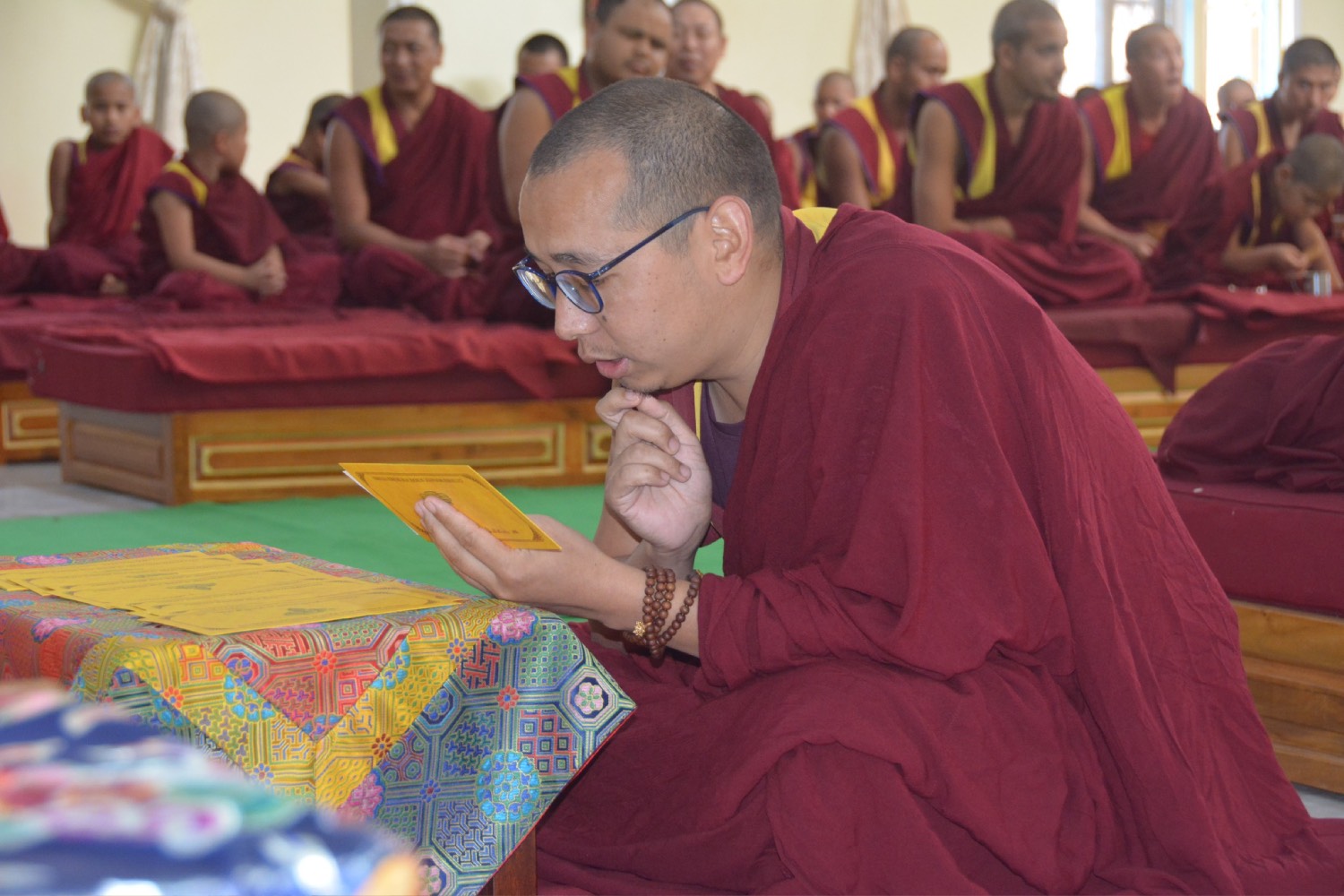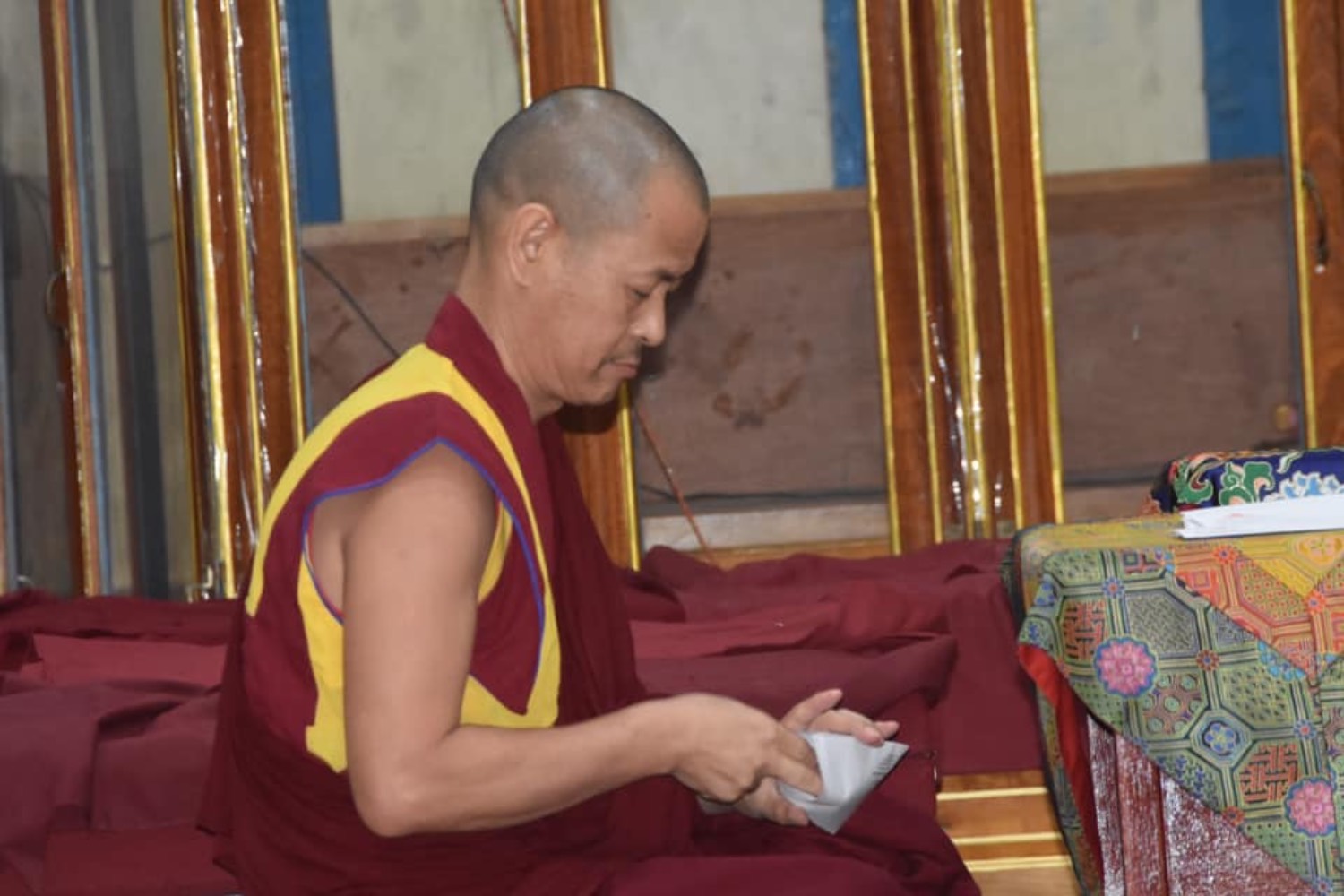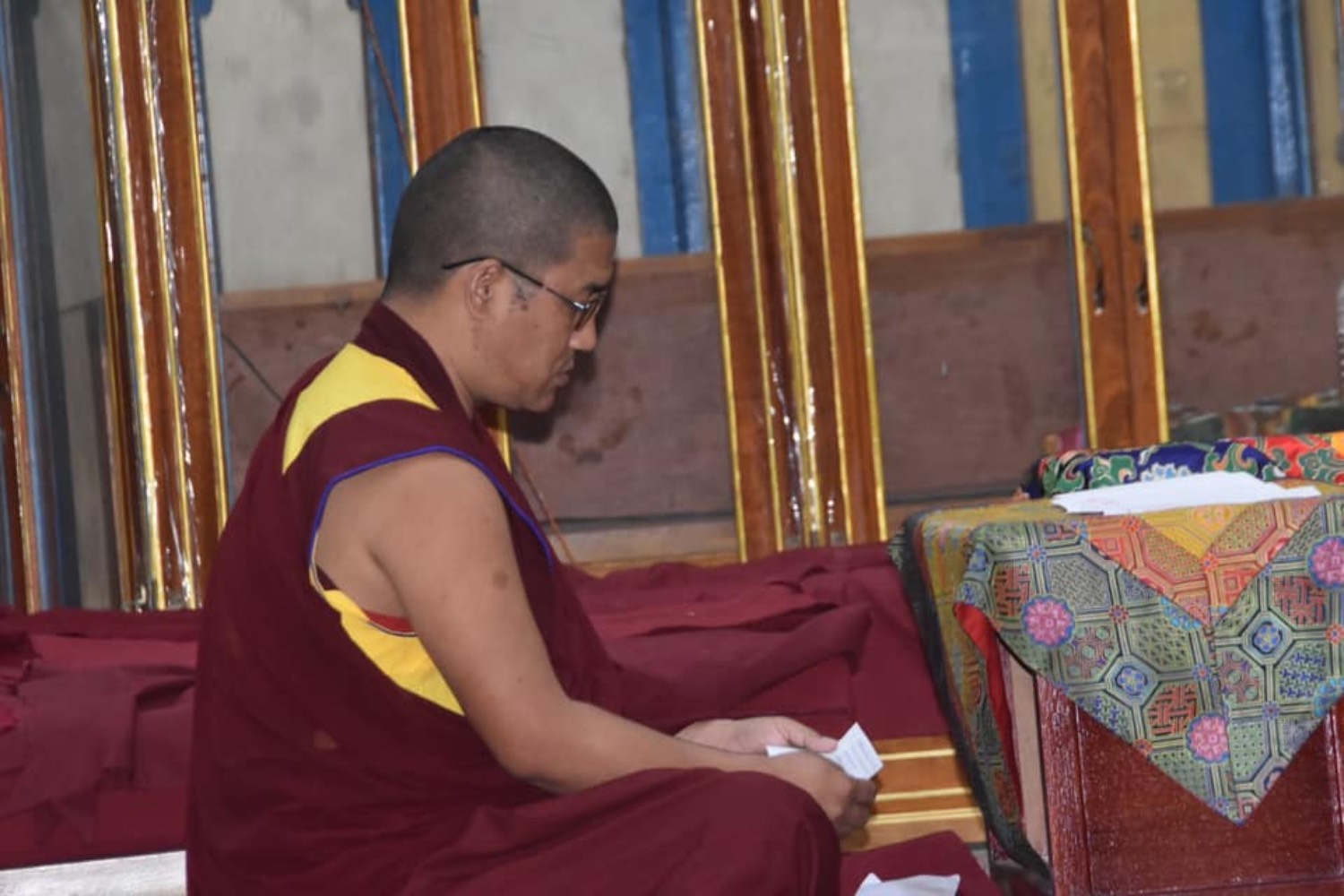 གདན་ས་ཁག་ནས་ལྷོ་ཕྱོགས་དཔལ་ལྡན་སྨད་རྒྱུད་གྲྭ་ཚང་དུ་ཆོས་ཐོག་འགྲིམ་བཞིན་པའི་