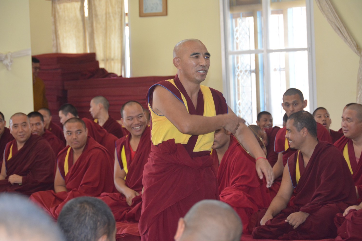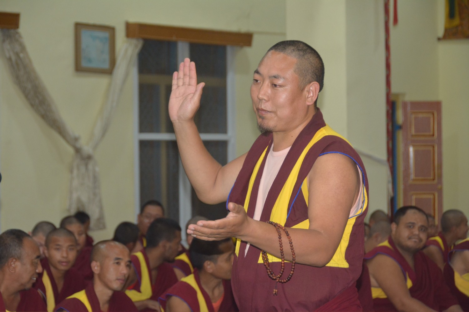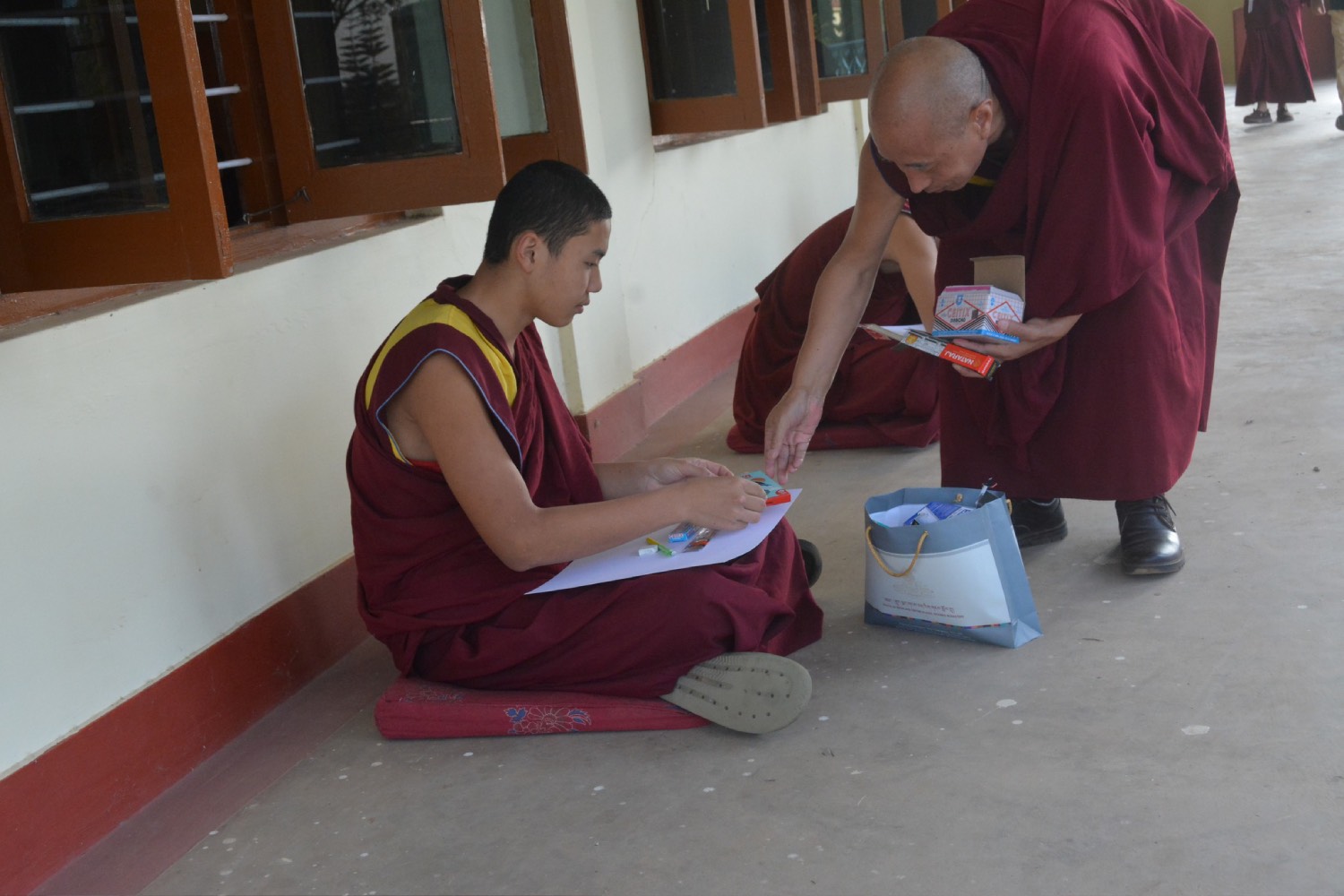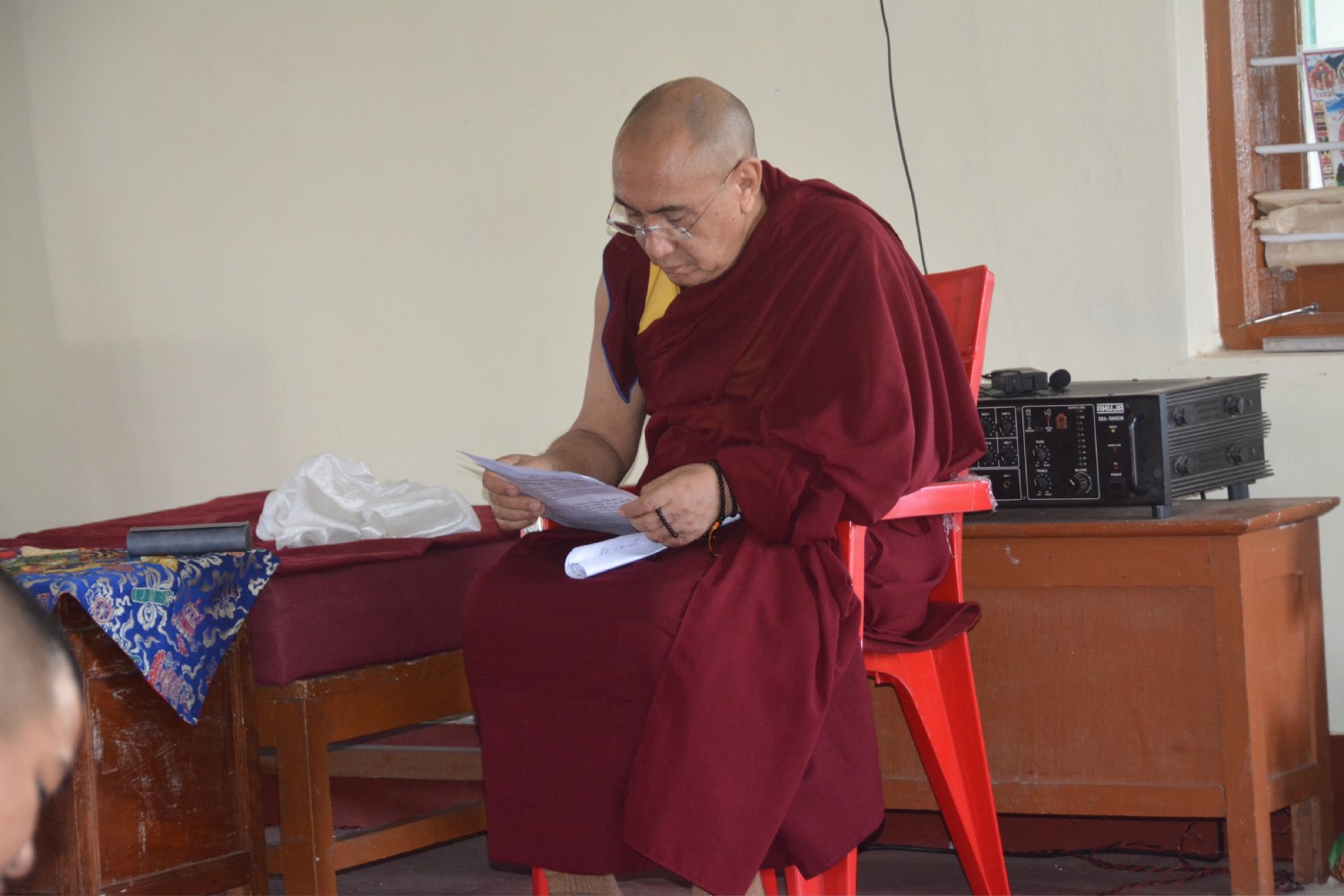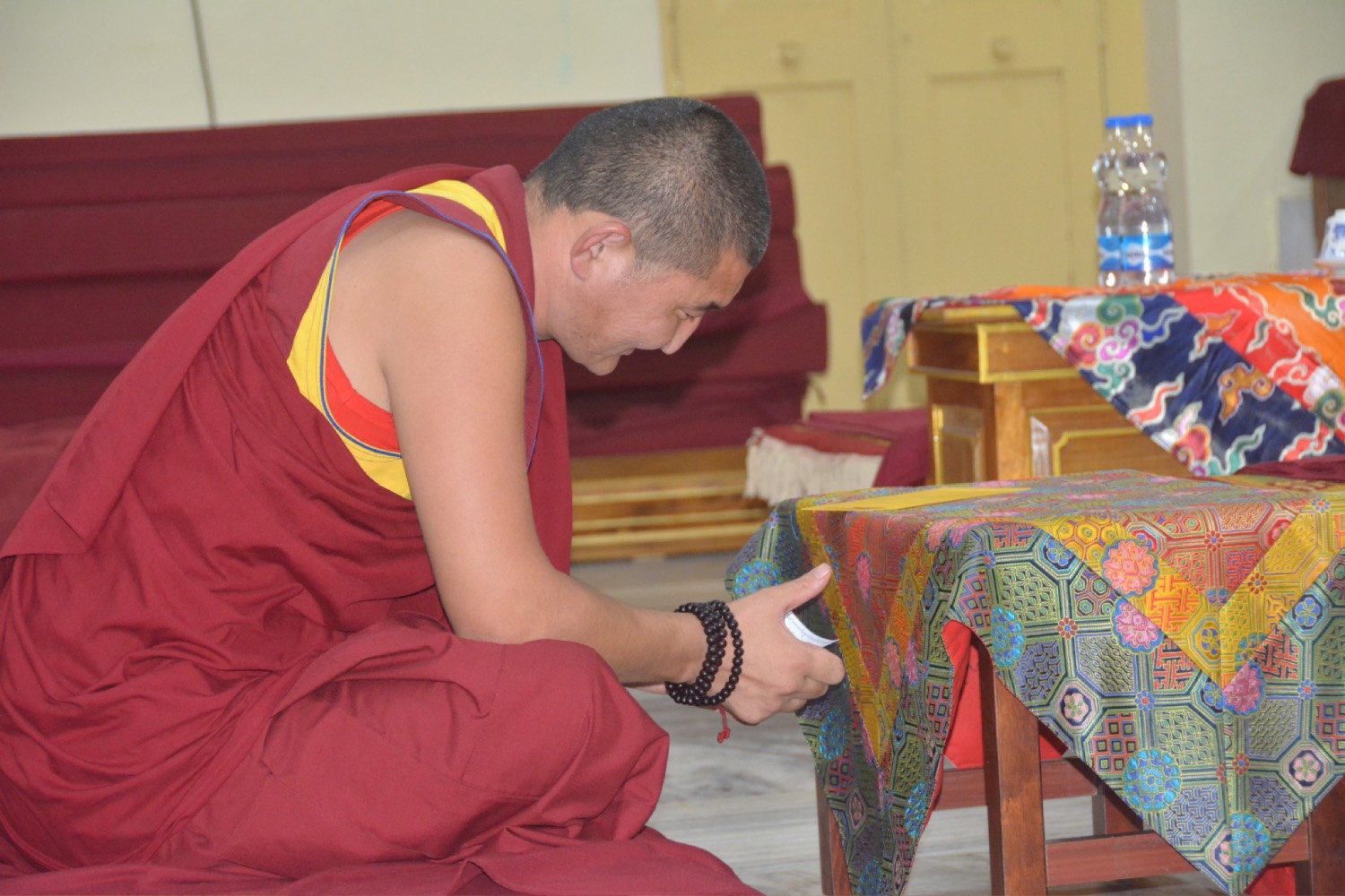 གདན་ས་ཁག་ནས་ལྷོ་ཕྱོགས་དཔལ་ལྡན་སྨད་རྒྱུད་གྲྭ་ཚང་དུ་ཆོས་ཐོག་འགྲིམ་བཞིན་པའི་
