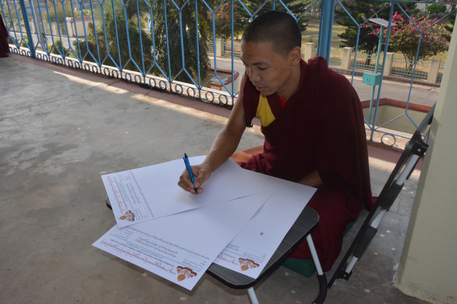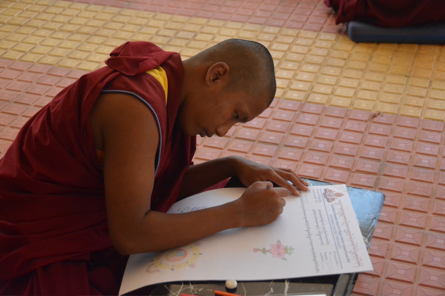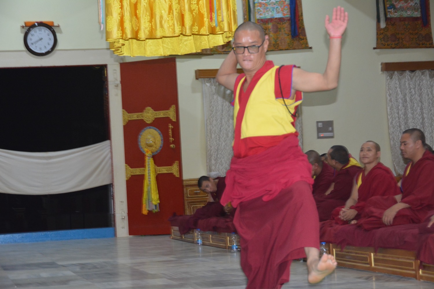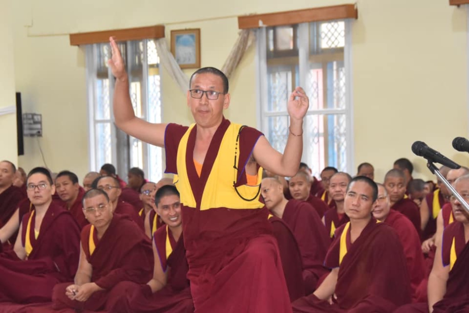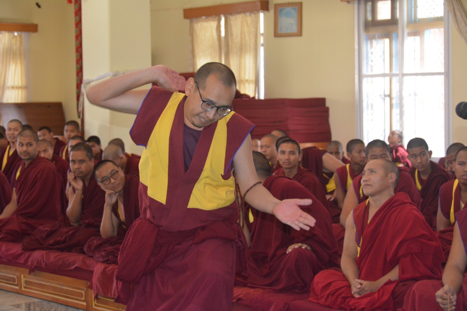གདན་ས་ཁག་ནས་ལྷོ་ཕྱོགས་དཔལ་ལྡན་སྨད་རྒྱུད་གྲྭ་ཚང་དུ་ཆོས་ཐོག་འགྲིམ་བཞིན་པའི་