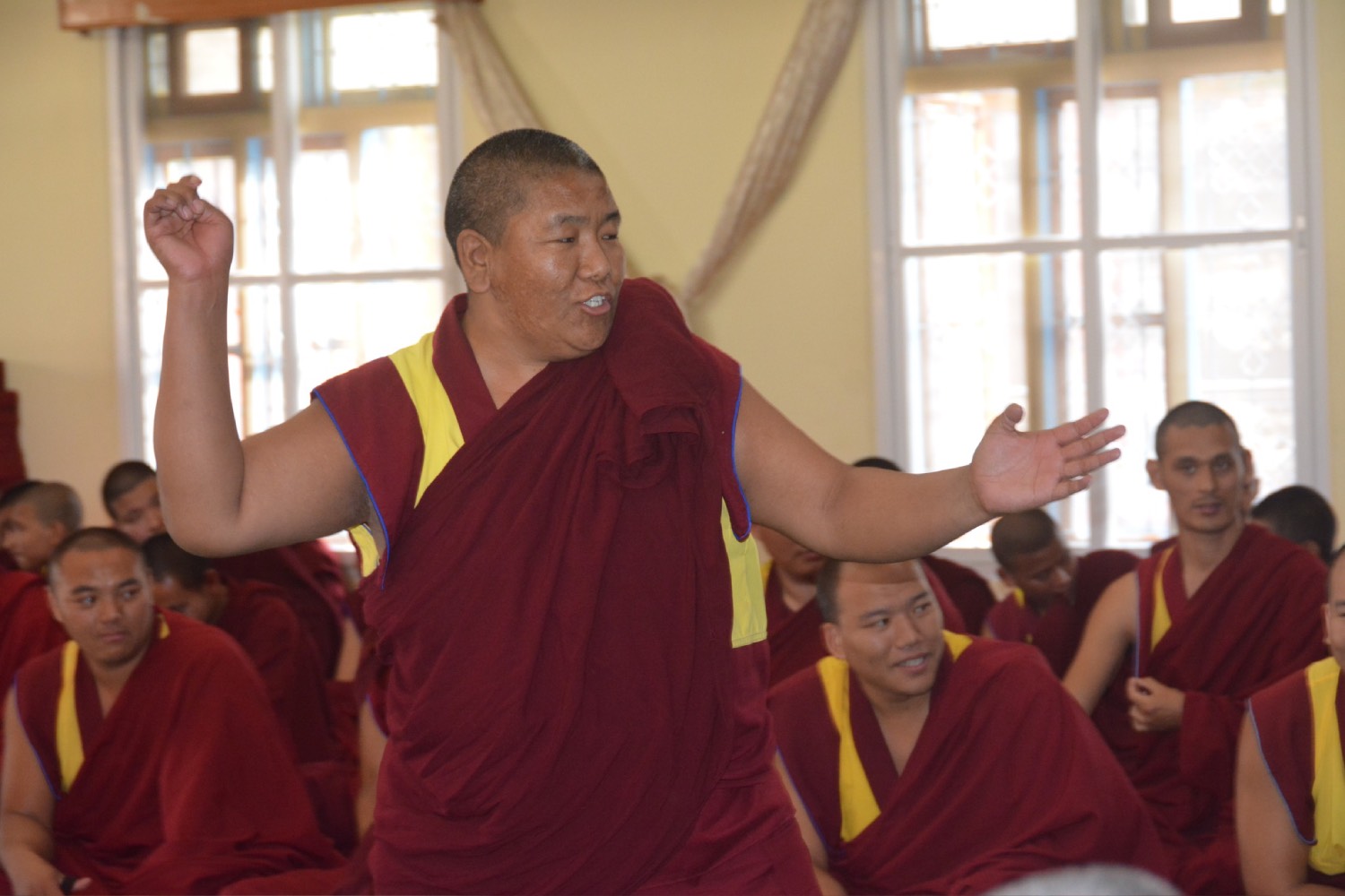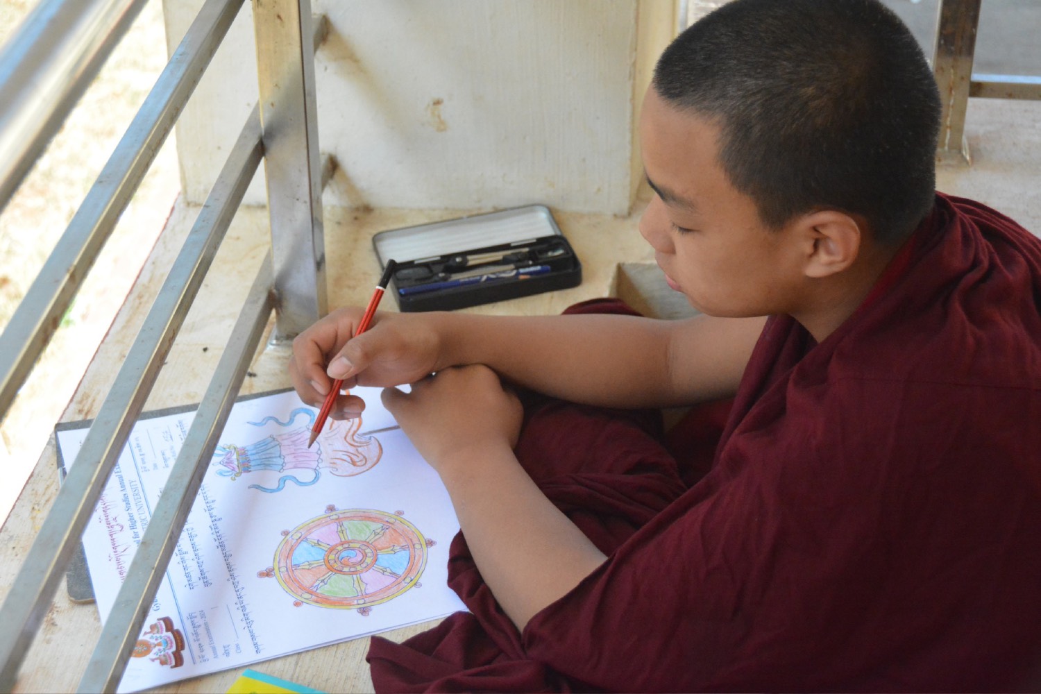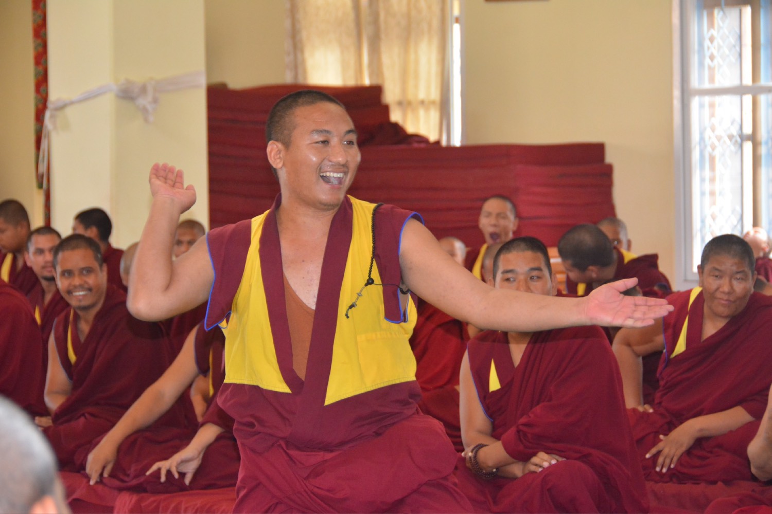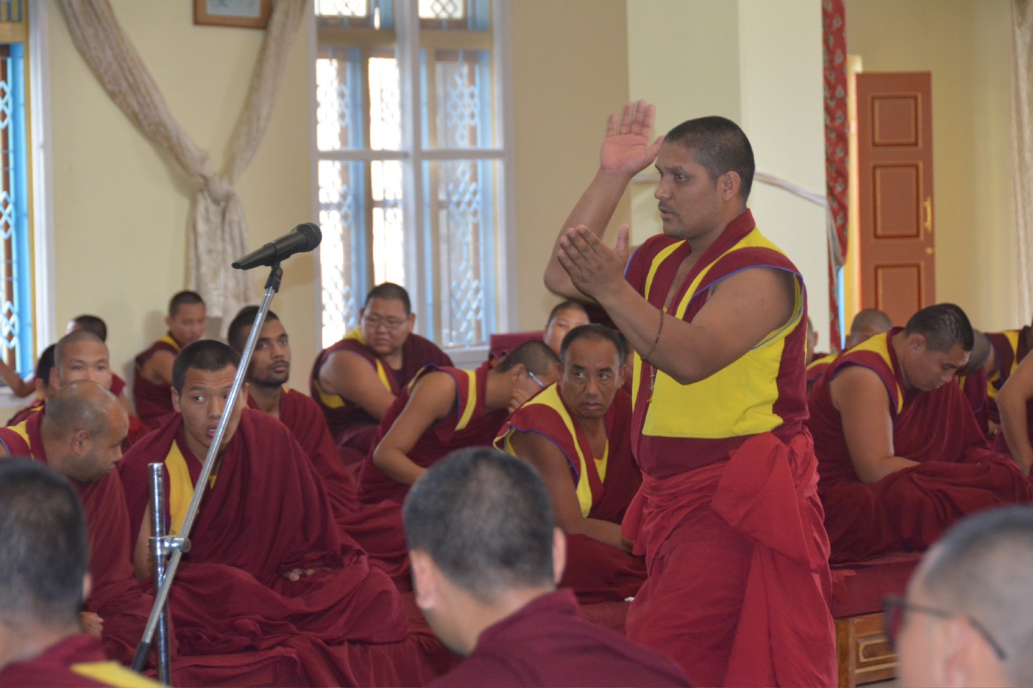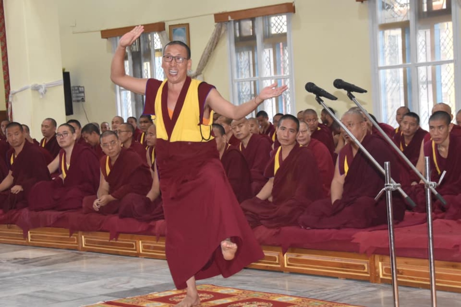 གདན་ས་ཁག་ནས་ལྷོ་ཕྱོགས་དཔལ་ལྡན་སྨད་རྒྱུད་གྲྭ་ཚང་དུ་ཆོས་ཐོག་འགྲིམ་བཞིན་པའི་