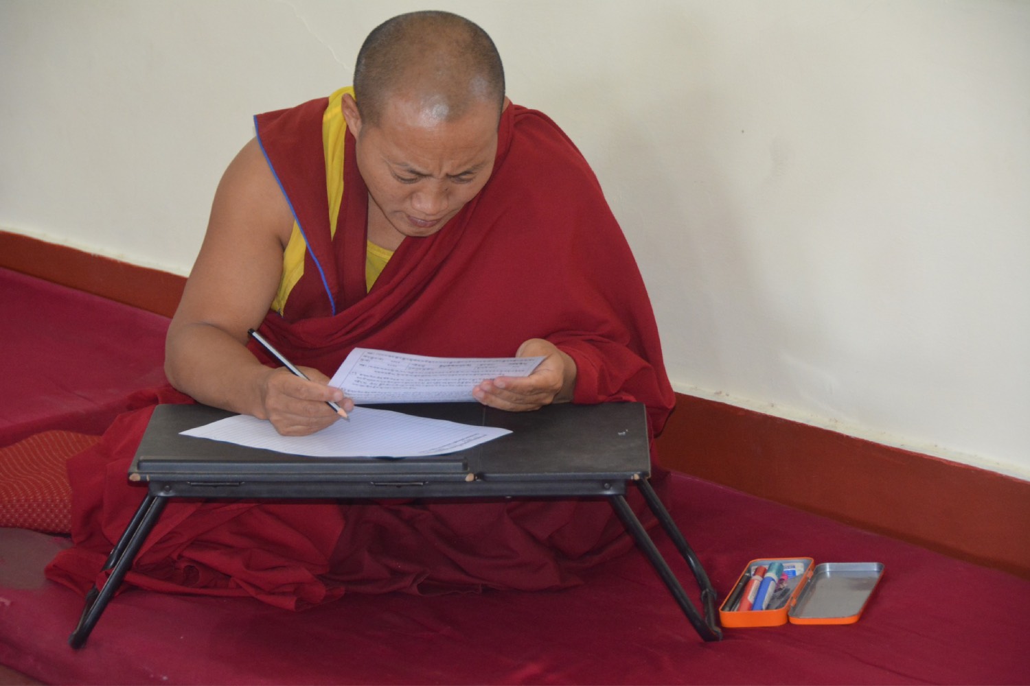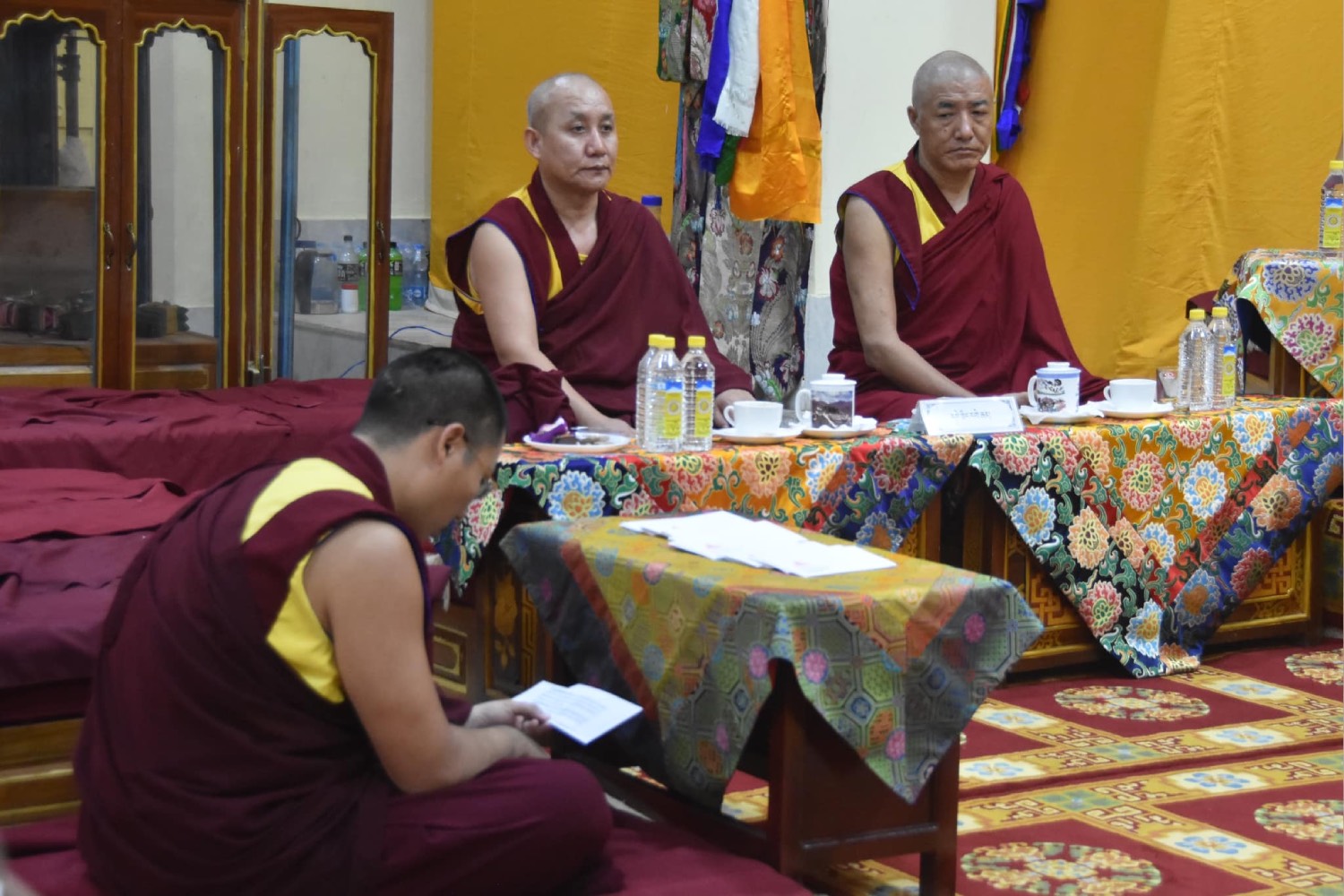 ལྷ་ཚོགས་དགེ་བཤེས་རྣམས་ནས། གསང་ཆེན་རྒྱུད་སྡེ་བཞི་ལ་ཐོས་བསམ་ཉམས་བཞེས་ཀྱི་ཐུགས་བརྩོན་ལྷོད་མེད་མཛད་དེ། རྒྱུད་སྡེ་བཞི་ཡི་གཞུང་ཆེན་ཁག་ནས་ལོ་འཁོར་རྒྱུགས་སྤྲོད་ལས་བྲིས་རྒྱུགས་གྲུབ་ནས། སྤྱི་ལོ་ ༢༠༢༤ ཟླ་ ༡༢ ཚེས་ ༠༢ ལ་རྒྱུད་སྨད་མཁན་རིན་པོ་ཆེ་དང་། གདན་ས་ཆེན་པོ་གསུམ་གྱི་གྲྭ་ཚང་དྲུག་གི་མཁན་པོ་དང་མཁན་ཚབ། དཔེ་ཁྲིད་དགེ་རྒན་རྣམ་པའི་དྲུང་དུ་རྩོད་རྒྱུགས་ཀྱི་རྒྱུགས་འབུལ་གནང་། རྒྱུད་སྨད་དཔེ་མཛོད་ཁང་དྲ་ངོས་རྩོམ་སྒྲིག་པས་ ༢༠༢༤།༡༢།༠༢།ལ།