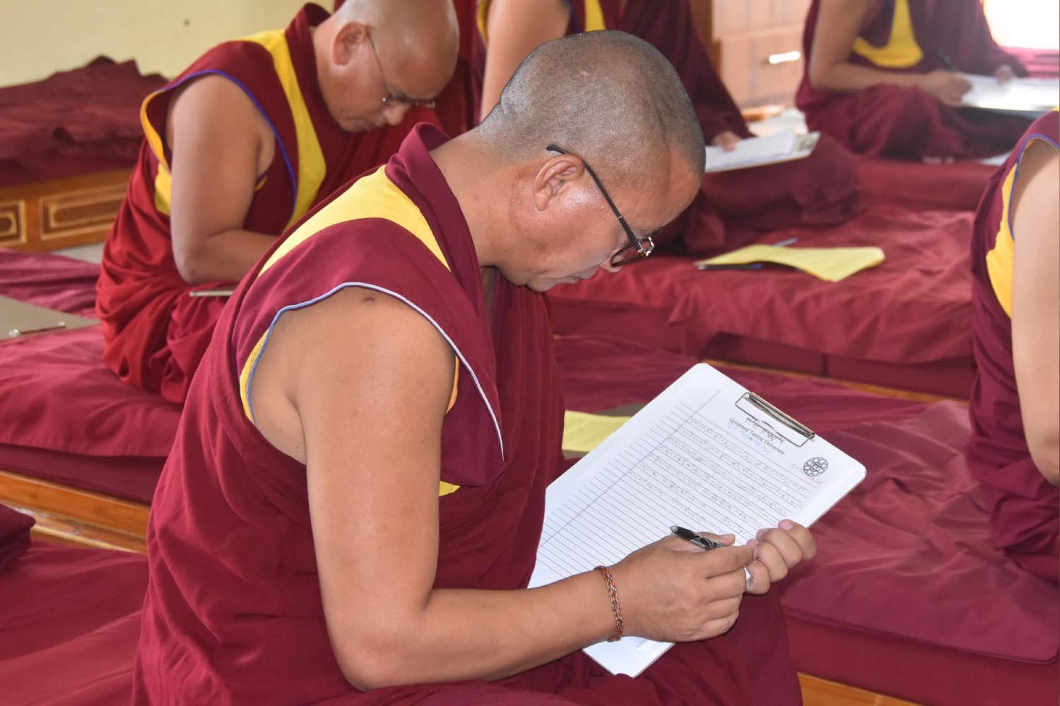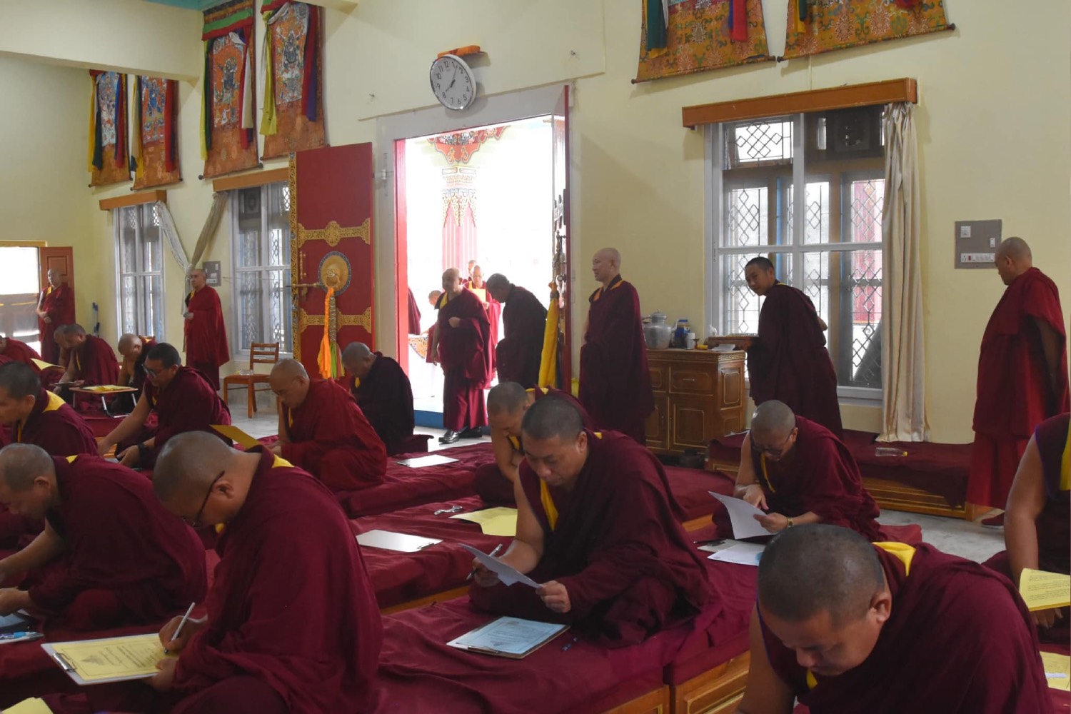 སྤྱི་ལོ་༢༠༢༤ལོའི་ཟླ་༡༢ཚེས་༡ཉིན་དཔལ་ལྡན་སྨད་རྒྱུད་གྲྭ་ཚང་དུ་གདན་ས་ཆེན་པོ་གསུམ་ནས་སྔགས་ཀྱི་སློབ་གཉེར་ལ་ཆེད་དུ་ཕེབས་པའི་ལྷ་ཚོགས་དགེ་བཤེས་རྣམས་ནས། གསང་ཆེན་རྒྱུད་སྡེ་བཞི་ལ་ཐོས་བསམ་ཉམས་བཞེས་ཀྱི་ཐུགས་བརྩོན་ལྷོད་མེད་མཛད་དེ། རྒྱུད་སྡེ་བཞི་ཡི་གཞུང་ཆེན་ཁག་ནས་ལོ་འཁོར་རྒྱུགས་སྤྲོད་ལས་བྲིས་རྒྱུགས་དབུ་ཚུགས། རྒྱུད་སྨད་དཔེ་མཛོད་ཁང་དྲ་ངོས་རྩོམ་སྒྲིག་པས་ ༢༠༢༤།༡༢།༠༡།ལ།