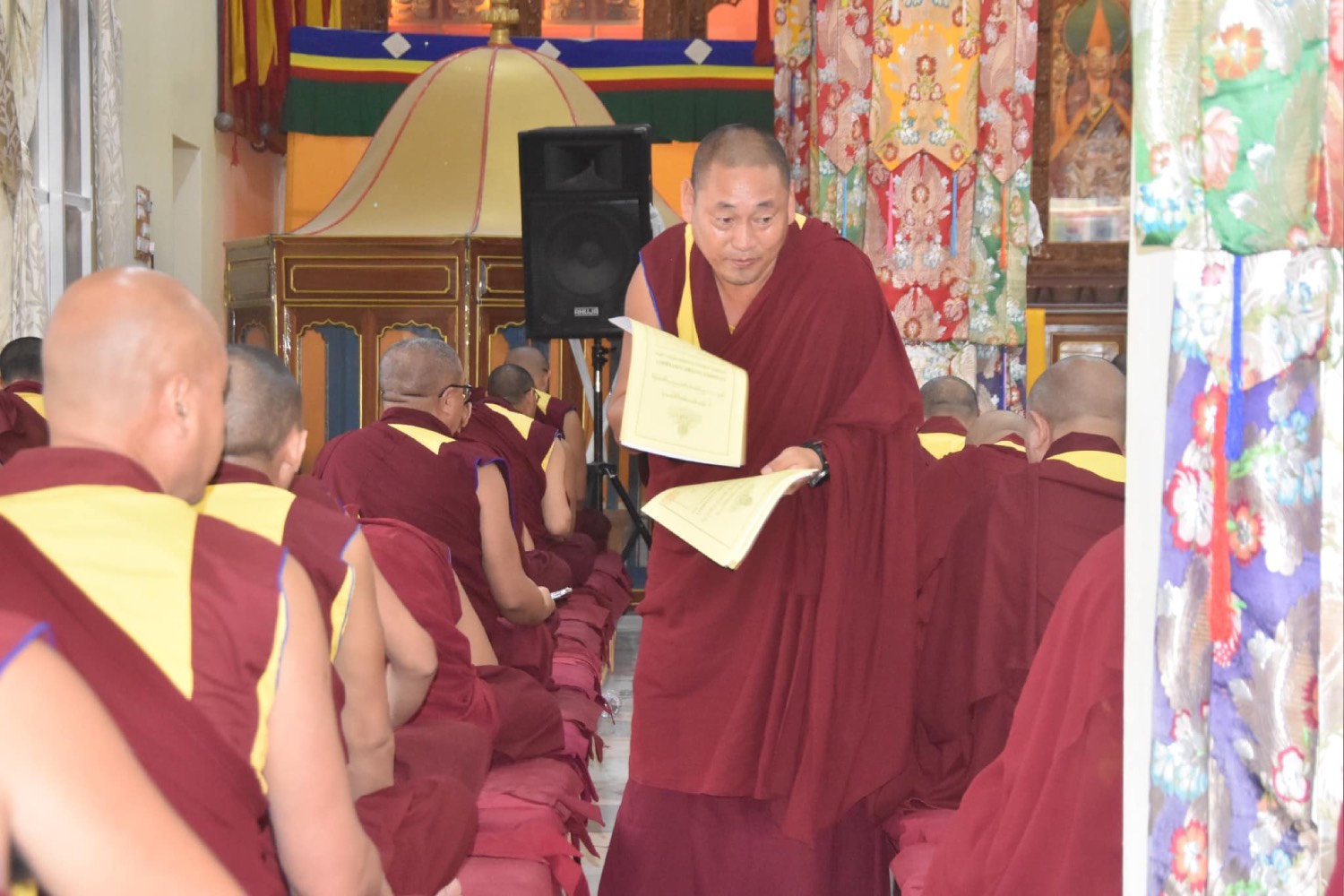 གསང་ཆེན་དཔལ་ལྡན་སྨད་རྒྱུད་པའི་བཞེས་རྒྱུན་ཕྱག་ལེན་ཆོས་ཕྱོགས་ཀྱི་རིམ་པ་སྣེ་མང་ལས་དབྱར་ཆོས་བྱེད་སྒོ་གནས་མཆོག་ཕྱི་མིག་ལུང་གི་ཆོས་ཐོག་སྐབས་ལས་སྣེ་འབྲེལ་ཡོད་རྣམ་པས་དམ་ཅན་སྐུ་མཁར་གྱི་མཆོད་འགྲན་དང་། བསྐང་འཕྲིན་བསྟོད་སྐུལ་མཛད་རྗེས་སྔར་སྲོལ་དབྱངས་ར་ཆེན་མོ་ཉིན་ལྔ་དབུ་འཛུགས་ཞུས། རྒྱུད་སྨད་དཔེ་མཛོད་ཁང་དྲ་ངོས་རྩོམ་སྒྲིག་པས་ ༢༠༢༤།༡༠།༠༩།ལ།