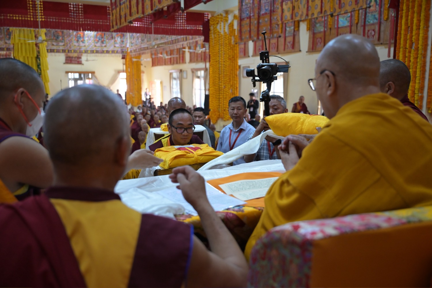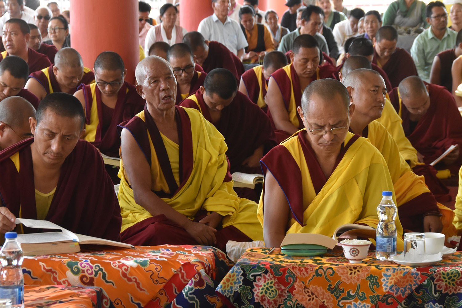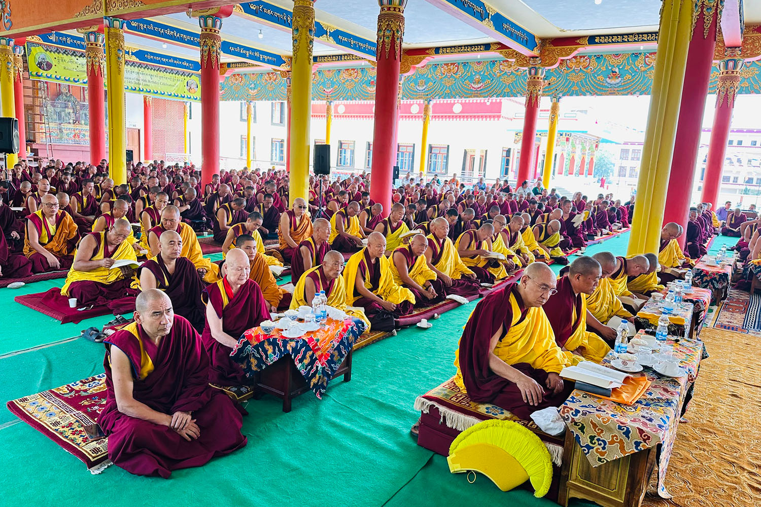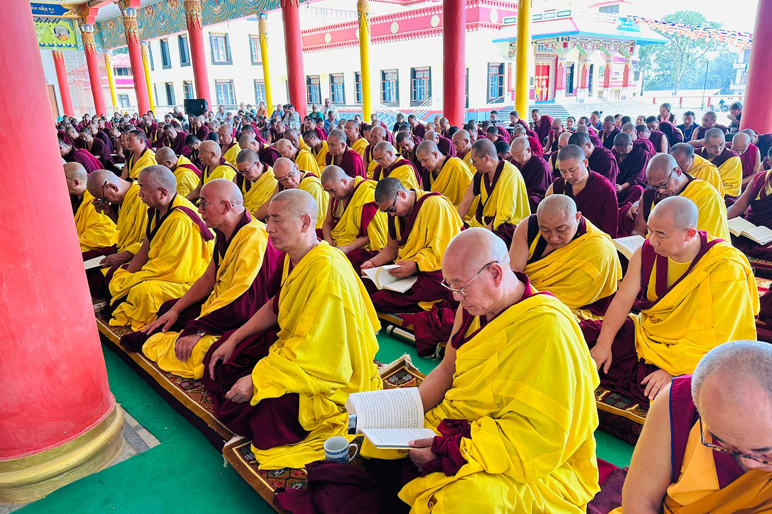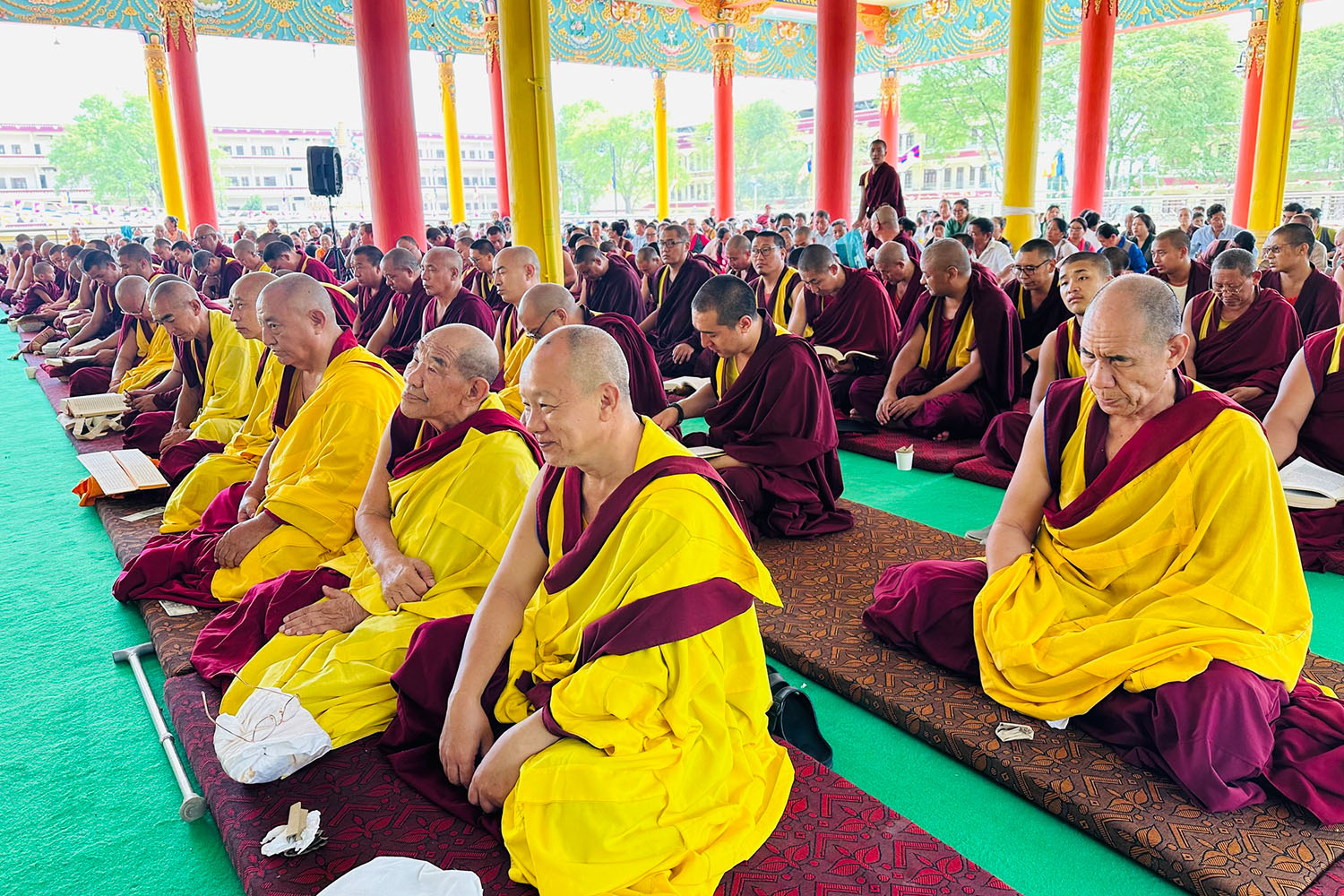 གསང་ཆེན་དཔལ་ལྡན་སྨད་རྒྱུད་པའི་ཞོགས་དང་པོའི་ཆོས་ཐོག་གདིང་རྒྱག་གི་དུས་ཚེས་སུ་གསར་ཞུགས་འདི་ལོའི་ཆོས་ཐོག་འགྲིམ་པའི་བཀའ་རམས་དགེ་བཤེས་དང་བསྐྱེད་རིམ་པ་བཅས་པས་ཐོག་མའི་བཞུགས་གདིང་ཚོགས་སུ་སྐྱོན་པ་དང། སྐྱབས་རྗེ་མཁན་རིན་པོ་ཆེ་མཆོག་གི་ཞལ་སྔ་ནས་ལྷ་ཚོགས་དགེ་བཤེས་རྣམས་དང་དགེ་སློང་གསར་པ་དང་བཅས་པར་འགྲེལ་པ་བཞི་སྦྲགས་ཀྱི་འཆད་ཉན་དབུ་ཚུགས་གནང་སྐབས། ༢༠༢༣།༠༣།༢༥-