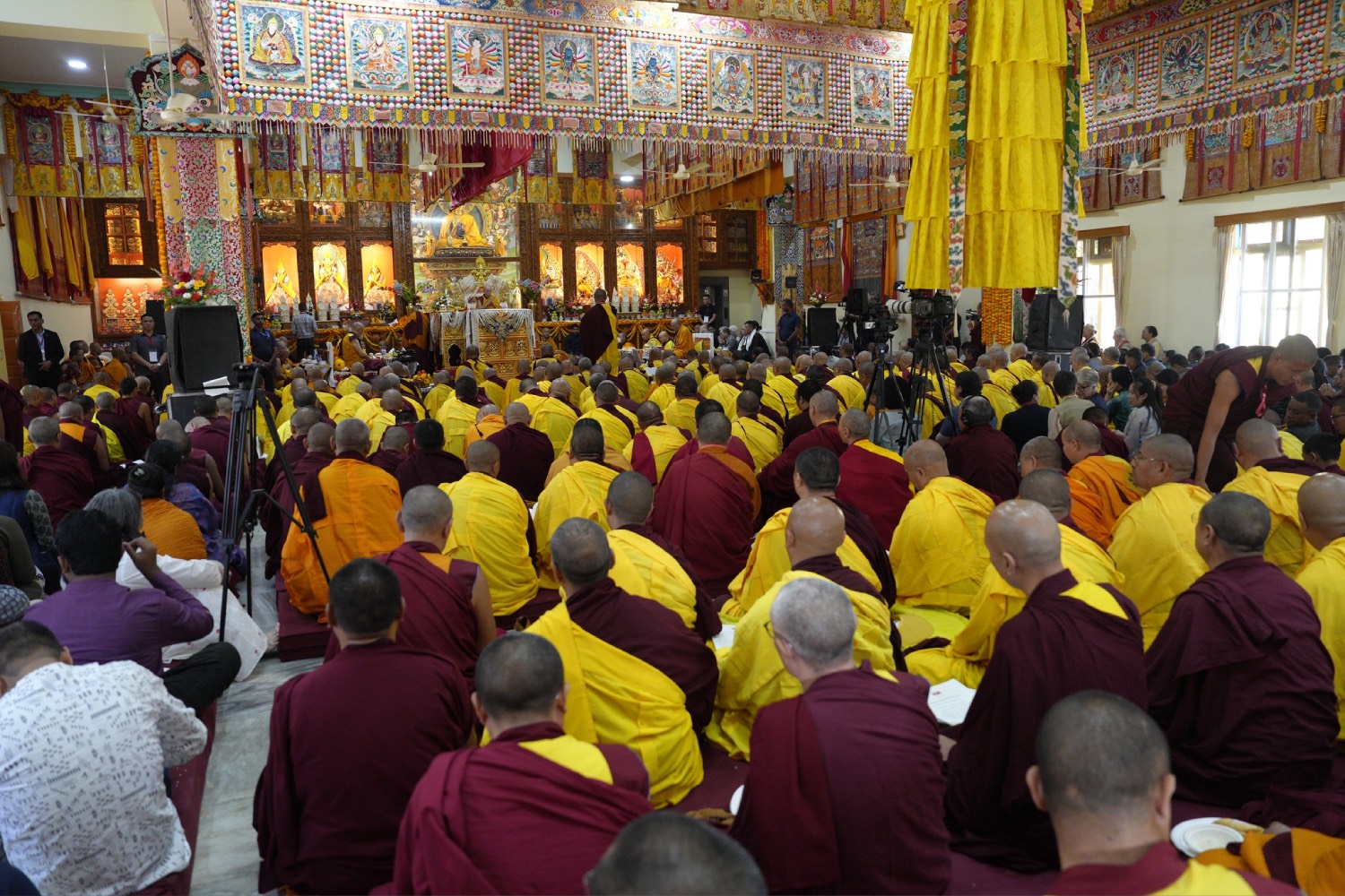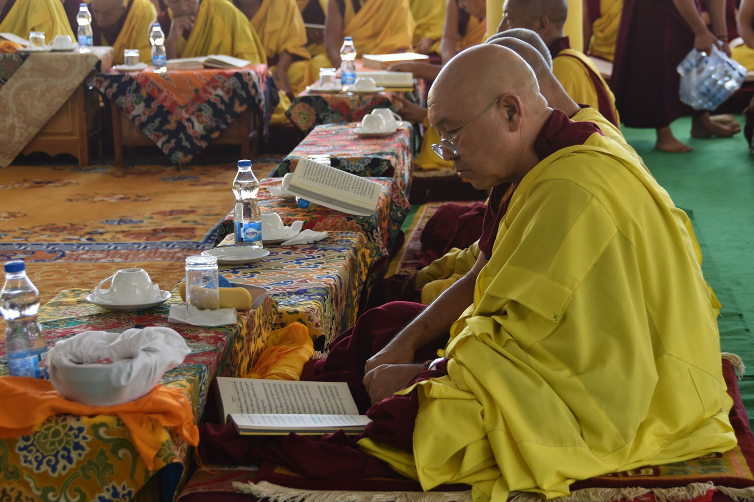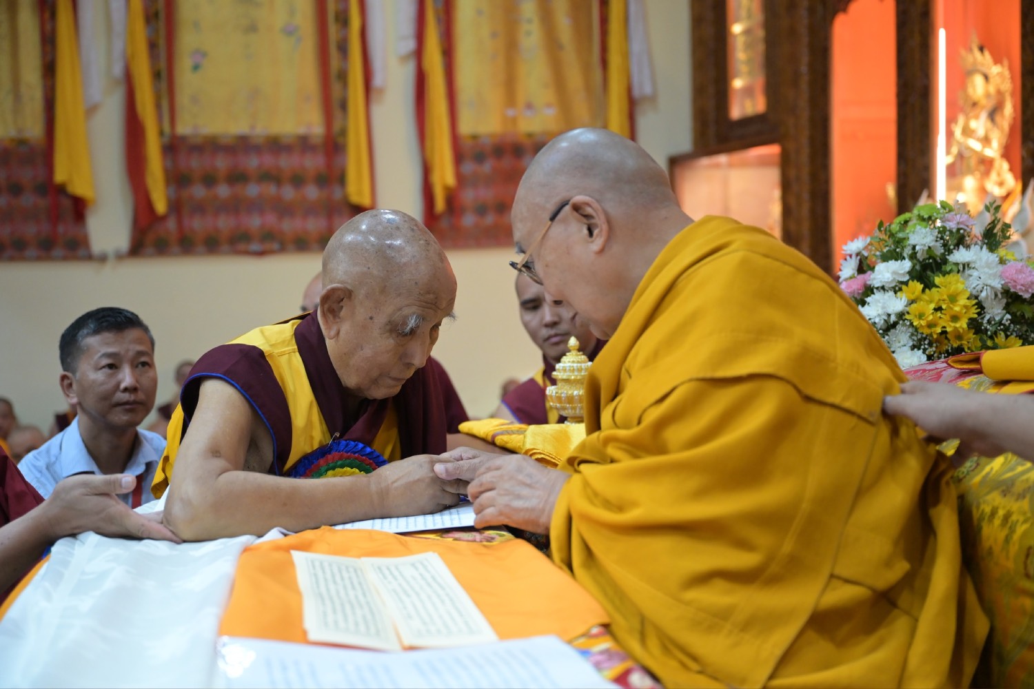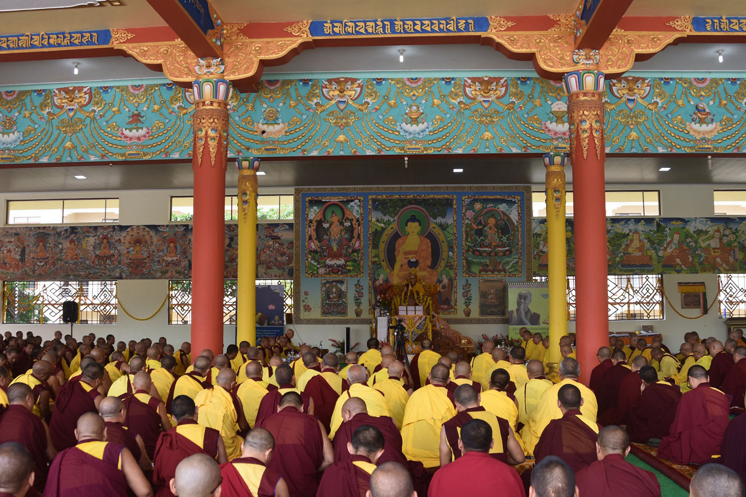 གསང་ཆེན་དཔལ་ལྡན་སྨད་རྒྱུད་པའི་ཞོགས་དང་པོའི་ཆོས་ཐོག་གདིང་རྒྱག་གི་དུས་ཚེས་སུ་གསར་ཞུགས་འདི་ལོའི་ཆོས་ཐོག་འགྲིམ་པའི་བཀའ་རམས་དགེ་བཤེས་དང་བསྐྱེད་རིམ་པ་བཅས་པས་ཐོག་མའི་བཞུགས་གདིང་ཚོགས་སུ་སྐྱོན་པ་དང། སྐྱབས་རྗེ་མཁན་རིན་པོ་ཆེ་མཆོག་གི་ཞལ་སྔ་ནས་ལྷ་ཚོགས་དགེ་བཤེས་རྣམས་དང་དགེ་སློང་གསར་པ་དང་བཅས་པར་འགྲེལ་པ་བཞི་སྦྲགས་ཀྱི་འཆད་ཉན་དབུ་ཚུགས་གནང་སྐབས། ༢༠༢༣།༠༣།༢༥-
