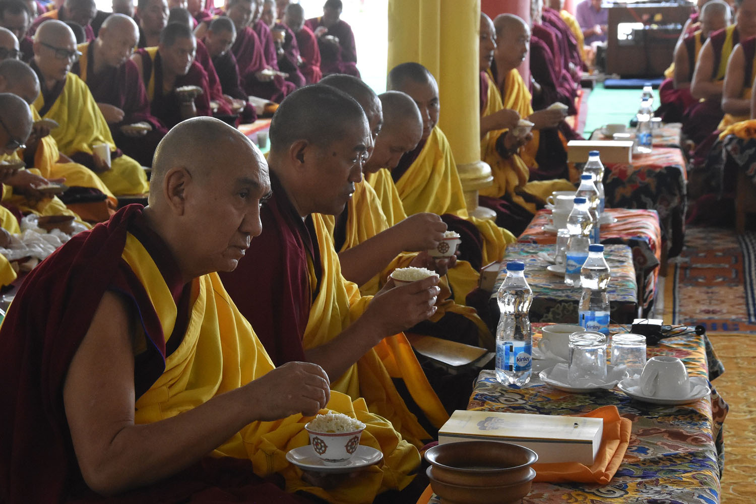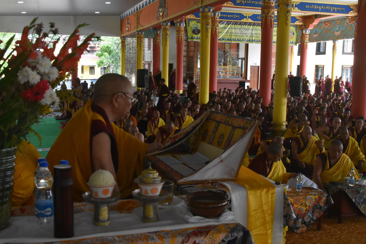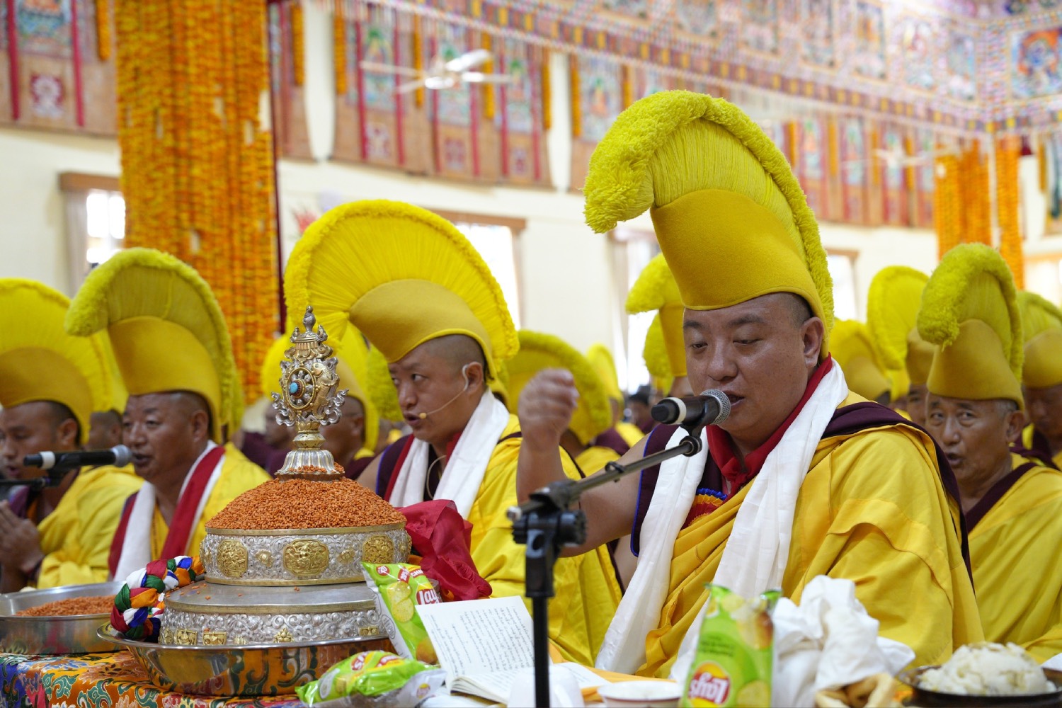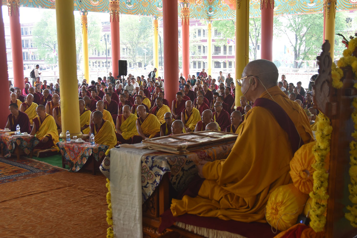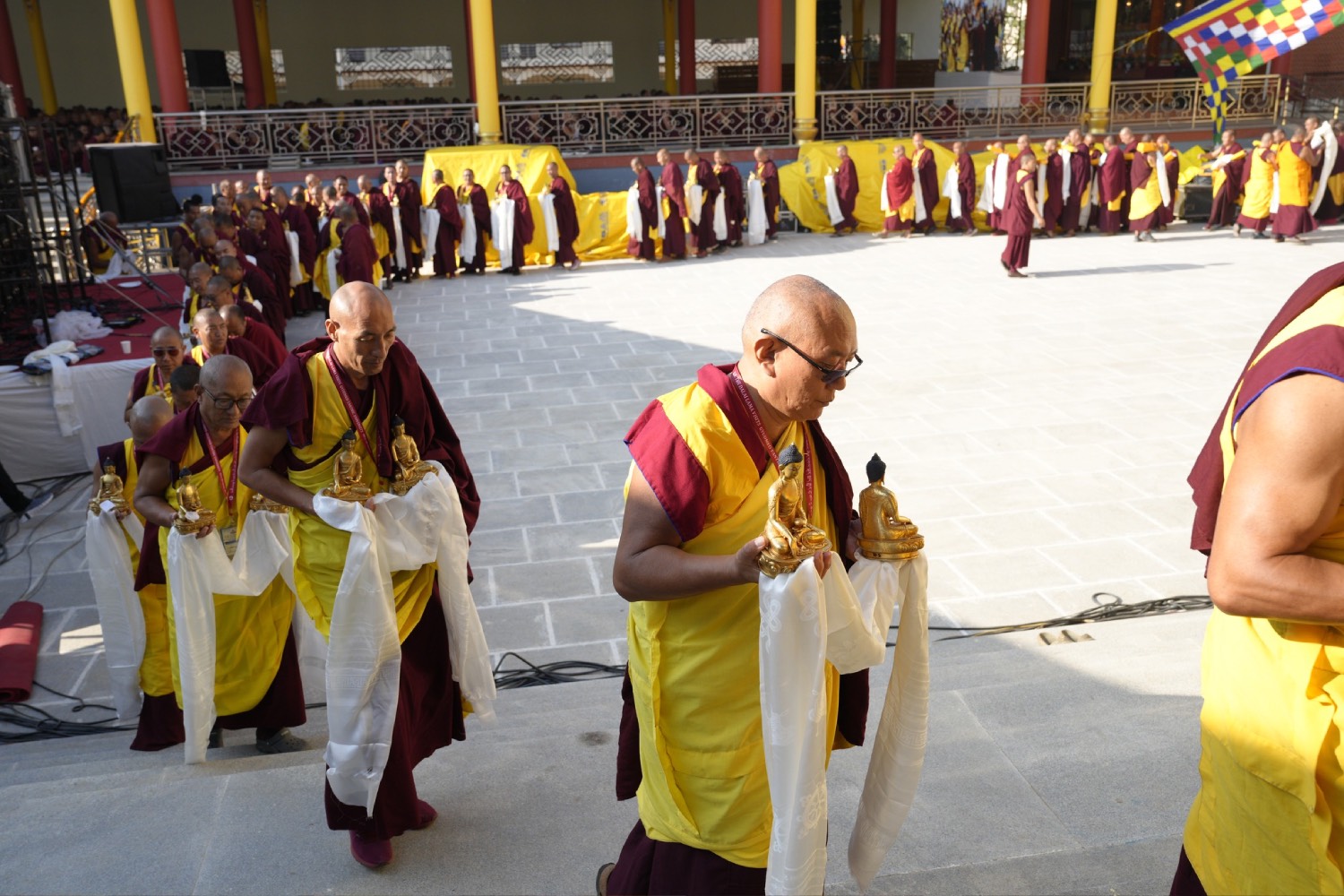 གསང་ཆེན་དཔལ་ལྡན་སྨད་རྒྱུད་པའི་ཞོགས་དང་པོའི་ཆོས་ཐོག་གདིང་རྒྱག་གི་དུས་ཚེས་སུ་གསར་ཞུགས་འདི་ལོའི་ཆོས་ཐོག་འགྲིམ་པའི་བཀའ་རམས་དགེ་བཤེས་དང་བསྐྱེད་རིམ་པ་བཅས་པས་ཐོག་མའི་བཞུགས་གདིང་ཚོགས་སུ་སྐྱོན་པ་དང། སྐྱབས་རྗེ་མཁན་རིན་པོ་ཆེ་མཆོག་གི་ཞལ་སྔ་ནས་ལྷ་ཚོགས་དགེ་བཤེས་རྣམས་དང་དགེ་སློང་གསར་པ་དང་བཅས་པར་འགྲེལ་པ་བཞི་སྦྲགས་ཀྱི་འཆད་ཉན་དབུ་ཚུགས་གནང་སྐབས། ༢༠༢༣།༠༣།༢༥-