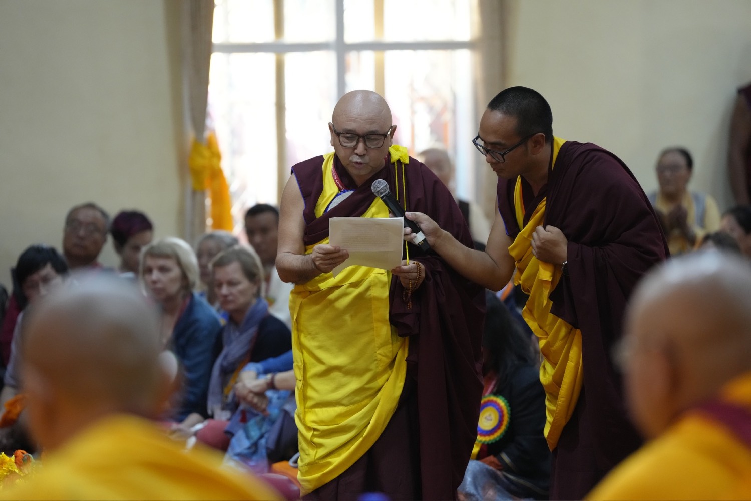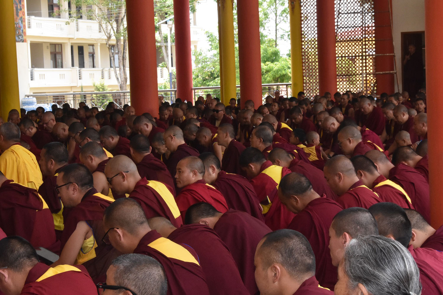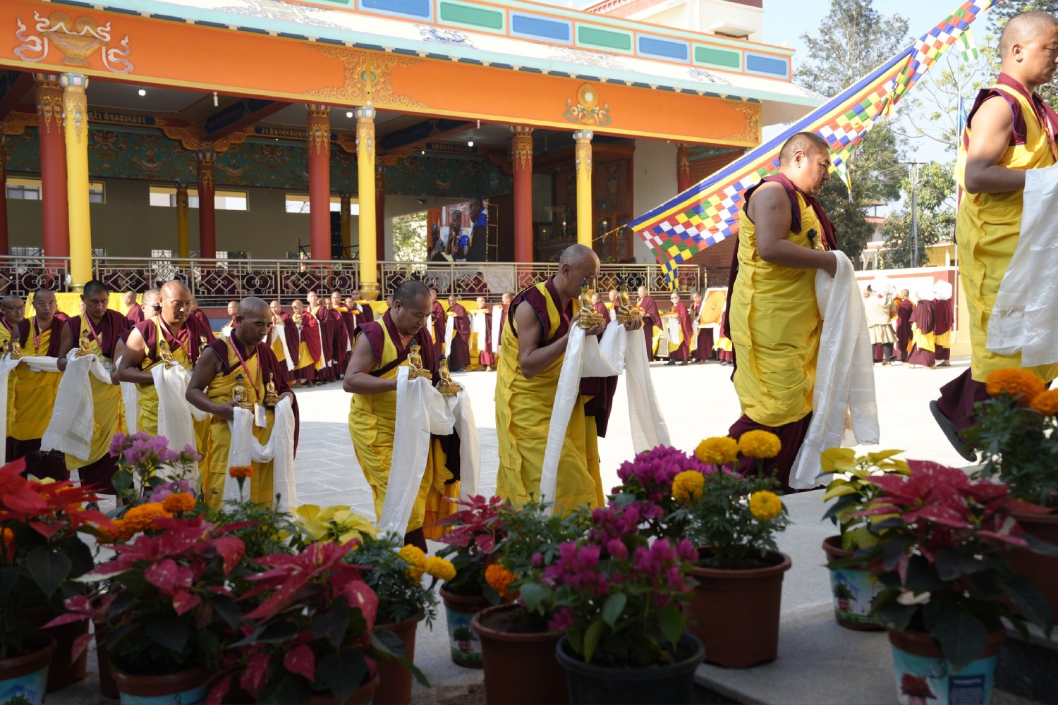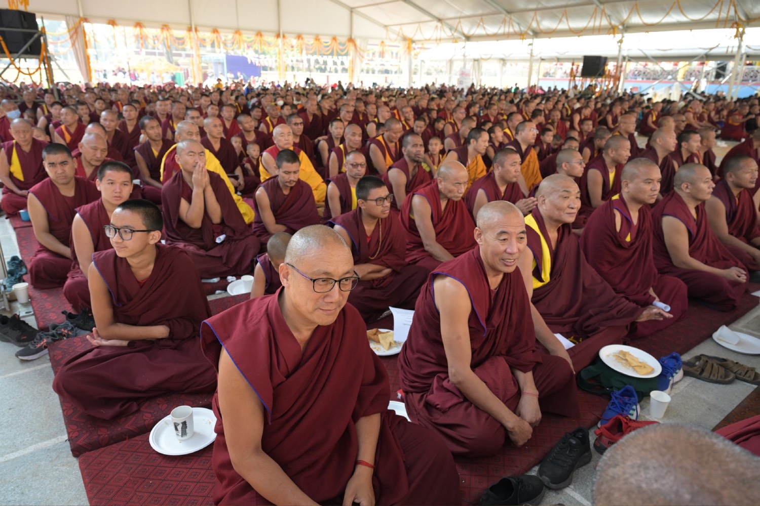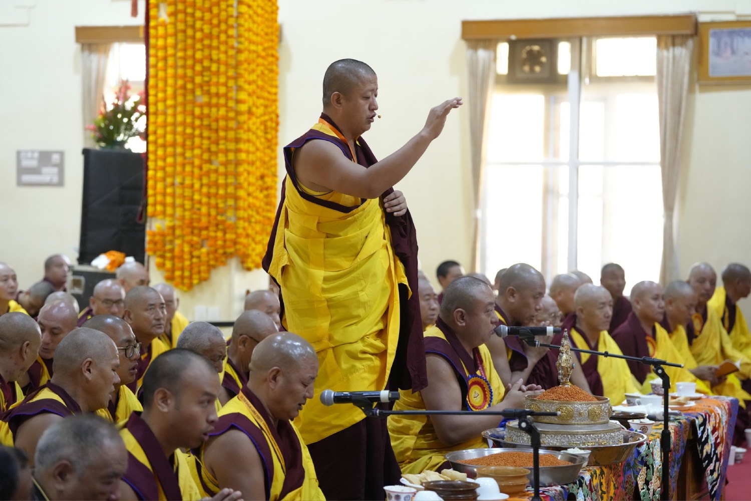 གསང་ཆེན་དཔལ་ལྡན་སྨད་རྒྱུད་པའི་ཞོགས་དང་པོའི་ཆོས་ཐོག་གདིང་རྒྱག་གི་དུས་ཚེས་སུ་གསར་ཞུགས་འདི་ལོའི་ཆོས་ཐོག་འགྲིམ་པའི་བཀའ་རམས་དགེ་བཤེས་དང་བསྐྱེད་རིམ་པ་བཅས་པས་ཐོག་མའི་བཞུགས་གདིང་ཚོགས་སུ་སྐྱོན་པ་དང། སྐྱབས་རྗེ་མཁན་རིན་པོ་ཆེ་མཆོག་གི་ཞལ་སྔ་ནས་ལྷ་ཚོགས་དགེ་བཤེས་རྣམས་དང་དགེ་སློང་གསར་པ་དང་བཅས་པར་འགྲེལ་པ་བཞི་སྦྲགས་ཀྱི་འཆད་ཉན་དབུ་ཚུགས་གནང་སྐབས། ༢༠༢༣།༠༣།༢༥-