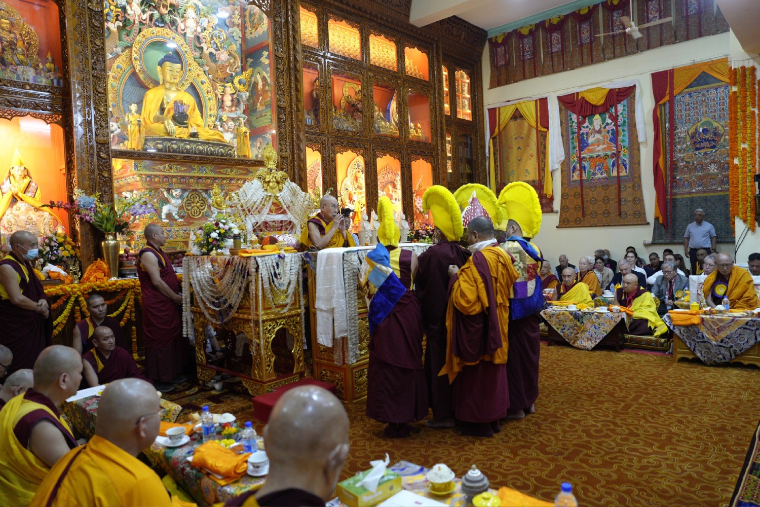 ༧སྐྱབས་མགོན་༧གོང་མ་ཁྲི་ཆེན་རྡོ་རྗེ་འཆང་ཆེན་པོ་མཆོག་ལ་ཨ་རིའི་རྒྱུད་སྨད་སྒྲོལ་མ་ལྷ་ཁང་ནས་ཇི་ལྟར་གསོལ་བ་བཏབ་པ་བཞིན་ ༢༠༢༣ སྤྱི་ཟླ་ ༦ ཚེས་ ༡༣ ཉིན་ནིའུ་ཡོག་ནང་གི་རང་ཅག་ཧི་མ་ལ་ཡ་ཕར་ཚུར་གྱི་མི་རིགས་གཙོ་བྱས་པའི་ཆོས་ཞུ་བ་ཡོངས་ལ་ཚེ་དབང་དང་བཀའ་སློབ་བཀའ་དྲིན་བསྐྱངས་གནང་སྐབས།