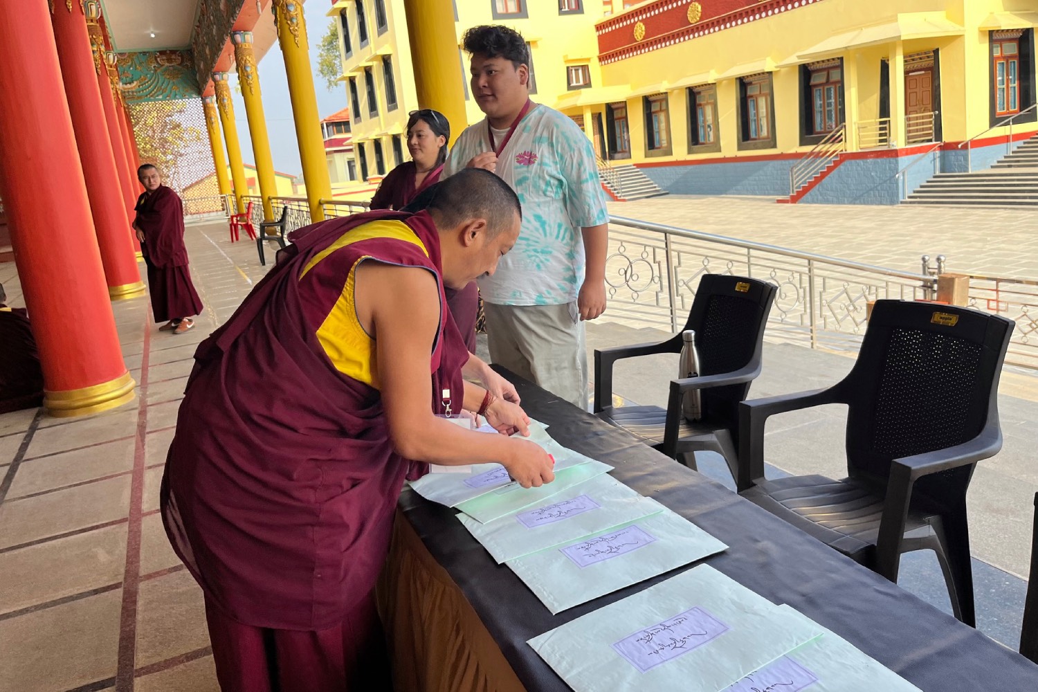 ༢༠༢༤ ཟླ་ ༦ ཚེས་ ༢༨ ཉིན་གྱི་ཕྱི་དྲོ་ཆུ་ཚོད་ ༢:༣༠ ལ་སྐྱབས་རྗེ་མཁན་ཆེན་རྡོ་རྗེ་འཆང་མཆོག་དང་། སྐུ་ཞབས་བླ་མ་རྣམ་གཉིས་དབུ་བཞུགས་ཐོག་འདུས་མང་ཡོངས་ནས། ༧གོང་ས་༧རྒྱལ་དབང་ཐམས་ཅད་མཁྱེན་པ་ཆེན་པོ་མཆོག་གི་སྐུ་ཕྱྭའི་ཞབས་རིམ་སླད། སྨན་བླའི་ཆོ་ག་དང་འབྲེལ་སྨན་བླའི་གཟུངས་སྔགས་དང་། ༧རྒྱལ་བའི་མཚན་སྔགས་སོགས་གྲངས་གསོག །༧རྒྱལ་བའི་ཞབས་བརྟན་གསོལ་འདེབས་གསུངས་ཏེ་རྒྱལ་བའི་ཞབས་རིམ་གནད་སྨིན་ཞུས།