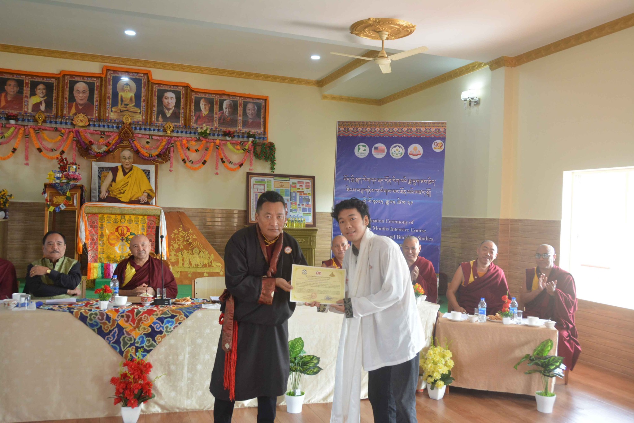 དེ་ནས་དཔལ་ལྡན་སྨད་རྒྱུད་གྲྭ་ཚང་གི་སློབ་སྤྱི་དགེ་བཤེས་སྔགས་རམས་པ་རྒན་བསོད་ནམས་དངོས་གྲུབ་ལགས་ནས་ལས་འཆར་དང་འབྲེལ་བའི་གསུང་བཤད་གནང་རྗེས། ཧོན་སུར་ས་གནས་འགོ་འཛིན་དང་ཆོས་རིག་དྲུང་ཆེ་རྣམ་གཉིས་ནས་ཟབ་ཁྲིད་དང་འབྲེལ་བའི་གསུང་བཤད་གནང་། དེ་ནས་བོད་མི་མང་སྤྱི་འཐུས་མི་འགྱུར་རྡོ་རྗེ་ལགས་ནས་དེང་རབས་ན་གཞོན་ཚོའི་ཤེས་ཡོན་དང་ལྷག་བསམ་གལ་གནད་དང་འབྲེལ་བའི་གསུང་བཤད་གནང་རྗེས། སྐུ་མགྲོན་གཙོ་བོ་མཆོག་ནས་ཚེ་འདི་ཕྱི་གཉིས་ལ་ཕན་པའི་ལམ་སྟོན་གསུང་བཤད་གནང་།