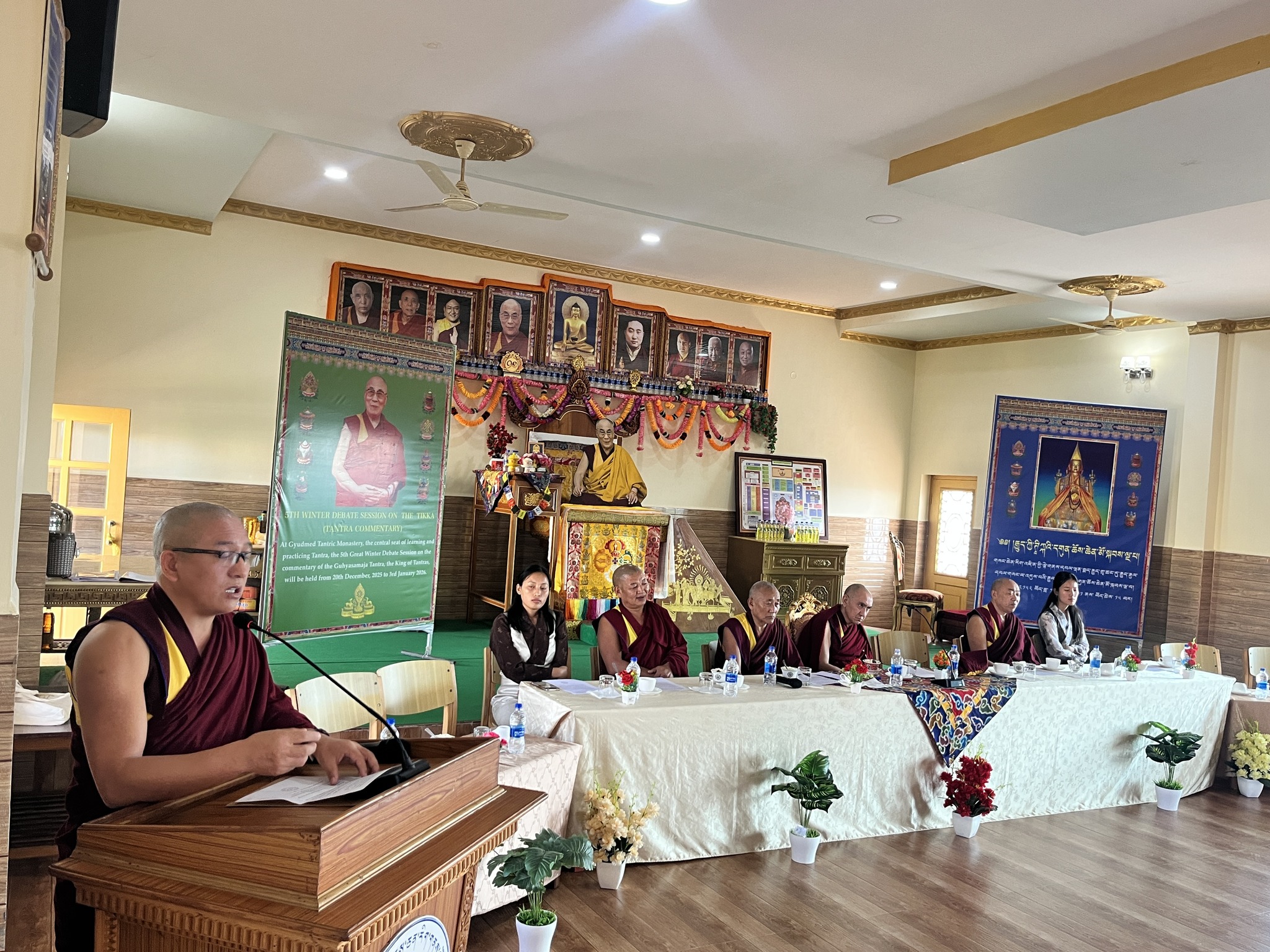 དེ་ནས་དགེ་ཆེ་སྔགས་རམས་པ་དགེ་ཡོན་ཏན་ནོར་བུ་ལགས་ནས་ཟབ་སྦྱོང་ངོ་སྤྲོད་དང་འབྲེལ་བའི་ཐོག་ལ་གསུང་བཤད་གནང་རྗེས། གྲྭ་ཚང་གི་སློབ་སྤྱི་དགེ་བཤེས་སྔགས་རམས་པ་དགེ་བསོད་ནམས་དངོས་གྲུབ་ལགས་ནས་ལས་འཆར་དང་འབྲེལ་བའི་སྐོར་གསུང་བཤད་གནང་། སྐུ་མགྲོན་གཙོ་བོ་ནས་ཚེ་འདི་ཕྱི་གཉིས་ལ་ཕན་པའི་ལམ་སྟོན་གསུང་བཤད་གནང་བ་དང་། དྲུང་ཡིག་དགེ་དབུ་རྒྱན་ལགས་ནས་ཐུགས་རྗེ་ཆེ་ཞུའི་གསུང་བཤད་གནང་། མཐར་དགེ་ལས་སློབ་ཕྲུག་ཡོངས་སྐུ་མགྲོན་དང་ལྷན་པར་བསྒྲོན་ཏེ་མཛད་སྒོ་ལེགས་པར་གྲོལ།