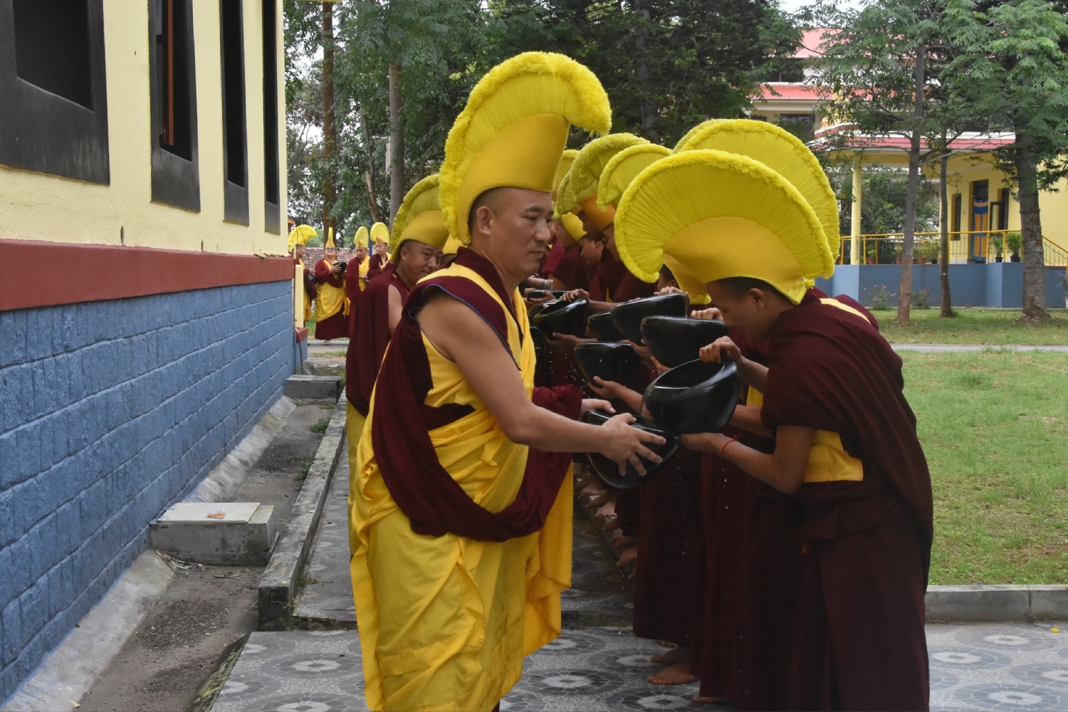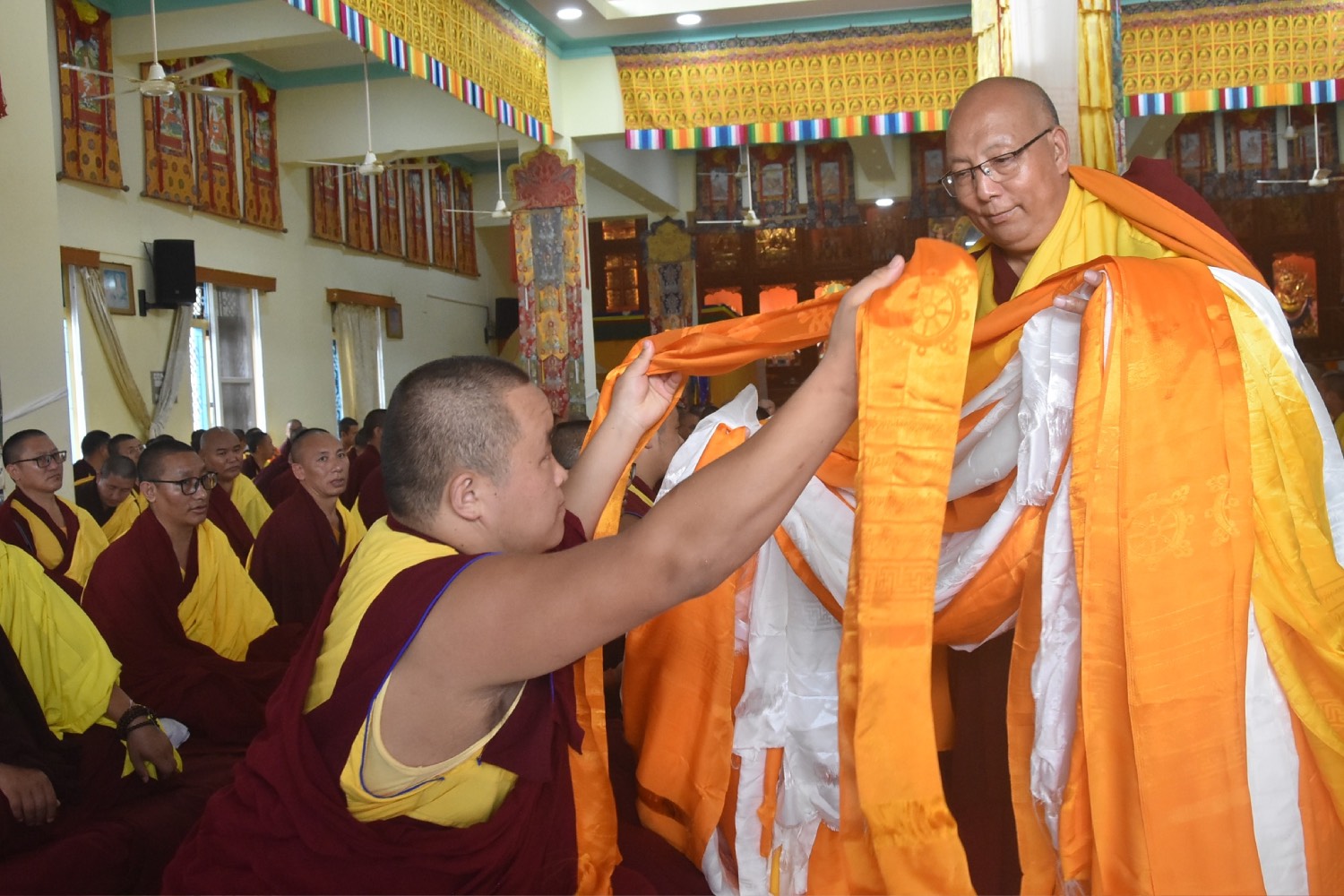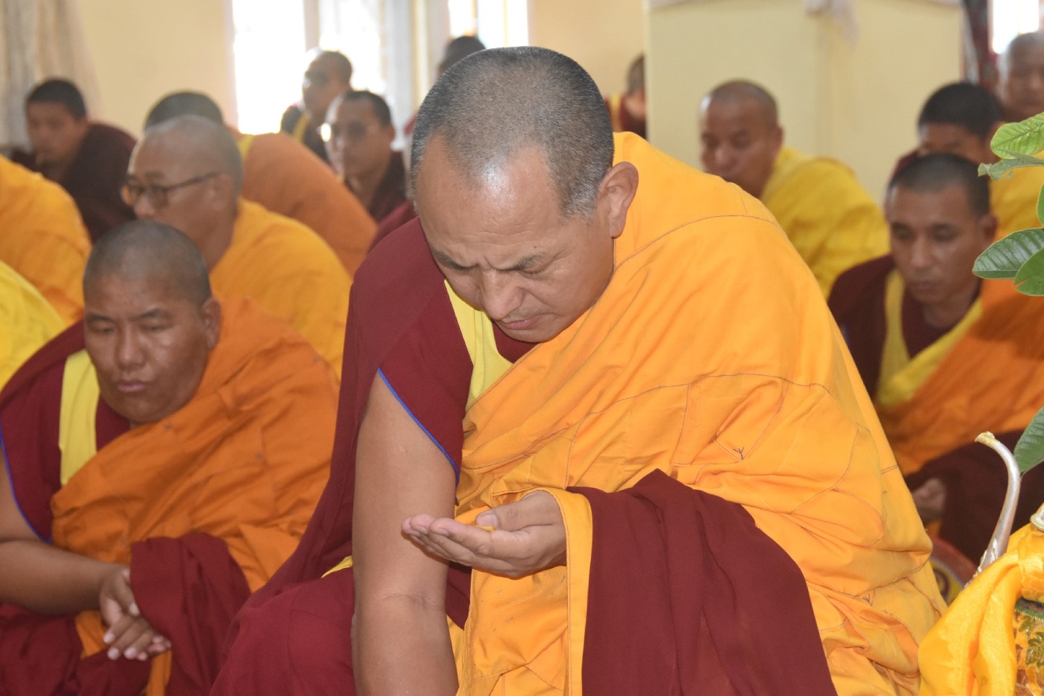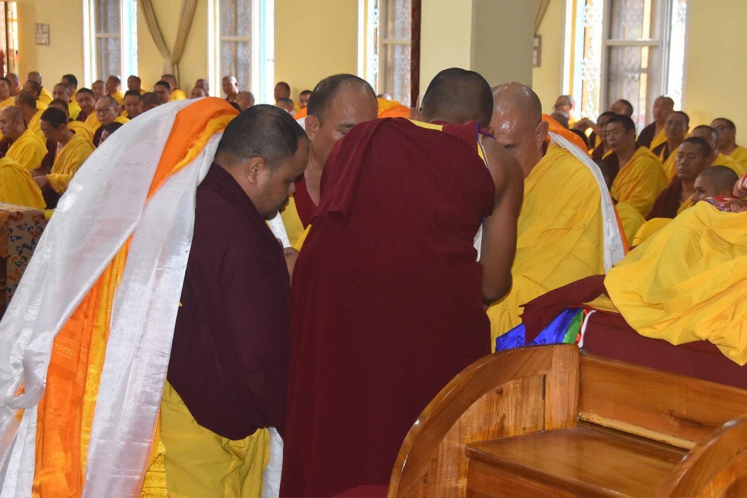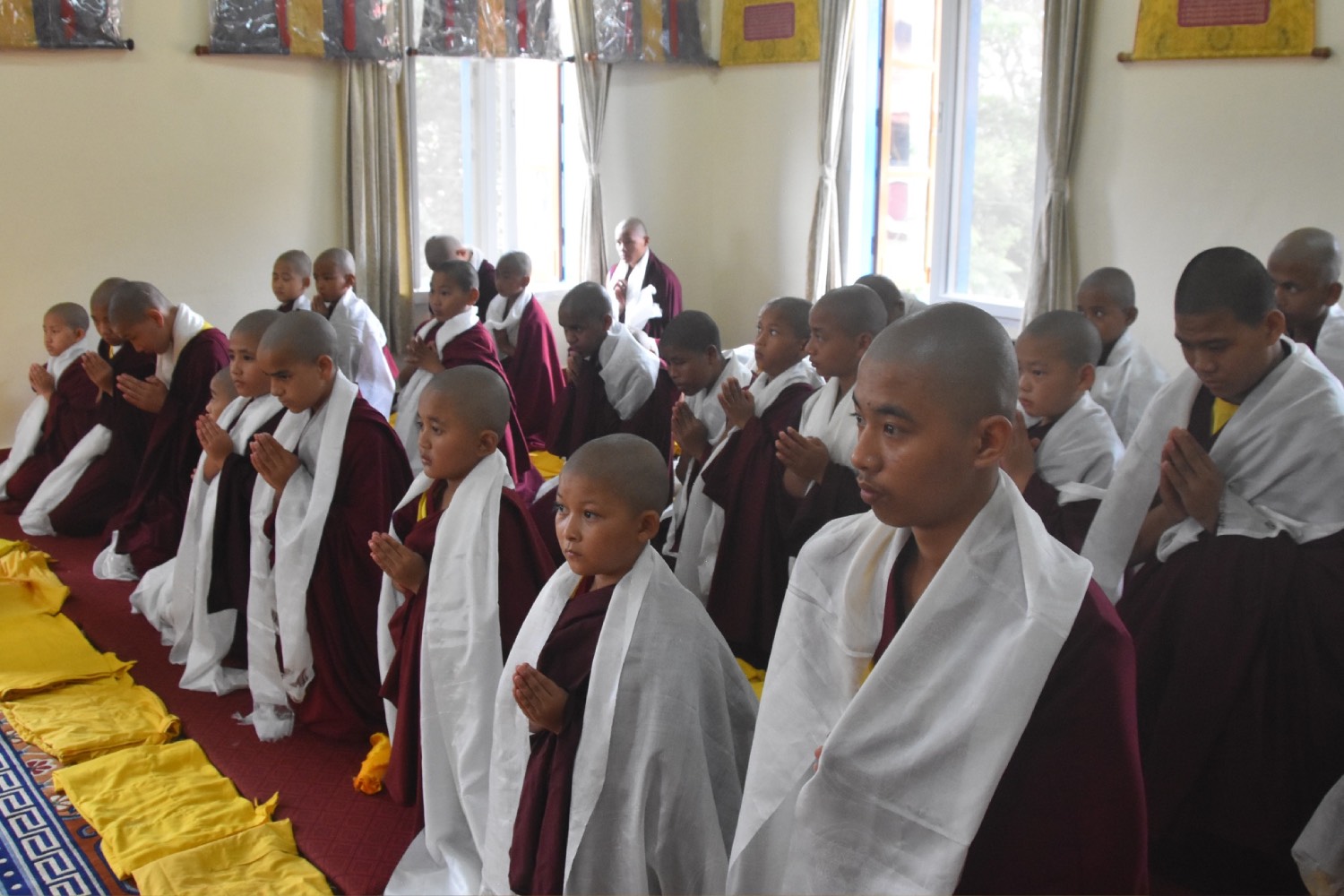 ༄༅།། དེ་རིང་སྤྱི་ཟླ་ ༩ པའི་ཚེས་བཅུ་ལྷག་དཀར་གཟའ་ཚེས་དགེ་བའི་ཉིན་མང་ཐོས་འདུལ་བ་འཛིན་པ་གྲྭ་ཚང་འདི་ཉིད་ཀྱི་མཁན་རིན་པོ་ཆེ་རྗེ་བཙུན་ངག་དབང་སངས་རྒྱས་མཆོག་ནས་གྲྭ་ཚང་གི་གསར་ཞུགས་གྲྭ་རྒྱུན་གྲངས་སུམ་ཅུ་ཙམ་ལ་དགེ་ཚུལ་གྱི་བསླབ་སྡོམ་སྩལ་གནང་ཞིང་། འདུས་མང་ཚོགས་ཡོངས་ནས་སྔོན་བྱོན་སྟོན་པའི་རྣམ་ཐར་རྗེས་འཛིན་དུ་དགྲ་བཅོམ་གསོལ་སྙོམ་ལ་ཕེབས་པའི་ཚུལ་གྱིས་ལྷུང་བཟེད་མཆོད་པའི་ཉམས་བཞེས་ལྷུར་ལེན་མཛད་དོ། །རྒྱུད་སྨད་དཔེ་མཛོད་ཁང་དྲ་ངོས་རྩོམ་སྒྲིག་པས་༢༠༢༥།༠༩།༡༠ ལ།