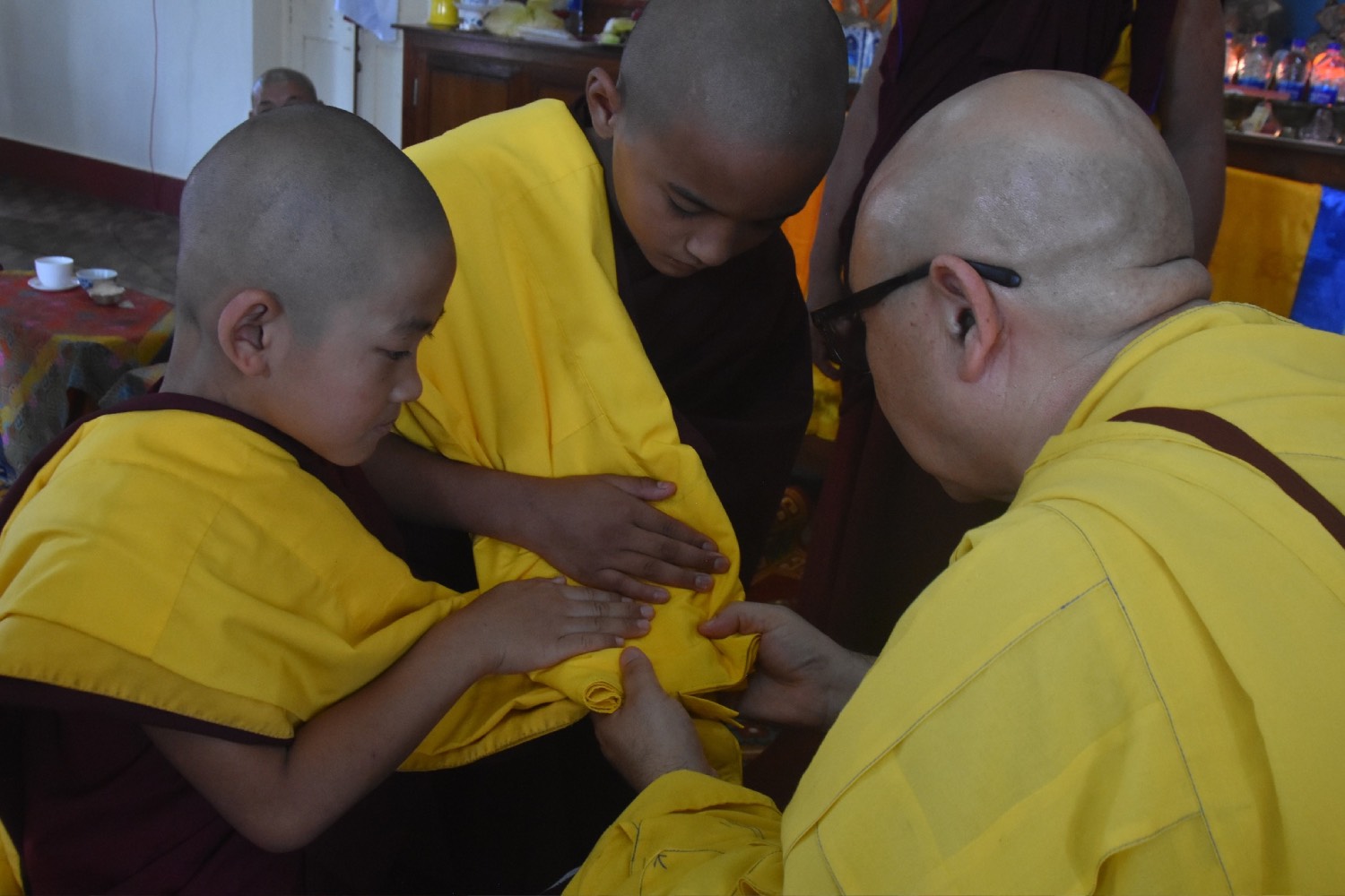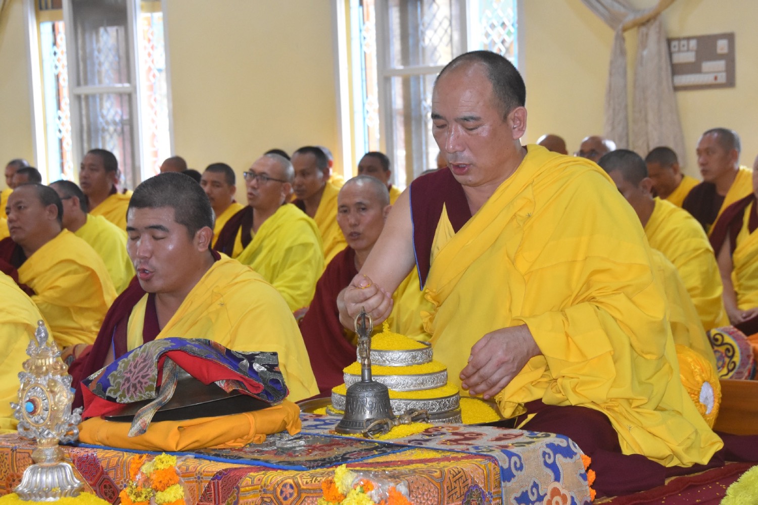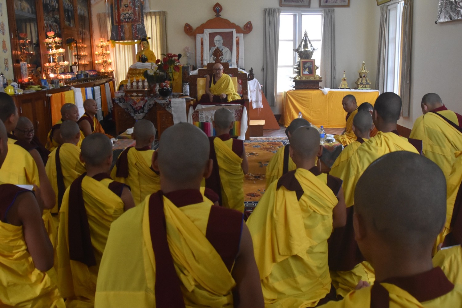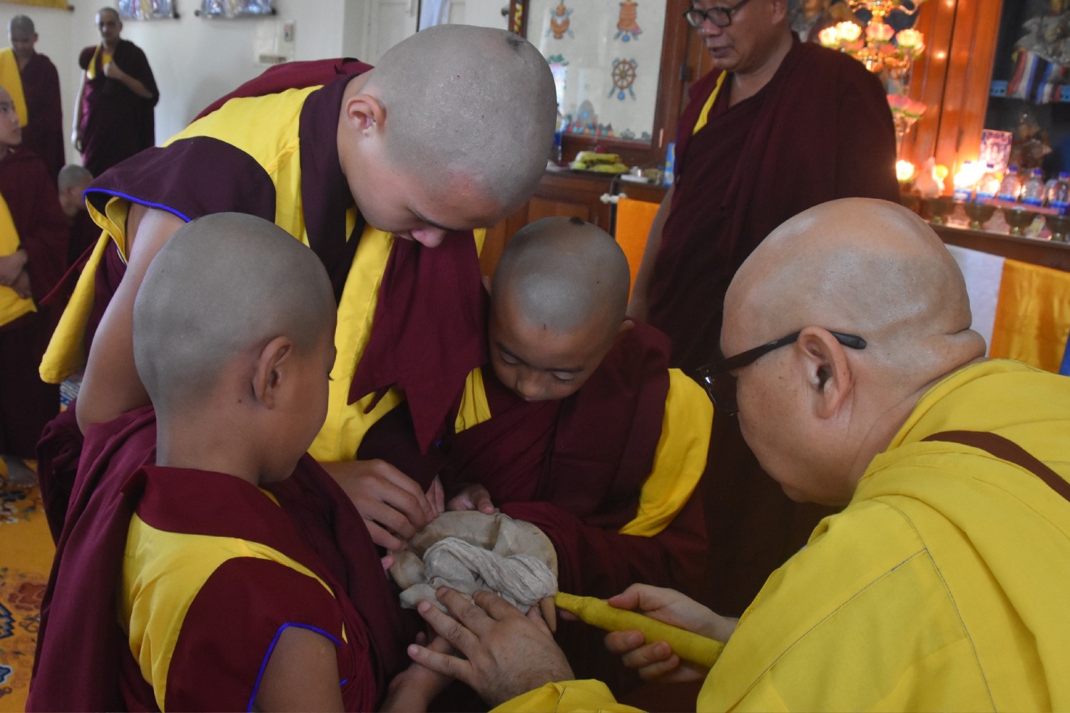 ༄༅།། དེ་རིང་སྤྱི་ཟླ་ ༩ པའི་ཚེས་བཅུ་ལྷག་དཀར་གཟའ་ཚེས་དགེ་བའི་ཉིན་མང་ཐོས་འདུལ་བ་འཛིན་པ་གྲྭ་ཚང་འདི་ཉིད་ཀྱི་མཁན་རིན་པོ་ཆེ་རྗེ་བཙུན་ངག་དབང་སངས་རྒྱས་མཆོག་ནས་གྲྭ་ཚང་གི་གསར་ཞུགས་གྲྭ་རྒྱུན་གྲངས་སུམ་ཅུ་ཙམ་ལ་དགེ་ཚུལ་གྱི་བསླབ་སྡོམ་སྩལ་གནང་ཞིང་། འདུས་མང་ཚོགས་ཡོངས་ནས་སྔོན་བྱོན་སྟོན་པའི་རྣམ་ཐར་རྗེས་འཛིན་དུ་དགྲ་བཅོམ་གསོལ་སྙོམ་ལ་ཕེབས་པའི་ཚུལ་གྱིས་ལྷུང་བཟེད་མཆོད་པའི་ཉམས་བཞེས་ལྷུར་ལེན་མཛད་དོ། །རྒྱུད་སྨད་དཔེ་མཛོད་ཁང་དྲ་ངོས་རྩོམ་སྒྲིག་པས་༢༠༢༥།༠༩།༡༠ ལ།