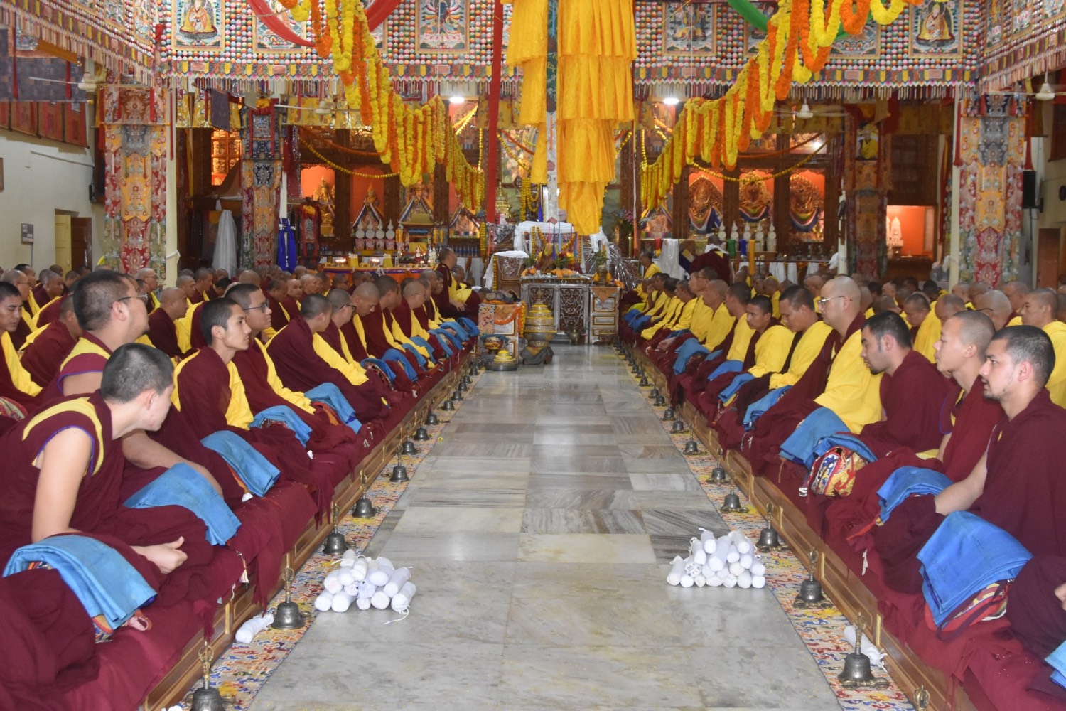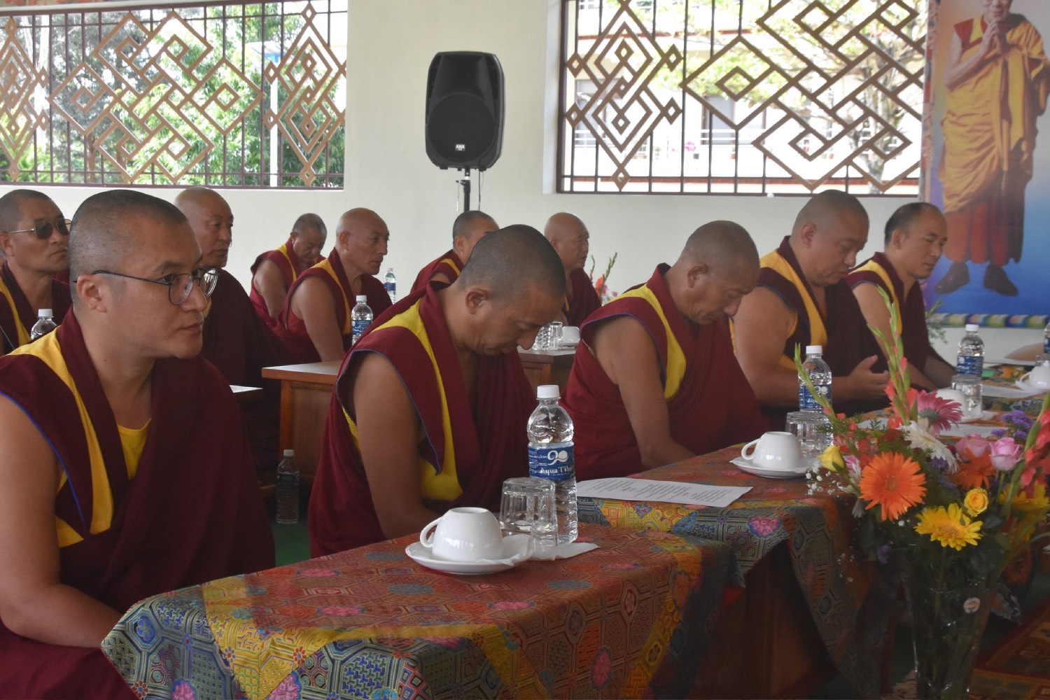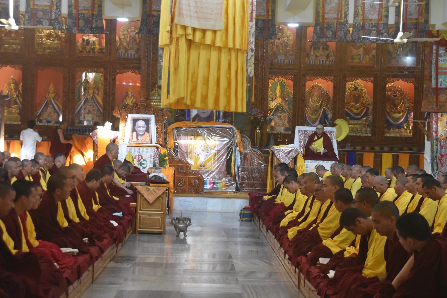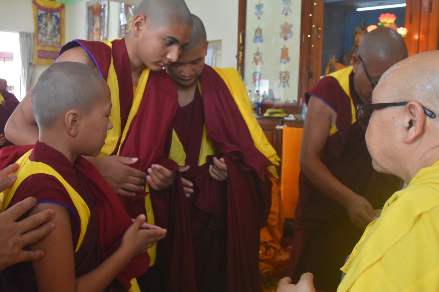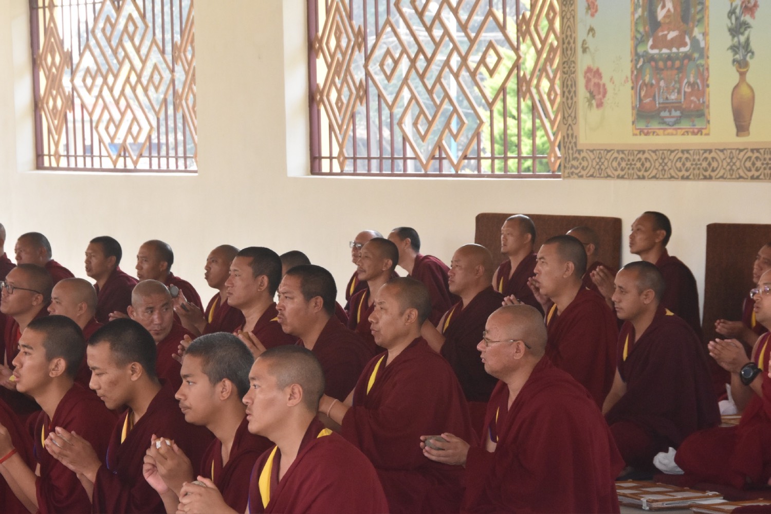 ༄༅།། དེ་རིང་སྤྱི་ཟླ་ ༩ པའི་ཚེས་བཅུ་ལྷག་དཀར་གཟའ་ཚེས་དགེ་བའི་ཉིན་མང་ཐོས་འདུལ་བ་འཛིན་པ་གྲྭ་ཚང་འདི་ཉིད་ཀྱི་མཁན་རིན་པོ་ཆེ་རྗེ་བཙུན་ངག་དབང་སངས་རྒྱས་མཆོག་ནས་གྲྭ་ཚང་གི་གསར་ཞུགས་གྲྭ་རྒྱུན་གྲངས་སུམ་ཅུ་ཙམ་ལ་དགེ་ཚུལ་གྱི་བསླབ་སྡོམ་སྩལ་གནང་ཞིང་། འདུས་མང་ཚོགས་ཡོངས་ནས་སྔོན་བྱོན་སྟོན་པའི་རྣམ་ཐར་རྗེས་འཛིན་དུ་དགྲ་བཅོམ་གསོལ་སྙོམ་ལ་ཕེབས་པའི་ཚུལ་གྱིས་ལྷུང་བཟེད་མཆོད་པའི་ཉམས་བཞེས་ལྷུར་ལེན་མཛད་དོ། །རྒྱུད་སྨད་དཔེ་མཛོད་ཁང་དྲ་ངོས་རྩོམ་སྒྲིག་པས་༢༠༢༥།༠༩།༡༠ ལ།