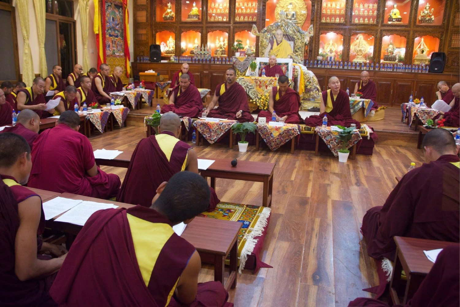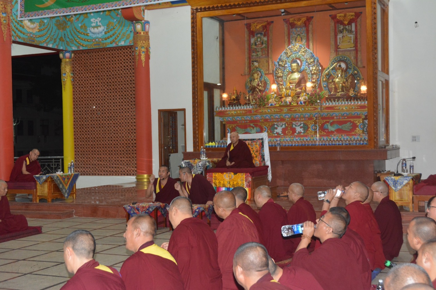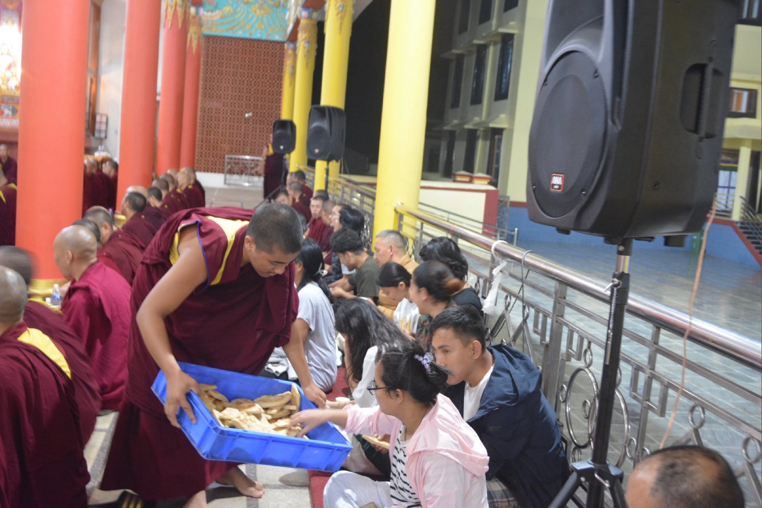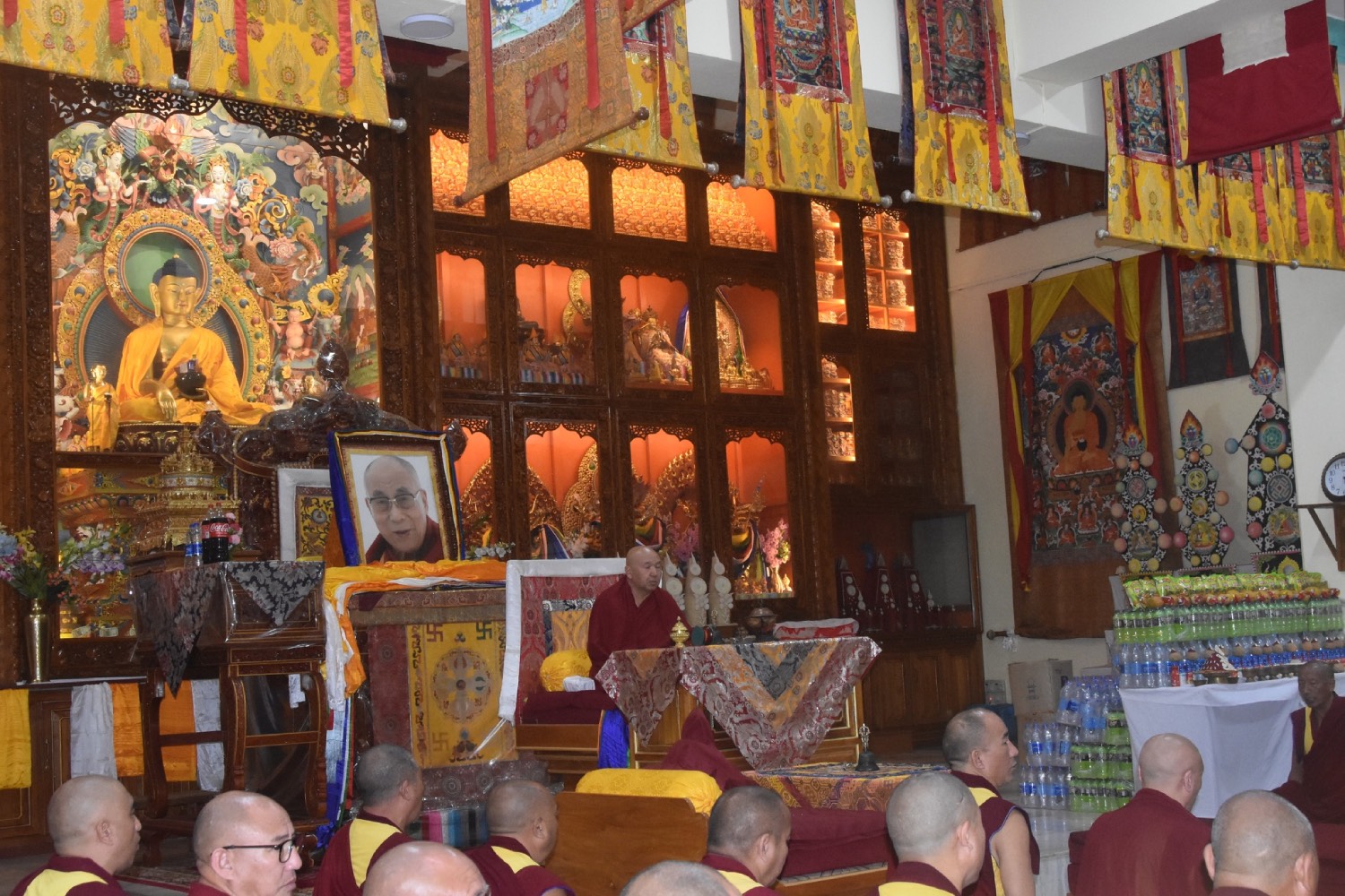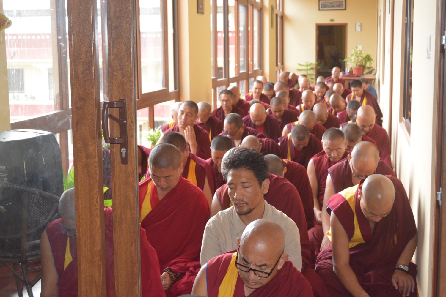 ༄༅།། དེ་རིང་སྤྱི་ཟླ་ ༩ པའི་ཚེས་བཅུ་ལྷག་དཀར་གཟའ་ཚེས་དགེ་བའི་ཉིན་མང་ཐོས་འདུལ་བ་འཛིན་པ་གྲྭ་ཚང་འདི་ཉིད་ཀྱི་མཁན་རིན་པོ་ཆེ་རྗེ་བཙུན་ངག་དབང་སངས་རྒྱས་མཆོག་ནས་གྲྭ་ཚང་གི་གསར་ཞུགས་གྲྭ་རྒྱུན་གྲངས་སུམ་ཅུ་ཙམ་ལ་དགེ་ཚུལ་གྱི་བསླབ་སྡོམ་སྩལ་གནང་ཞིང་། འདུས་མང་ཚོགས་ཡོངས་ནས་སྔོན་བྱོན་སྟོན་པའི་རྣམ་ཐར་རྗེས་འཛིན་དུ་དགྲ་བཅོམ་གསོལ་སྙོམ་ལ་ཕེབས་པའི་ཚུལ་གྱིས་ལྷུང་བཟེད་མཆོད་པའི་ཉམས་བཞེས་ལྷུར་ལེན་མཛད་དོ། །རྒྱུད་སྨད་དཔེ་མཛོད་ཁང་དྲ་ངོས་རྩོམ་སྒྲིག་པས་༢༠༢༥།༠༩།༡༠ ལ།