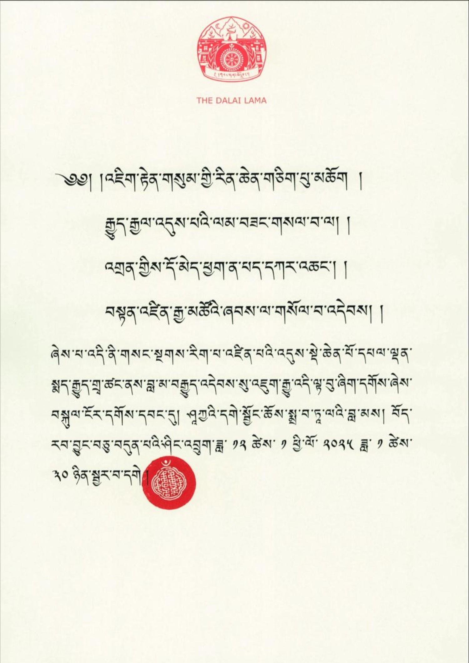 ༄༅། །བོད་བསྟན་སྲིད་སྤྱི་དང་ལྷག་པར་དུ་ས་སྟེང་༧རྒྱལ་བསྟན་ཡོངས་ཀྱི་མངའ་བདག་༧གོང་ས་༧སྐྱབས་མགོན་༧རྒྱལ་དབང་ཡིད་བཞིན་ནོར་བུའི་སྐུ་ཚེ་མཛད་འཕྲིན་རྒྱས་ཆེད་ལྷ་བླའི་ལུང་བཞིན་ཞབས་རིམ་གནས་བརྟན་ཕྱག་མཆོད་དང་། རྟེན་ཁྲུས་ཡུལ་ཁྲུས་འཕྲལ་མྱུར་གནད་སྨིན་དགོས་གལ་གཞུང་སའི་བཀའ་ཡིག་ལྟར་དེ་རིང་དཔལ་ལྡན་སྨད་རྒྱུད་གྲྭ་ཚང་གི་འདུས་མང་ཡོངས་སུ་རྫོགས་པའི་འདུས་པ་ཆེན་པོའི་ཐོག་བསྟན་དོན་ཞབས་རིམ་ཁག་གནད་སྨིན་ཞུས་པ་ལགས། རྒྱུད་སྨད་དཔེ་མཛོད་ཁང་དྲ་ངོས་རྩོམ་སྒྲིག་པས་ ༢༠༢༥།༡༠།༠༤ རེས་གཟའ་སྤེན་པ་ཉིན།