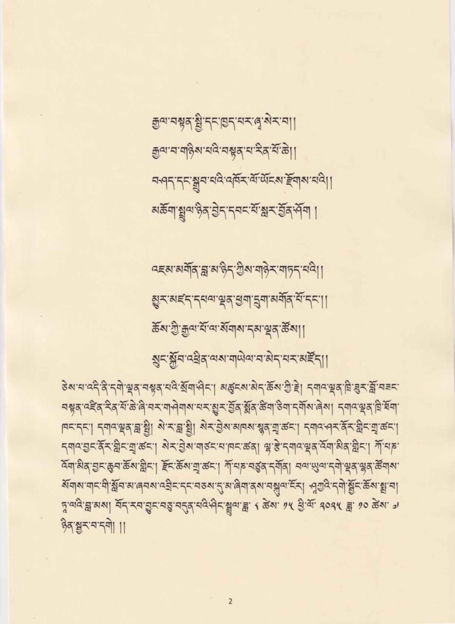 ༄༅། །གསང་ཆེན་དཔལ་ལྡན་སྨད་རྒྱུད་གྲྭ་ཚང་ནས་༧རྒྱལ་བའི་གོ་སྟོན་བྱམས་བརྩེའི་ལོ་ཡིས་བསུ་བའི་མཆོད་སྤྲིན་སྤྲོ་ཞིང། འཛམ་གླིང་ཞི་བདེ་དང། འགྲོ་ཀུན་བདེ་སྐྱིད་ཀྱི་ལེགས་ཚོགས་སུ་དམིགས། རིག་པ་འཛིན་པ་འདུས་པའི་ཚོགས་ཆེན་པོས་དཔལ་རྡོ་རྗེ་འཇིགས་བྱེད་བཅུ་གསུམ་པའི་དཀྱིལ་ཆོག་དབང་བཞི་དང་འབྲེལ་བའི་རབ་གནས་དགེ་ལེགས་འཆར་འབེབས་ཉིན་གསུམ་ལས་དེ་རིང་དངོས་གཞི་ཆོས་འཁོར་དུས་ཆེན་ཉིན་འཁེལ་བའི་གསུང་ཆོག་ཚར་དུ་དངར་ཞིང་། དེ་འབྲེལ་སེར་བྱེས་ཏྲེ་ཧོར་དགེ་བཤེས་ལྷ་རམས་པ་བསོད་ནམས་རྡོ་རྗེ་མཆོག་གྲྭ་ཚང་གི་དགུན་ཆོས་དགེ་བསྐོས་ཟླ་བ་དྲུག་རིང་བཞེངས་ཏེ་བསྟན་དོན་ལེགས་ཚོགས་ཞུ་སྒོ་ཁག་རྣམ་དག་ལེགས་གྲུབ་བྱུང་བའི་མཇུག་གི་རྣམ་དཀར་མཆོད་པའི་རྫས་སུ་སྤྲོ་བར་གྲུབ་རིག་འབུམ་སྡེའི་རོལ་མཚོ་རིག་འཛིན་འདུས་པའི་ཚོགས་ཆེན་པོར་བསྙེན་བཀུར་གཟབ་རྒྱས་ལེགས་འབུལ་གྱི་དགེ་རྩ་ཡངས་པར་བྱས་པའོ། །བྱམས་བརྩེ་ལོ། རྒྱུད་སྨད་དཔེ་མཛོད་ཁང་དྲ་ངོས་རྩོམ་སྒྲིག་པས་༢༠༢༥།༠༧།༢༨ལ།