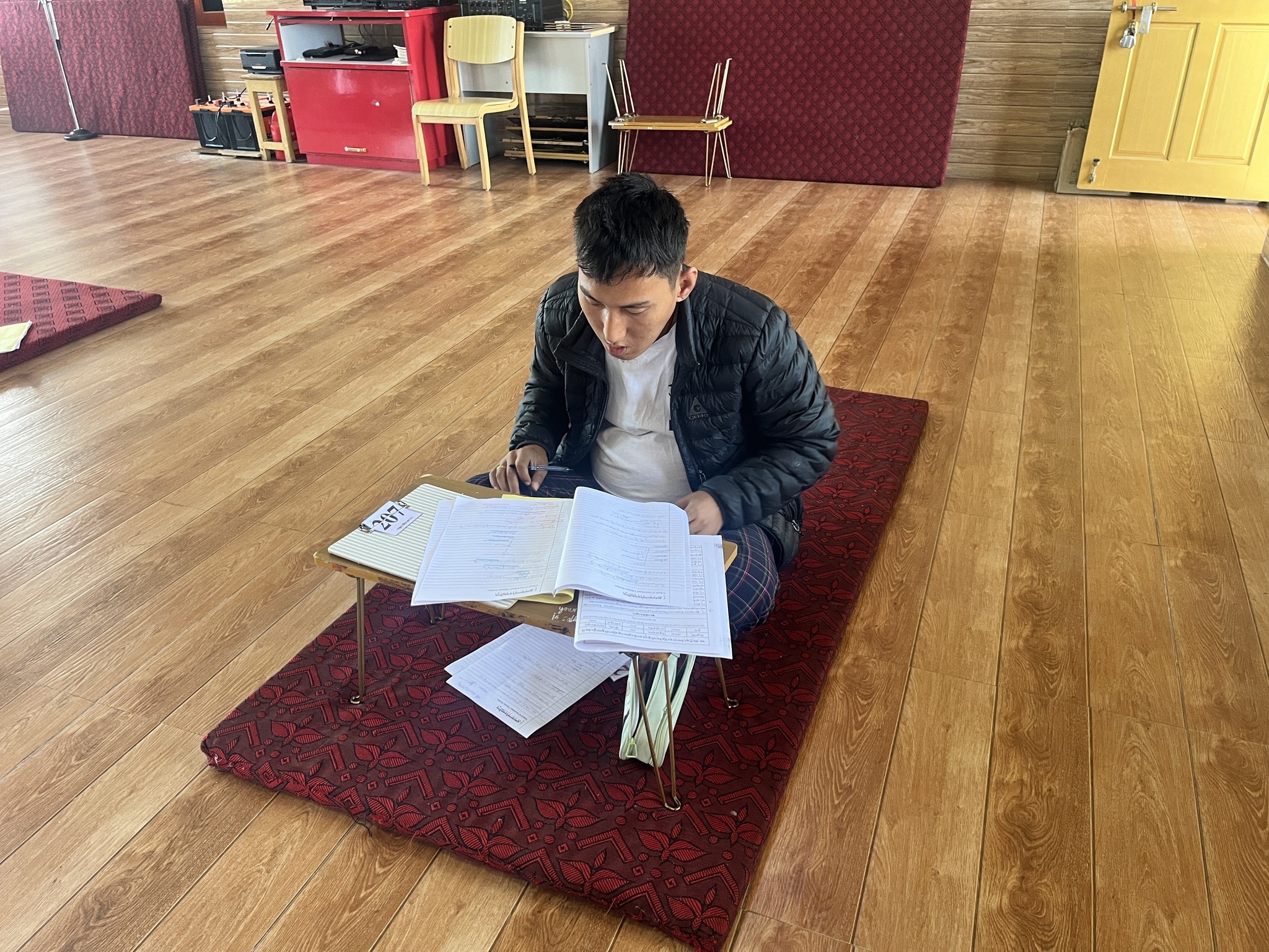 ༄༅། །དཔལ་ལྡན་སྨད་རྒྱུད་གྲྭ་ཚང་དུ་སྤྱི་ལོ་ ༢༠༢༥ ཟླ་ ༡༢ ཚེས་ ༢༢ ཉིན་བོད་ཀྱི་སྐད་ཡིག་དང་ནང་དོན་རིག་པའི་ཟླ་དྲུག་ཟབ་ཁྲིད་ཐེངས་བཅུ་གཉིས་པ་ལ་ཞུགས་པའི་སློབ་ཕྲུག་རྣམས་ཀྱི་སྔོན་འགྲོའི་ཆོས་འབྱུང་དང་། གཞུང་ཆེན་དབུ་མ་དང་ཕར་ཕྱིན་བཅས་ཀྱི་བྲིས་རྒྱུགས། ཉིན་དང་པོ། རྒྱུད་སྨད་དཔེ་མཛོད་ཁང་དྲ་ངོས་རྩོམ་སྒྲིག་པས་ ༢༠༢༥།༡༢།༢༢ ལ།