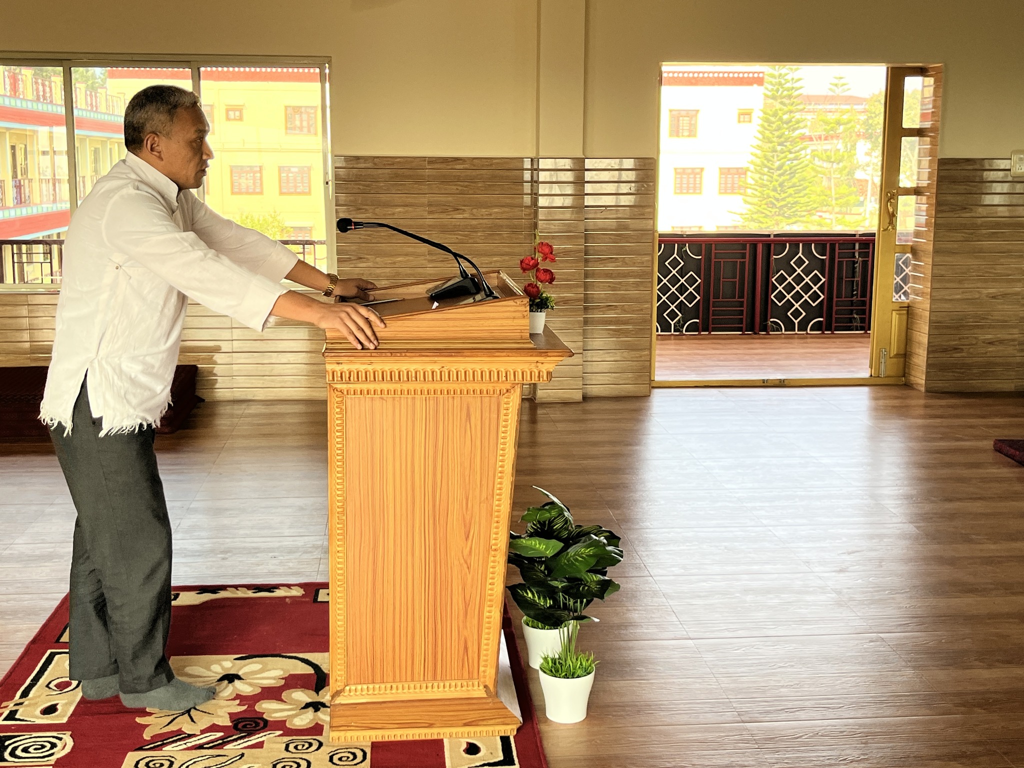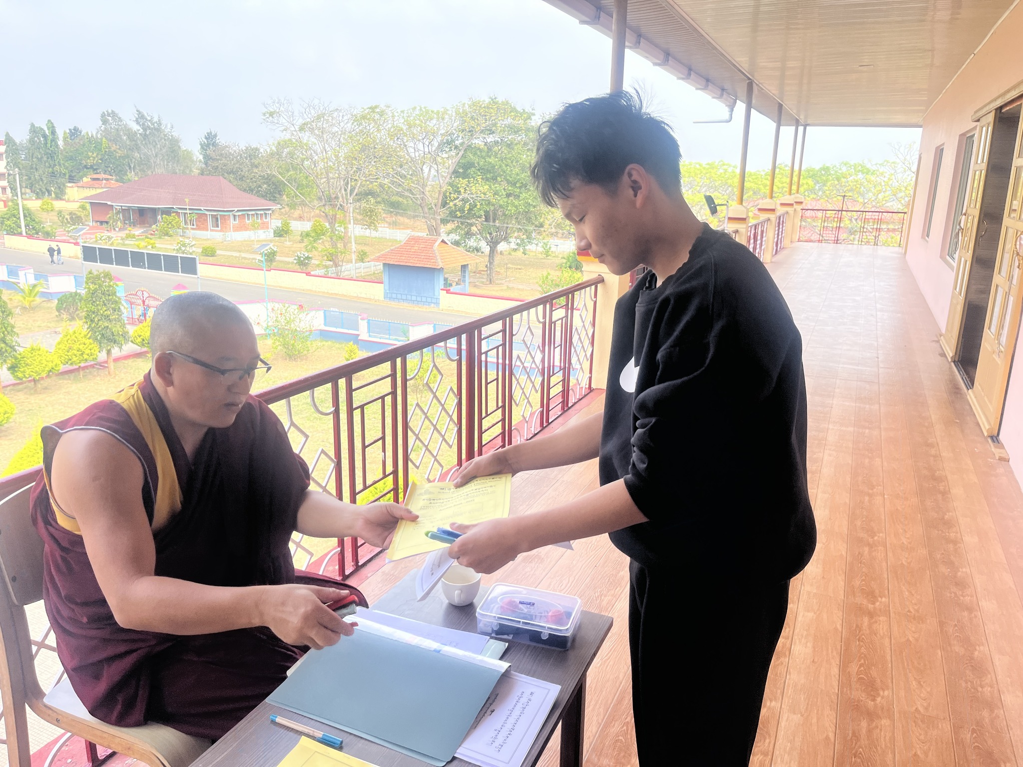 ༄༅། །གསང་ཆེན་དཔལ་ལྡན་སྨད་རྒྱུད་གྲྭ་ཚང་གསང་སྔགས་བསྟན་པའི་བཤད་སྒྲུབ་ཀྱི་བསྟི་གནས་འཛིན་པ་མཚན་གྱི་སྙན་པ་ཡོངས་སུ་གྲགས་པ་འདི་ཡི་དགེ་འདུན་གྱི་འཚོ་བའི་མཐུན་འགྱུར་དེ་ཡང་སྔར་བས་ལེགས་ཕྱོགས་ནས་ལེགས་སུ་འགྲོ་མུས་ལྟར། སྐབས་འདིའི་སྤྱི་འགན་འདུས་སྤྱི་ལྷན་ཁང་ནས་འདུས་མང་གི་འཕྲལ་ཕུག་མངོན་འཕྲད་ཀྱི་དཀའ་ངལ་སེལ་ཕྱིར་དགེ་འདུན་པའི་བཞུགས་ཤག་ཐོག་བརྩེགས་གསུམ་ཅན་ཞིག་