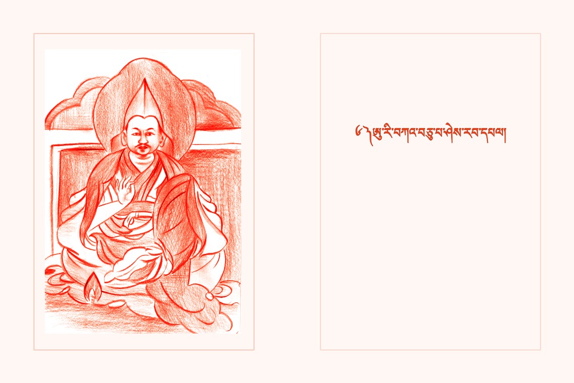 མཁྱེན་བརྩེ་འོད་ཟེར་ཕྱོགས་བཅུར་འཕྲོ་བའི་ཐུགས། །དཔལ་ལྡན་བླ་མའི་ཞབས་ལ་གསོལ་བ་འདེབས། །