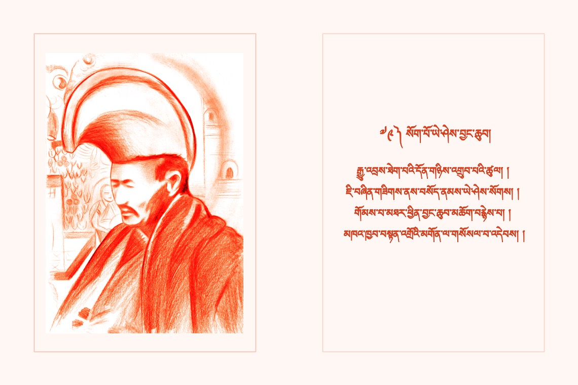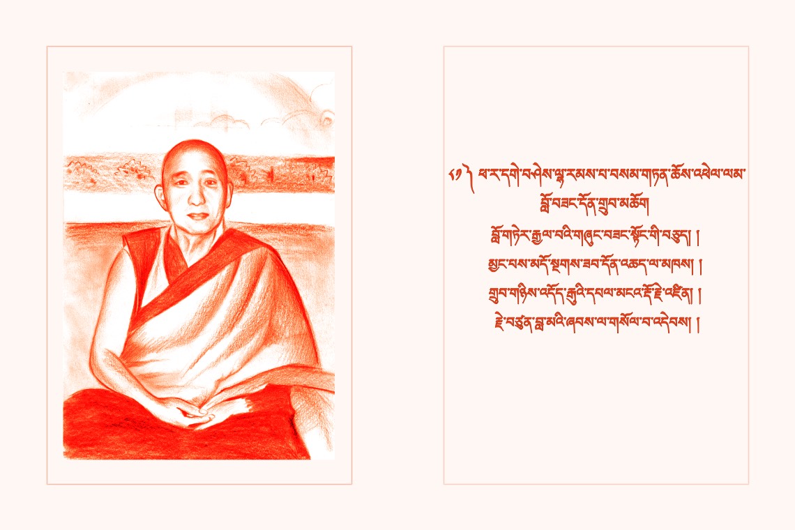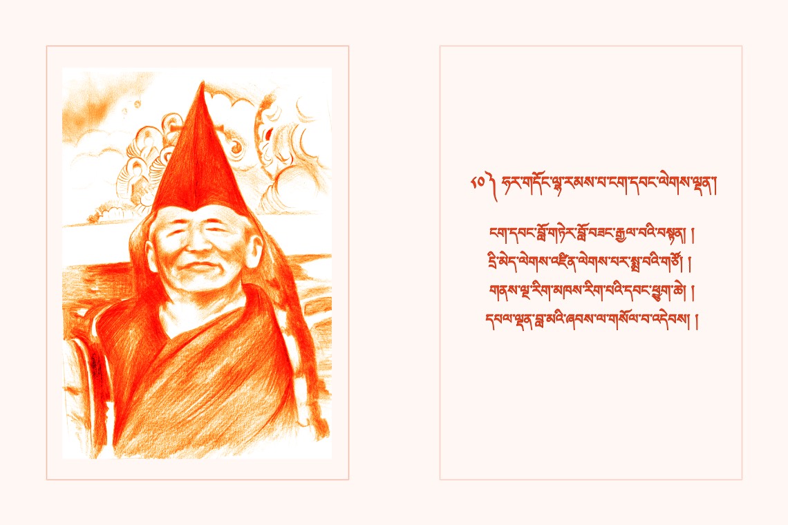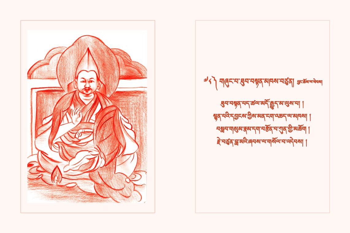 གཞན་ཕན་བརྩེ་བའི་སོར་རྩེེས་ལེགས་བཀྲོལ་ཏེ། །སྟོན་མཛད་རྗེ་བཙུན་བླ་མར་གསོལ་བ་འདེབས། །