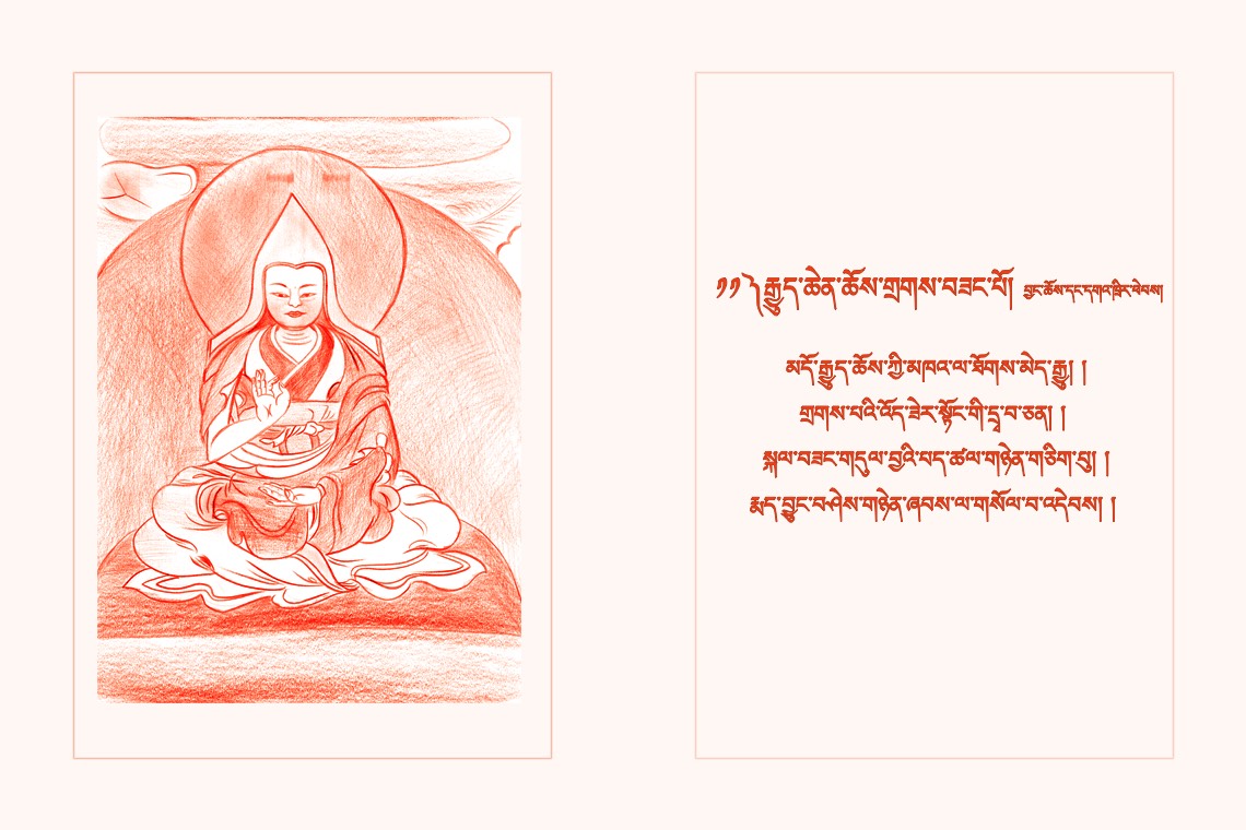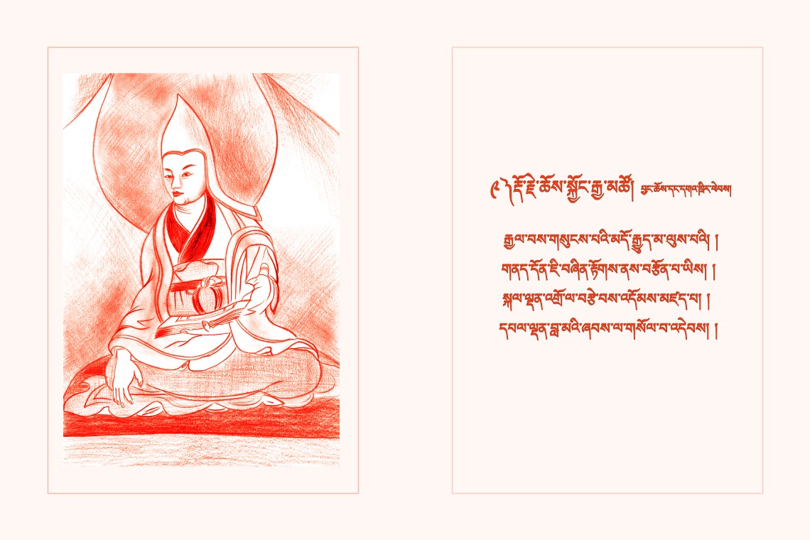 སྐལ་བཟང་གདུལ་བྱའི་པད་ཚལ་གཉེན་གཅིག་པུ། །རྨད་བྱུང་བཤེས་གཉེན་ཞབས་ལ་གསོལ་བ་འདེབས། །