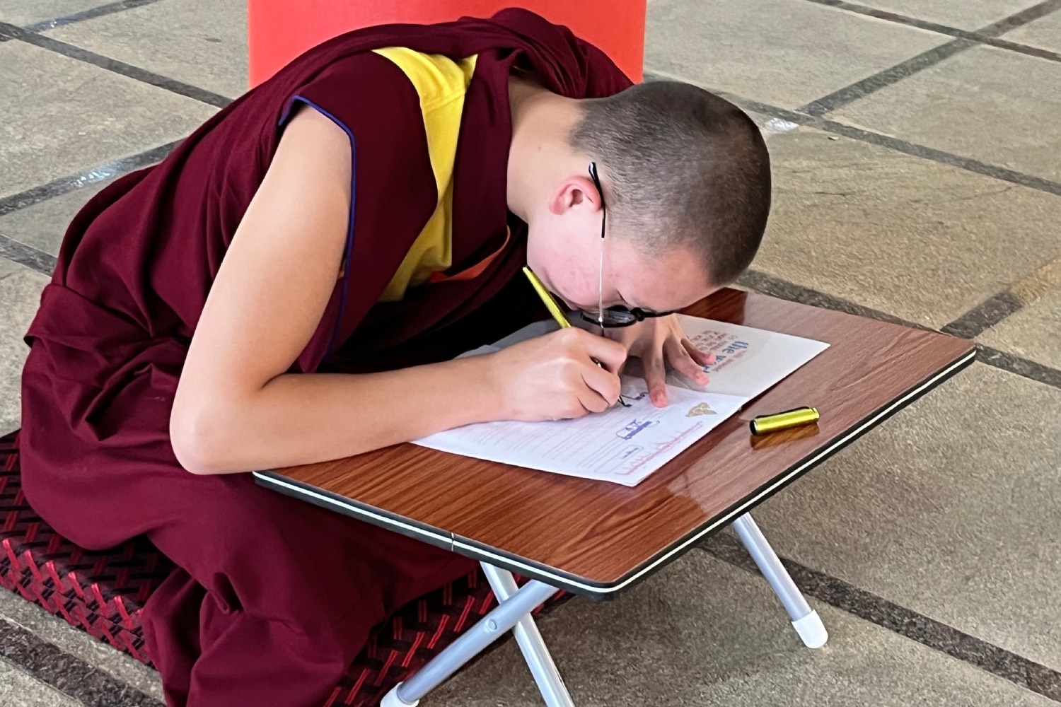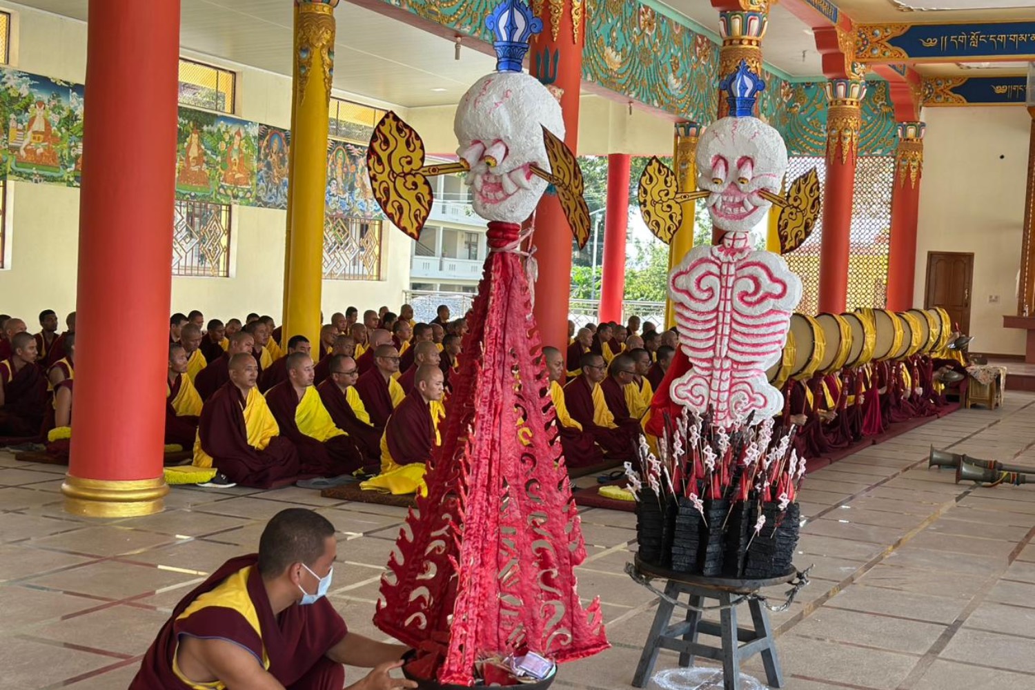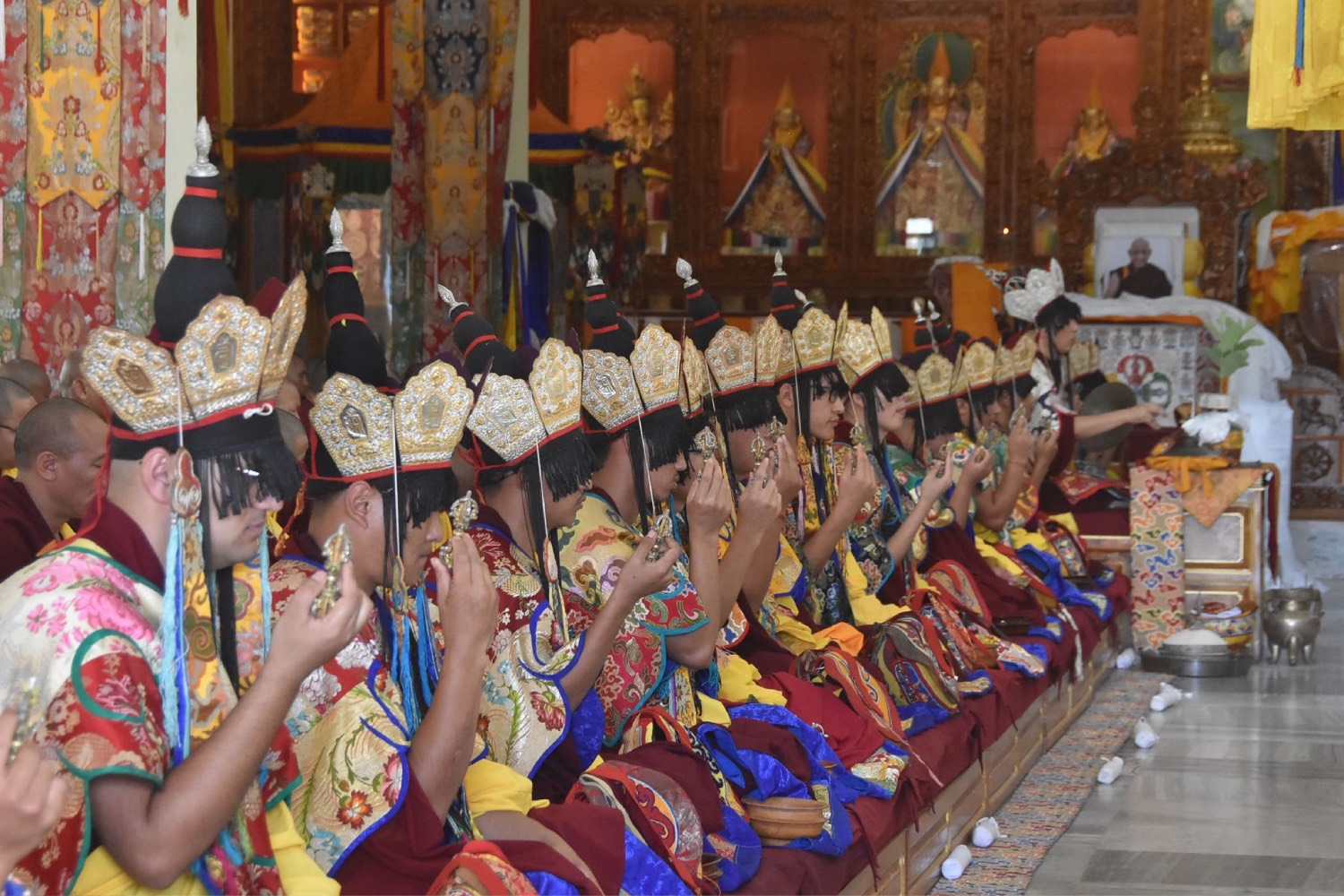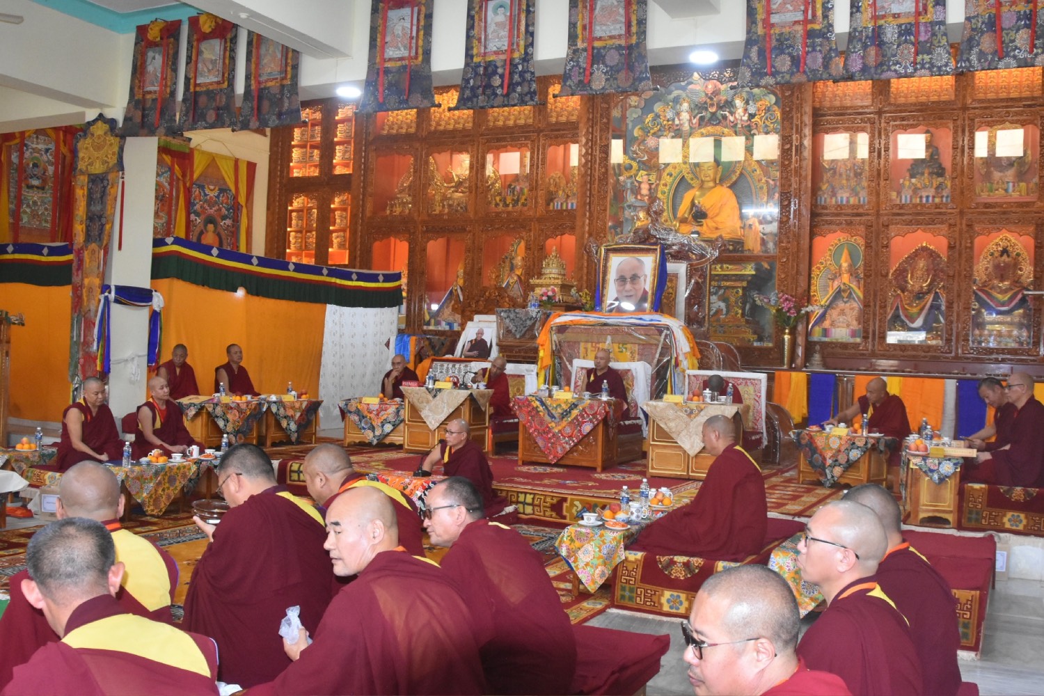 ༄༅། །གསང་ཆེན་དཔལ་ལྡན་སྨད་རྒྱུད་གྲྭ་ཚང་ནས་༧རྒྱལ་བའི་གོ་སྟོན་བྱམས་བརྩེའི་ལོ་ཡིས་བསུ་བའི་མཆོད་སྤྲིན་སྤྲོ་ཞིང། འཛམ་གླིང་ཞི་བདེ་དང། འགྲོ་ཀུན་བདེ་སྐྱིད་ཀྱི་ལེགས་ཚོགས་སུ་དམིགས། རིག་པ་འཛིན་པ་འདུས་པའི་ཚོགས་ཆེན་པོས་དཔལ་རྡོ་རྗེ་འཇིགས་བྱེད་བཅུ་གསུམ་པའི་དཀྱིལ་ཆོག་དབང་བཞི་དང་འབྲེལ་བའི་རབ་གནས་དགེ་ལེགས་འཆར་འབེབས་ཉིན་གསུམ་ལས་དེ་རིང་དངོས་གཞི་ཆོས་འཁོར་དུས་ཆེན་ཉིན་འཁེལ་བའི་གསུང་ཆོག་ཚར་དུ་དངར་ཞིང་། དེ་འབྲེལ་སེར་བྱེས་ཏྲེ་ཧོར་དགེ་བཤེས་ལྷ་རམས་པ་བསོད་ནམས་རྡོ་རྗེ་མཆོག་གྲྭ་ཚང་གི་དགུན་ཆོས་དགེ་བསྐོས་ཟླ་བ་དྲུག་རིང་བཞེངས་ཏེ་བསྟན་དོན་ལེགས་ཚོགས་ཞུ་སྒོ་ཁག་རྣམ་དག་ལེགས་གྲུབ་བྱུང་བའི་མཇུག་གི་རྣམ་དཀར་མཆོད་པའི་རྫས་སུ་སྤྲོ་བར་གྲུབ་རིག་འབུམ་སྡེའི་རོལ་མཚོ་རིག་འཛིན་འདུས་པའི་ཚོགས་ཆེན་པོར་བསྙེན་བཀུར་གཟབ་རྒྱས་ལེགས་འབུལ་གྱི་དགེ་རྩ་ཡངས་པར་བྱས་པའོ། །བྱམས་བརྩེ་ལོ། རྒྱུད་སྨད་དཔེ་མཛོད་ཁང་དྲ་ངོས་རྩོམ་སྒྲིག་པས་༢༠༢༥།༠༧།༢༨ལ།