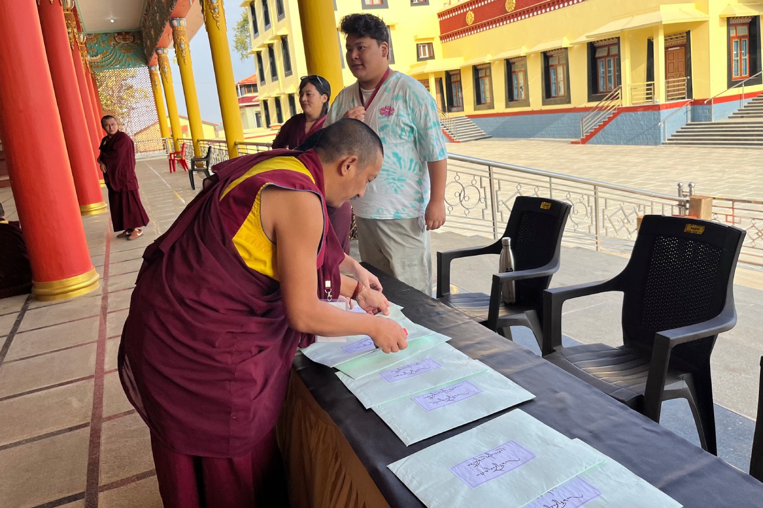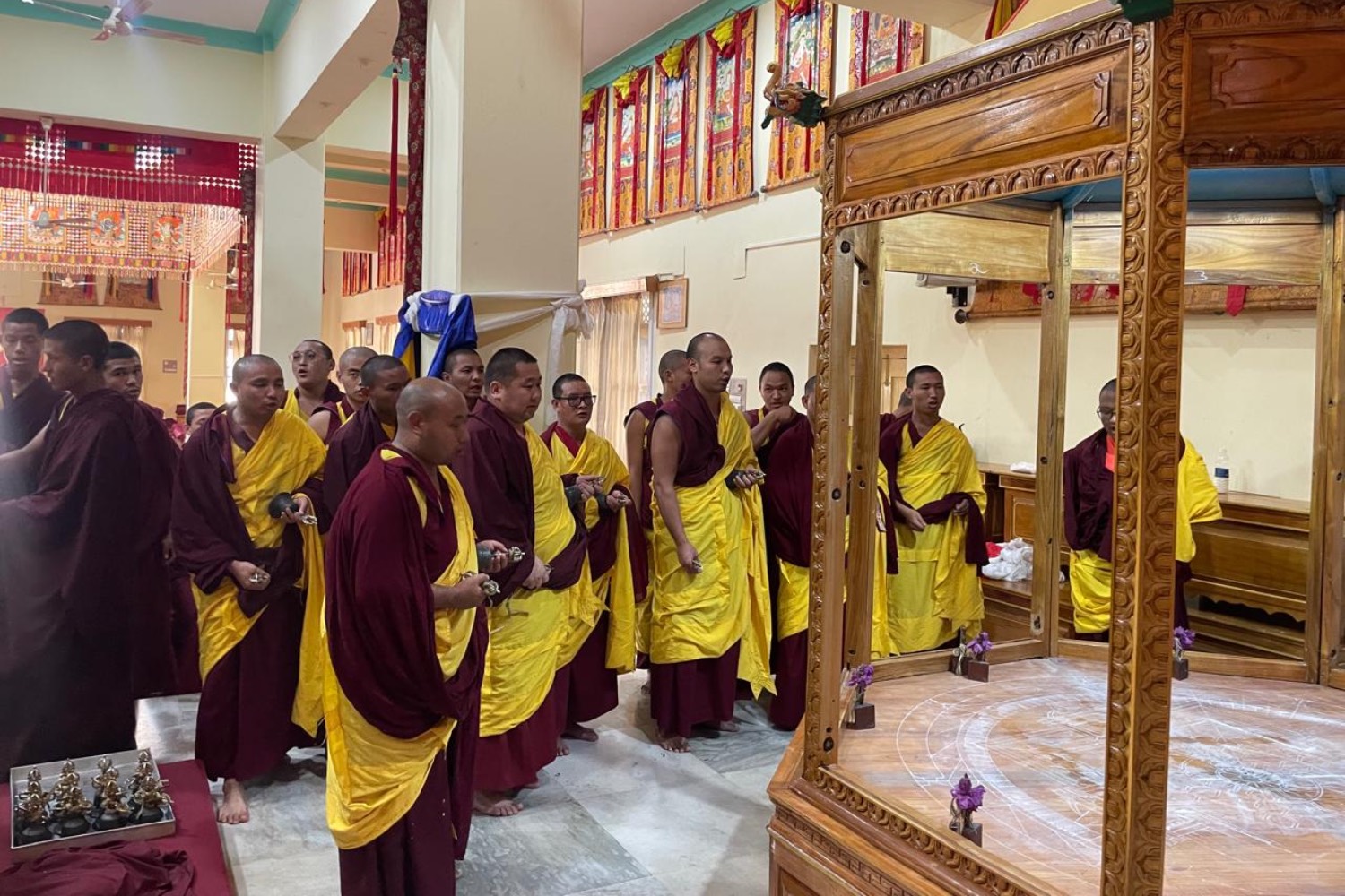 ༄༅། །གསང་ཆེན་དཔལ་ལྡན་སྨད་རྒྱུད་པའི་ཕྱག་ལེན་གཙོ་ཆེན་དཔལ་འཁོར་ལོ་སྡོམ་པའི་སྒྲུབ་མཆོད་ཆེན་མོ་དེ་རིང་ཉིན་བཞི་པ་དང་མཇུག་ཆོག་ཏུ་དཀྱིལ་འཁོར་ལྷ་ཚོགས་མེ་ལྷའི་གཞལ་ཡས་ཁང་དུ་གདན་དྲངས་མཆོད་པས་མཉེས་པར་བྱེད་པའི་ཞི་བའི་སྦྱིན་སྲེག་བསྟར་འབུལ་ཐོག་རྡུལ་མཚོན་ཀླུ་ལ་མཆོད་པའི་ཆོ་ག་དང་བཅས་པ་ལེགས་པར་གྲུབ་བོ། །རྒྱུད་སྨད་དཔེ་མཛོད་ཁང་དྲ་ངོས་རྩོམ་སྒྲིག་པས་ ༢༠༢༦།༠༡།༢༣ ལ།