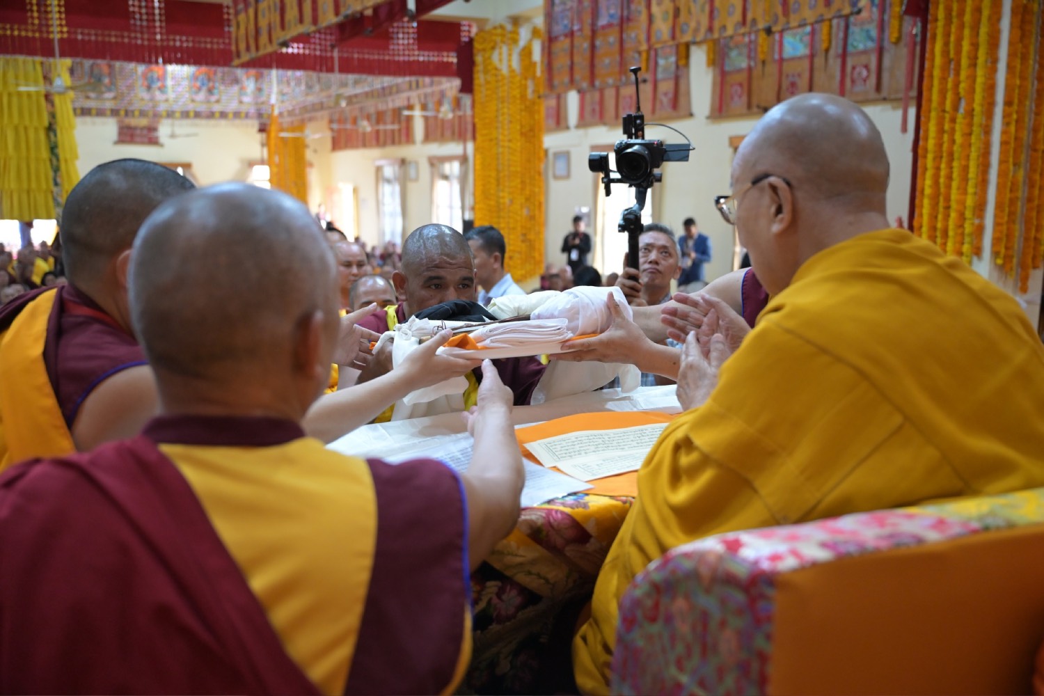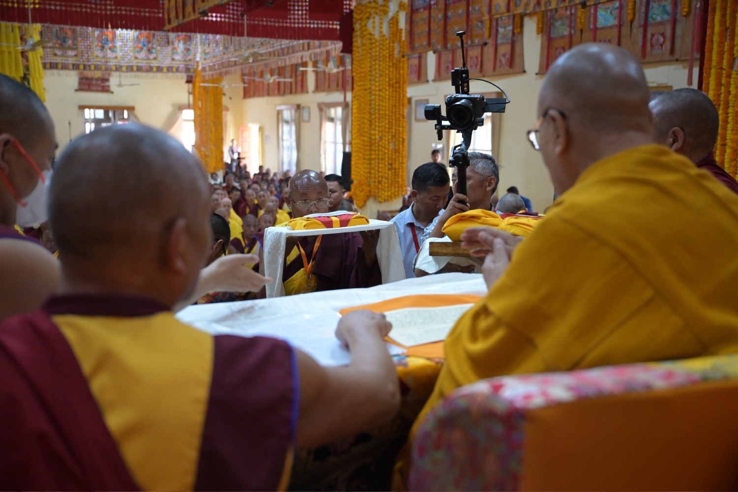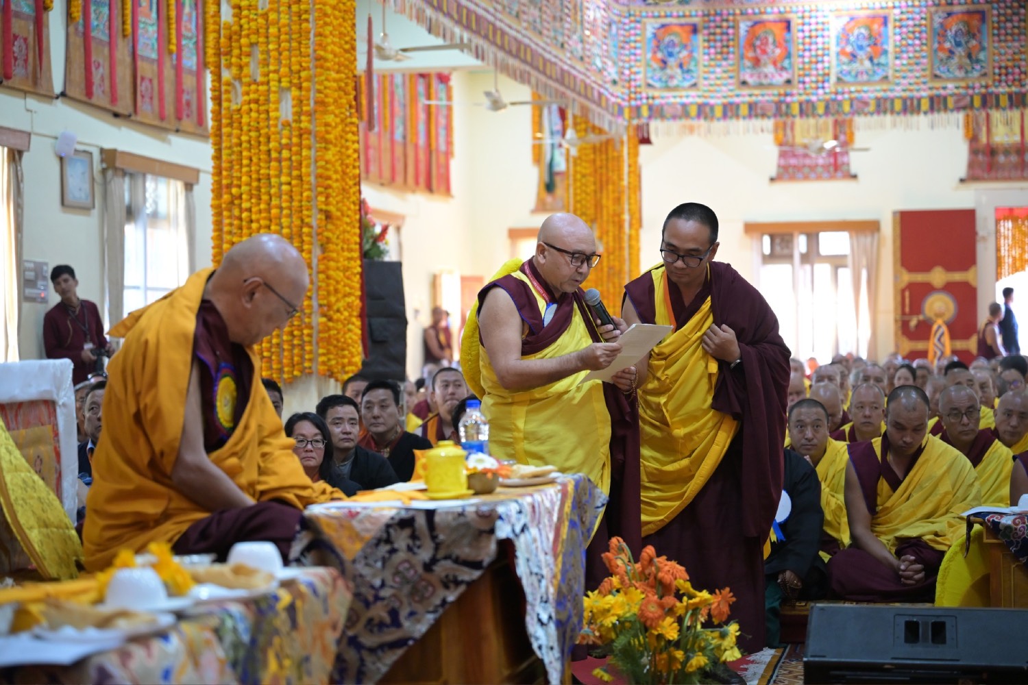 གསང་ཆེན་དཔལ་ལྡན་སྨད་རྒྱུད་པའི་ཞོགས་དང་པོའི་ཆོས་ཐོག་གདིང་རྒྱག་གི་དུས་ཚེས་སུ་གསར་ཞུགས་འདི་ལོའི་ཆོས་ཐོག་འགྲིམ་པའི་བཀའ་རམས་དགེ་བཤེས་དང་བསྐྱེད་རིམ་པ་བཅས་པས་ཐོག་མའི་བཞུགས་གདིང་ཚོགས་སུ་སྐྱོན་པ་དང། སྐྱབས་རྗེ་མཁན་རིན་པོ་ཆེ་མཆོག་གི་ཞལ་སྔ་ནས་ལྷ་ཚོགས་དགེ་བཤེས་རྣམས་དང་དགེ་སློང་གསར་པ་དང་བཅས་པར་འགྲེལ་པ་བཞི་སྦྲགས་ཀྱི་འཆད་ཉན་དབུ་ཚུགས་གནང་སྐབས། ༢༠༢༣།༠༣།༢༥-
