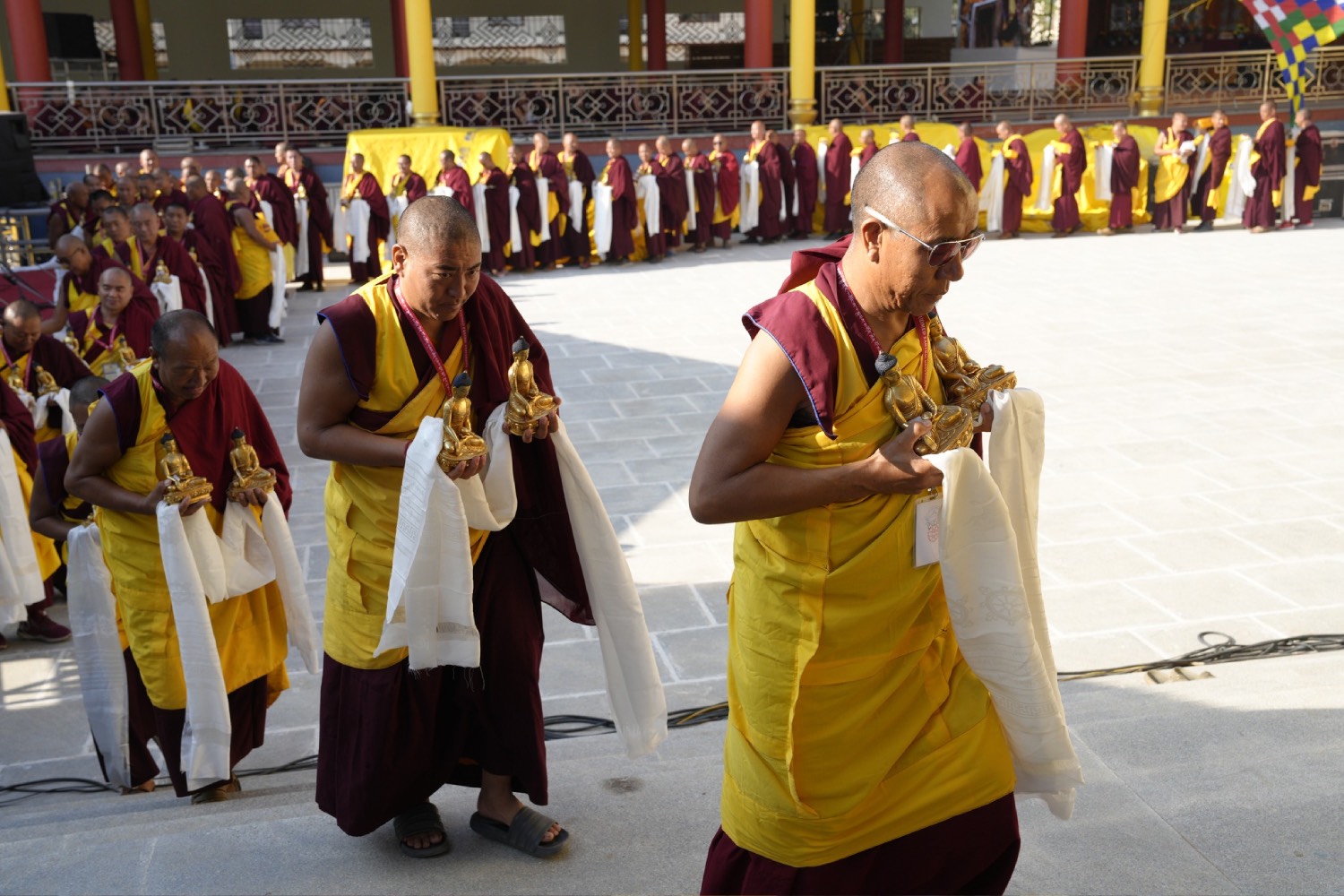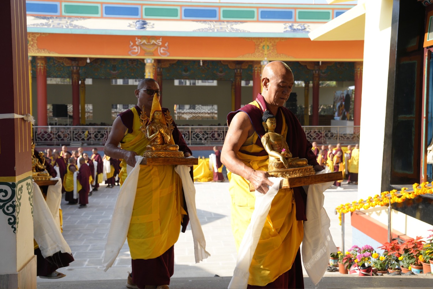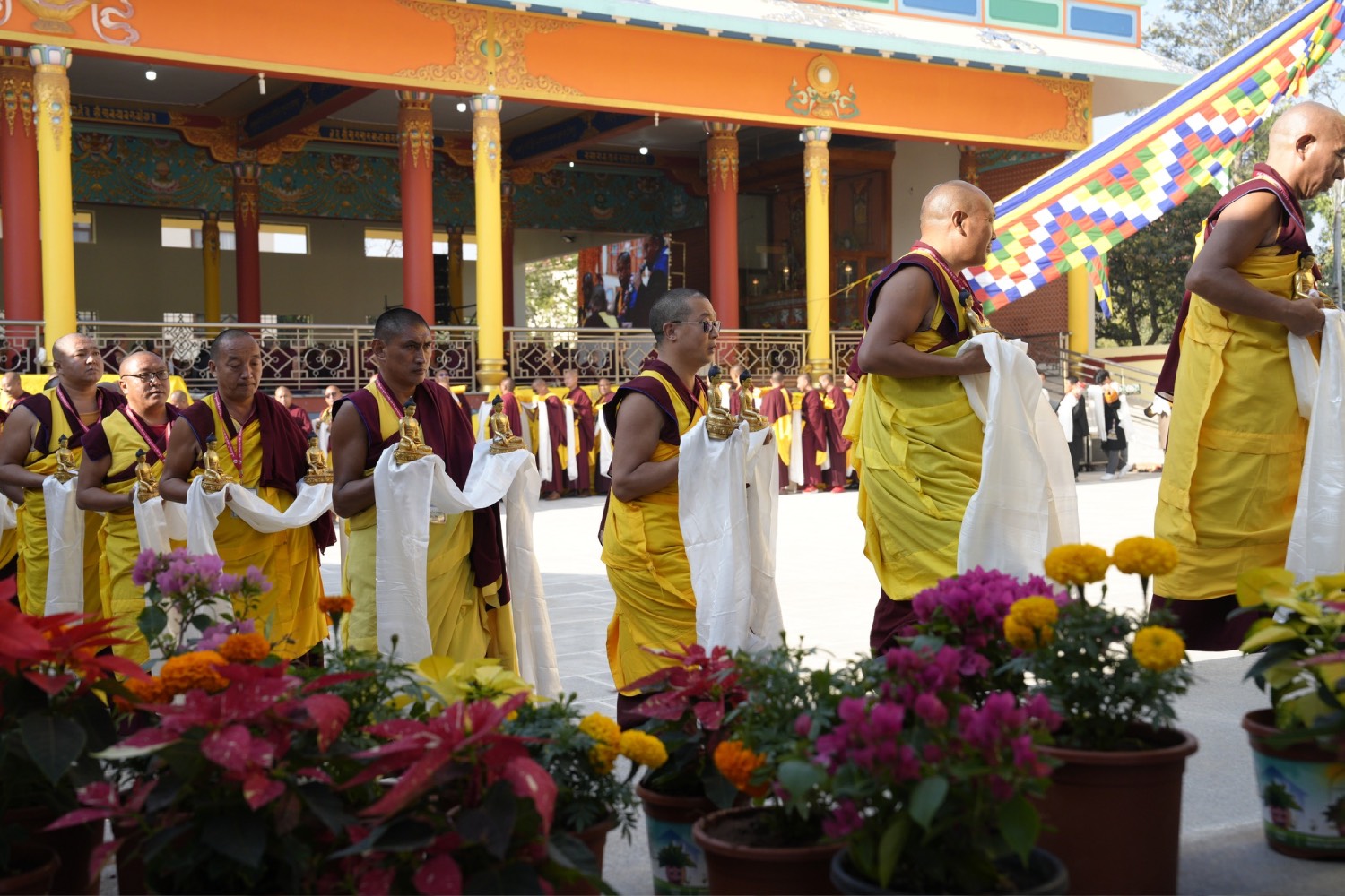 གསང་ཆེན་དཔལ་ལྡན་སྨད་རྒྱུད་པའི་ཞོགས་དང་པོའི་ཆོས་ཐོག་གདིང་རྒྱག་གི་དུས་ཚེས་སུ་གསར་ཞུགས་འདི་ལོའི་ཆོས་ཐོག་འགྲིམ་པའི་བཀའ་རམས་དགེ་བཤེས་དང་བསྐྱེད་རིམ་པ་བཅས་པས་ཐོག་མའི་བཞུགས་གདིང་ཚོགས་སུ་སྐྱོན་པ་དང། སྐྱབས་རྗེ་མཁན་རིན་པོ་ཆེ་མཆོག་གི་ཞལ་སྔ་ནས་ལྷ་ཚོགས་དགེ་བཤེས་རྣམས་དང་དགེ་སློང་གསར་པ་དང་བཅས་པར་འགྲེལ་པ་བཞི་སྦྲགས་ཀྱི་འཆད་ཉན་དབུ་ཚུགས་གནང་སྐབས། ༢༠༢༣།༠༣།༢༥-