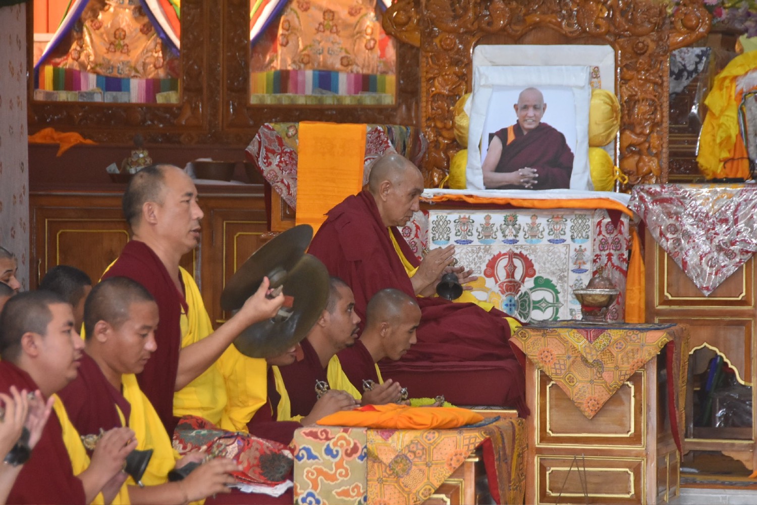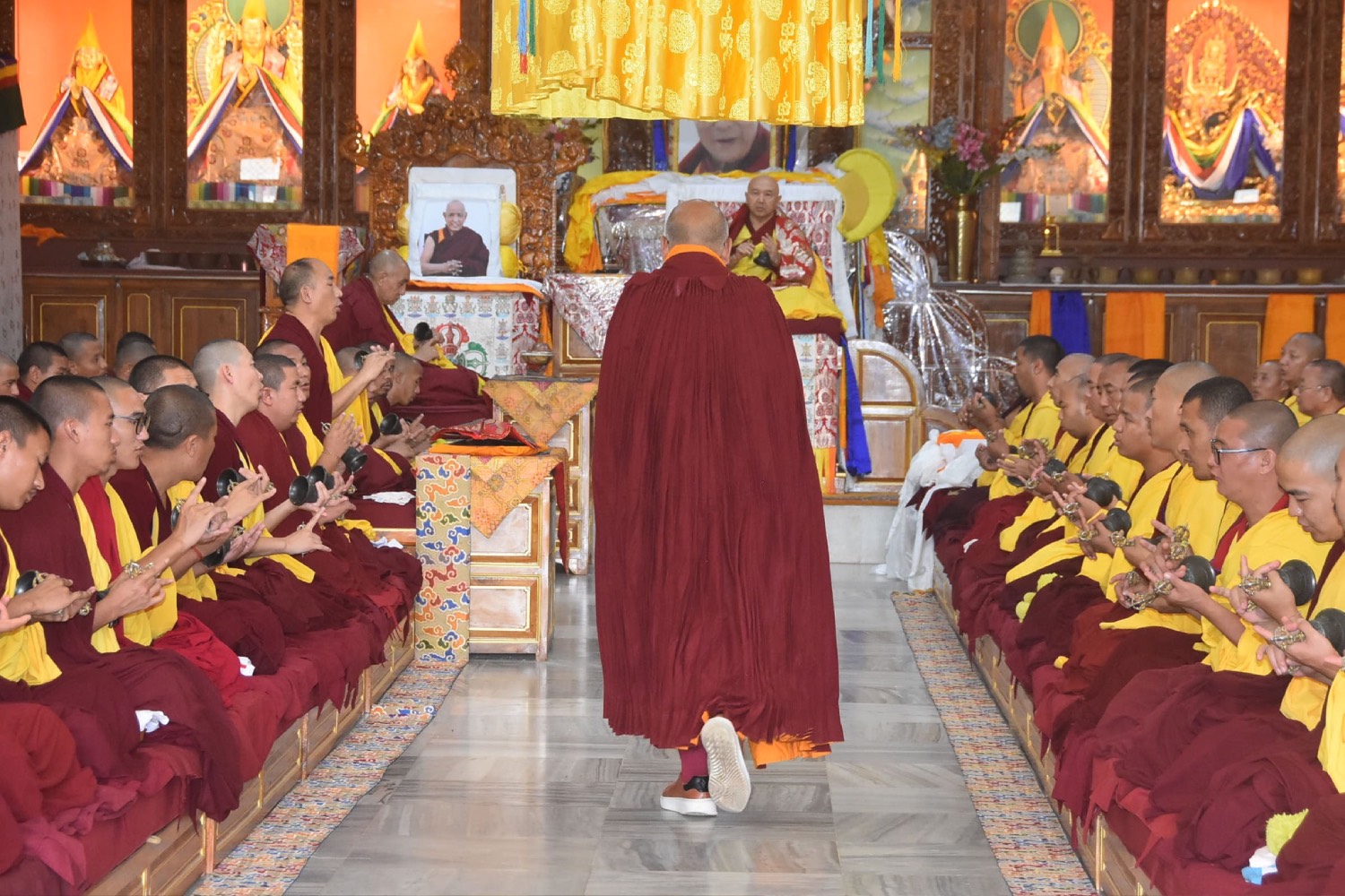 ༄༅། །སྤྱི་ལོ་ ༢༠༢༥ ཟླ་ ༥ ཚེས་ ༡༤ རེས་གཟའ་ལྷག་དཀར་ཉིན་ལ། གསང་ཆེན་དཔལ་ལྡན་སྨད་རྒྱུད་གྲྭ་ཚང་གི་སྐབས་ཉེར་གཅིག་པའི་སྤྱི་འགན་ཞབས་ཁུར་ཁྱུར་ཟིན་པ་རྣམས་ཀྱིས་ལོ་ངོ་གསུམ་རིང་གྲྭ་ཚང་ཕྱི་ནང་གི་ལས་གཞི་སྣེ་མང་ལེགས་གྲུབ་ཐོག །དེ་རིང་སྐྱབས་གནས་རིག་པ་འཛིན་པའི་དགེ་འདུན་འདུས་པའི་ཚོགས་ཆེན་པོའི་བསོད་ནམས་ཀྱི་ཞིང་མཆོག་དམ་པར། ཟག་མེད་ཚོགས་མཆོད་འཁོར་ལོའི་མཆོད་སྤྲིན་རྒྱ་ཆེར་སྤྲོ་བའི་མཆོད་འབུལ་བསྙེན་བཀུར་དང་། ཡོན་འགྱེད་ལེགས་དར་འབུལ་བཤམས་ཀྱི་བསོད་ནམས་རྫོགས་ལྡན་སྐལ་བ་བཟང་པོའི་དགེ་ལེགས་བསམ་མི་ཁྱབ་པ་ངོ་ཚར་རྨད་དུ་བྱུང་བ་བྱས་སོ། །རྒྱུད་སྨད་དཔེ་མཛོད་ཁང་དྲ་ངོས་རྩོམ་སྒྲིག་པས་ ༢༠༢༥།༠༤།༡༧།ལ།