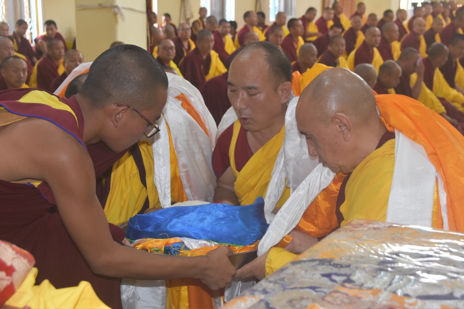 ༄༅། །སྤྱི་ལོ་ ༢༠༢༥ ལོ་ཧྲིལ་པོར་༧རྒྱལ་བའི་སྐུའི་གོ་སྟོན་གྱི་མཆོད་སྤྲིན་སྤྲོ་བའི་དུས་བཟང་མངོན་པར་བསུ་བའི་མཛད་སྒོའི་ཐོག་དཔལ་ལྡན་སྨད་རྒྱུད་གྲྭ་ཚང་དུ་ཐུགས་རྗེའི་གཟིགས་པས་བྱོན་པའི་མཚུངས་མེད་བྱང་རྩེ་ཆོས་རྗེ་སྐྱབས་རྗེ་སྒོ་སོག་རིན་པོ་ཆེ་མཆོག་དབུ་བཞུགས་ཐོག །མཁན་བླ་འདུས་དམངས་ཡོངས་དང་། སྐུ་མགྲོན་སྦྱིན་བདག་དང་བཅས་པ་དགའ་བསུ་ལྷན་འཛོམས་ཐོག་མཐོང་བ་བརྒྱུད་པའི་ཕྱག་ལེན་བགྲོ་གླེང་ཆེན་མོ་ཚོགས། རྒྱུད་སྨད་དཔེ་མཛོད་ཁང་དྲ་ངོས་རྩོམ་སྒྲིག་པས་ ༢༠༢༥།༠༤།༡༦-༡༧།ལ།