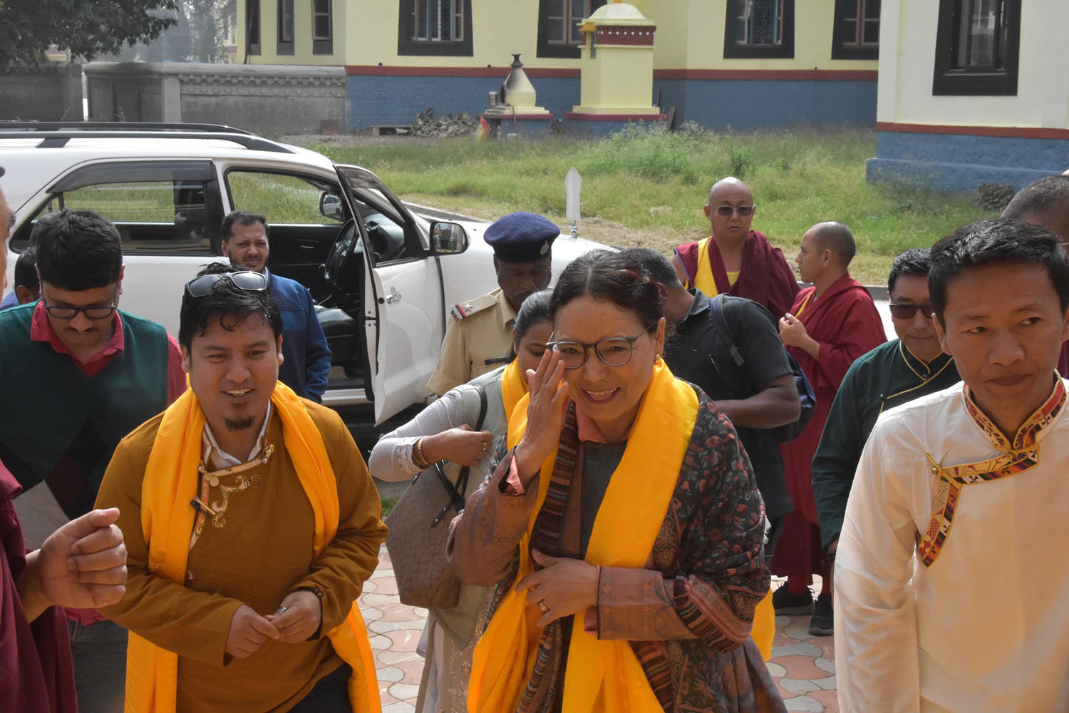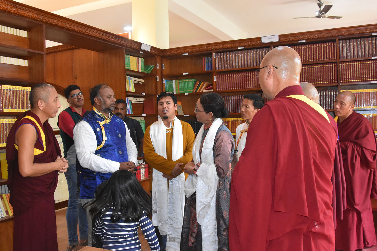༄༅། །གནས་ཡུལ་རྒྱ་གར་ལྷོ་ཕྱོགས་ཀ་ན་ཀྲ་ཀ་མངའ་སྡེའི་གྲངས་ཉུང་མི་རིགས་ཀྱི་བློན་ཆེན་མཆོག་དེ་རིང་ཧོན་སུར་དཔལ་ལྡན་རྒྱུད་སྨད་གྲྭ་ཚང་དུ་འཚམས་གཟིགས་དང་འབྲེལ་མཁན་བླ་འདུས་མང་དང་བཅས་པ་མཇལ་འཕྲད་གཟིགས་སྐོར་བསྐྱང་གནང་ཡོད། རྒྱུད་སྨད་དཔེ་མཛོད་ཁང་དྲ་ངོས་རྩོམ་སྒྲིག་པས་ ༢༠༢༤།༠༦།༢༨།ལ།