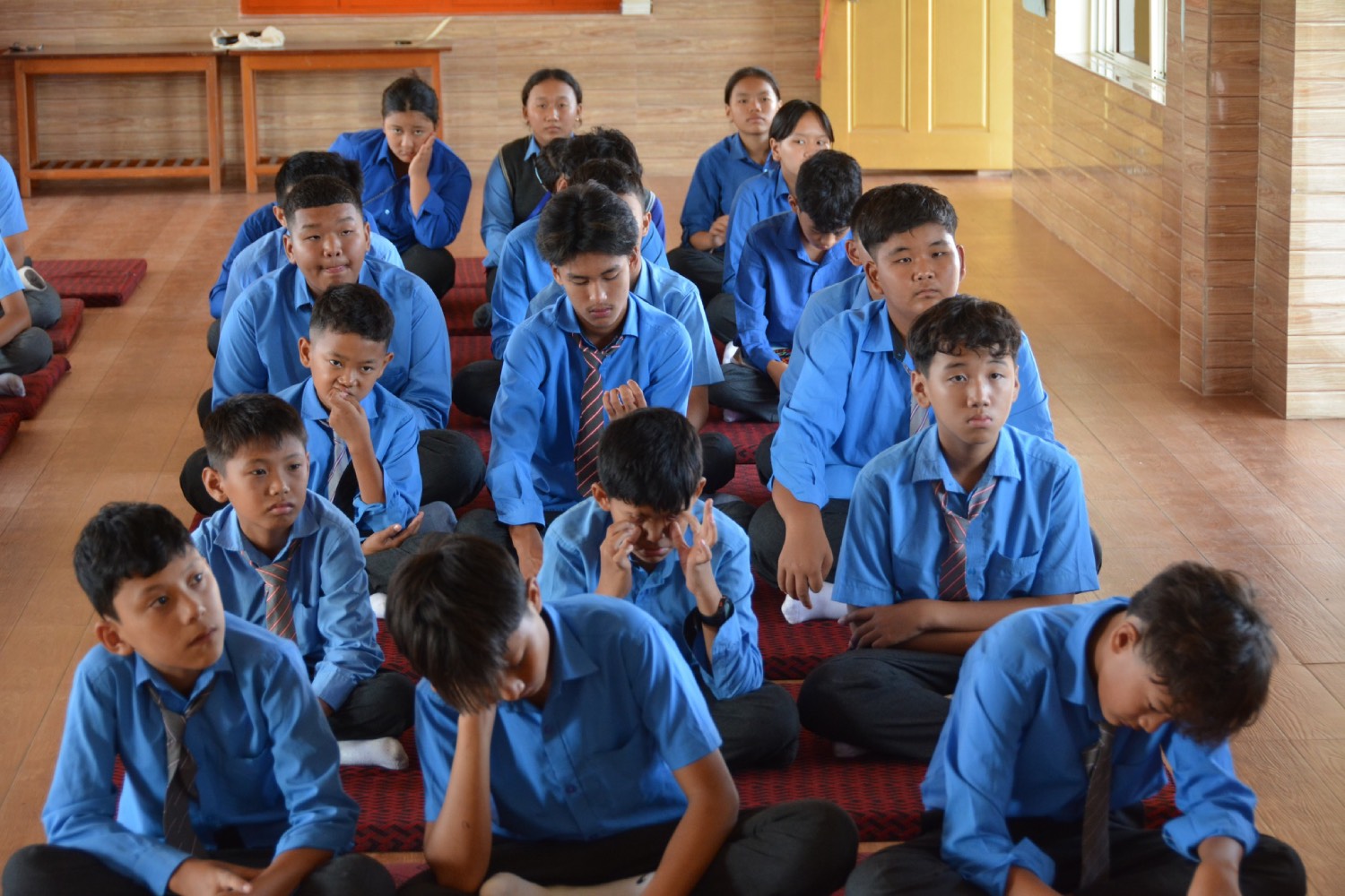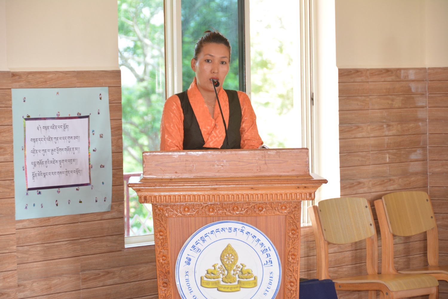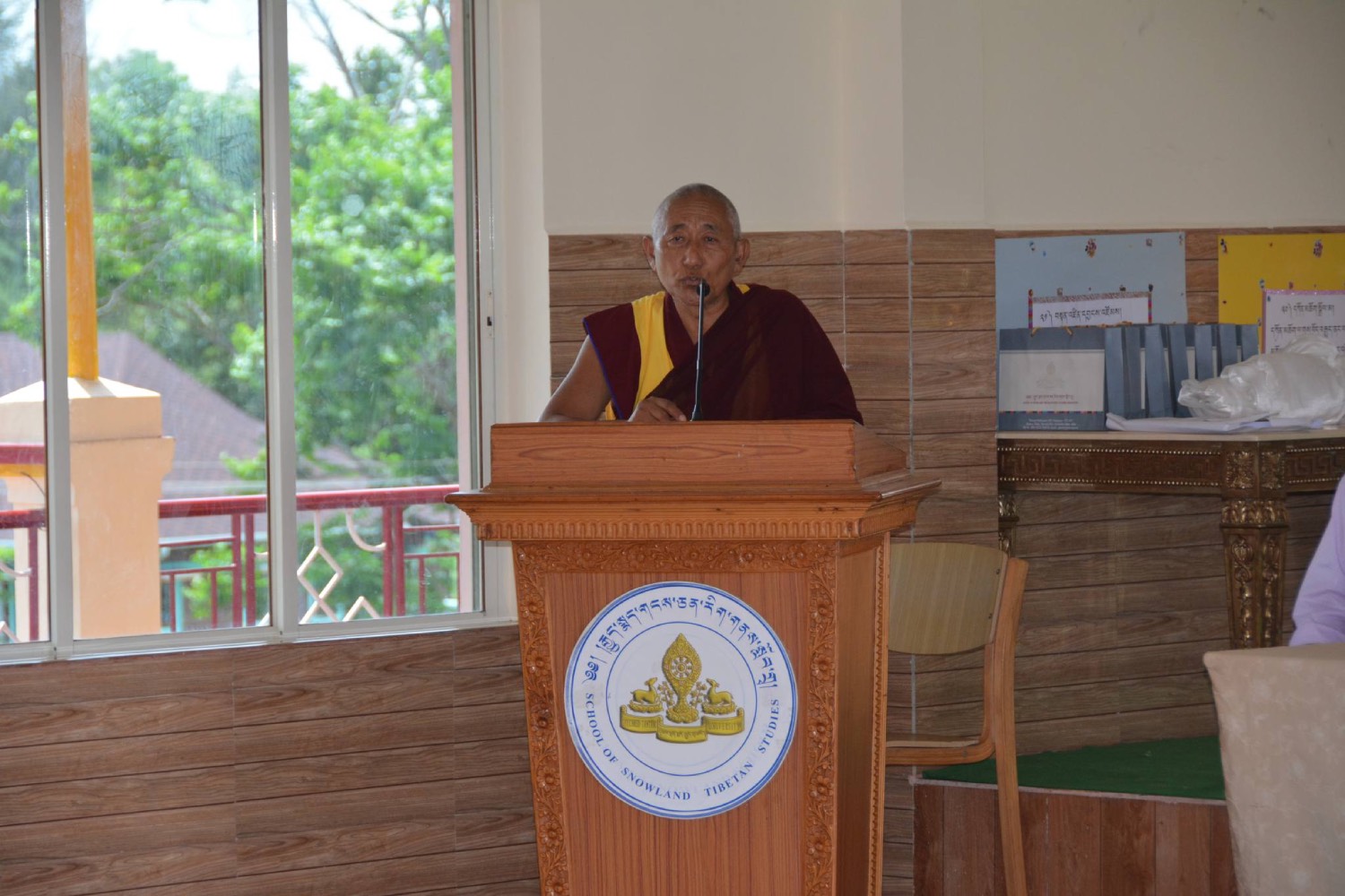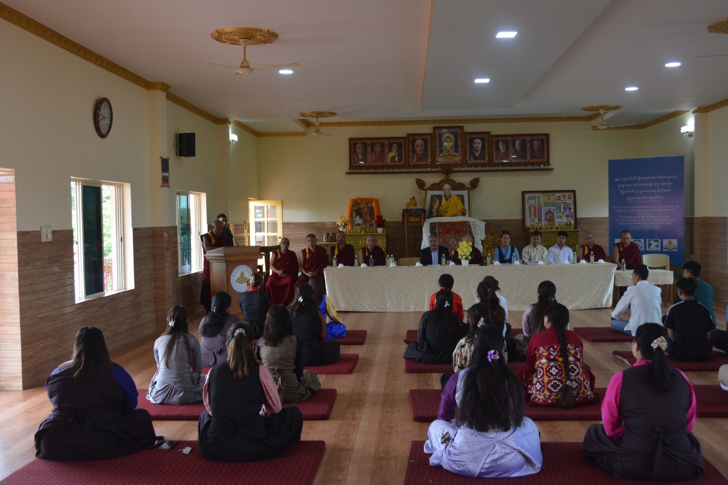 ༄༅། །དབུས་བོད་མིའི་སྒྲིག་འཛུགས་ཀྱི་ཆོས་རིག་ལས་ཁུངས་དང་གསང་ཆེན་རྒྱུད་སྨད་གངས་ཅན་རིག་གནས་སློབ་གྲྭ་ཟུང་འབྲེལ་གྱིས་གོ་སྒྲིག་གནང་སྟེ། འཕགས་ཡུལ་ལྷོ་ཕྱོགས་དཔལ་ལྡན་སྨད་རྒྱུད་གྲྭ་ཚང་གི་ཡན་ལག་གངས་ཅན་རིག་གནས་སློབ་གྲྭ་རུ། སྤྱི་ལོ་ ༢༠༢༤ ལོའི་ཟླ་ ༩ ཚེས་ ༥ ཉིན་བོད་ཀྱི་སྐད་ཡིག་དང་ནང་དོན་རིག་པའི་ཟླ་དྲུག་ཟབ་སྦྱོང་ཐེངས་བཅུ་གཅིག་པ་ལ་བཅར་པའི་སློབ་ཕྲུག་རྣམས་ཀྱིས་དགེ་རྒན་ཉིན་མོ་སྲུང་བརྩི་གནང་སོང། རྒྱུད་སྨད་དཔེ་མཛོད་ཁང་དྲ་ངོས་རྩོམ་སྒྲིག་པས་ ༢༠༢༤།༠༩།༠༥།ལ།