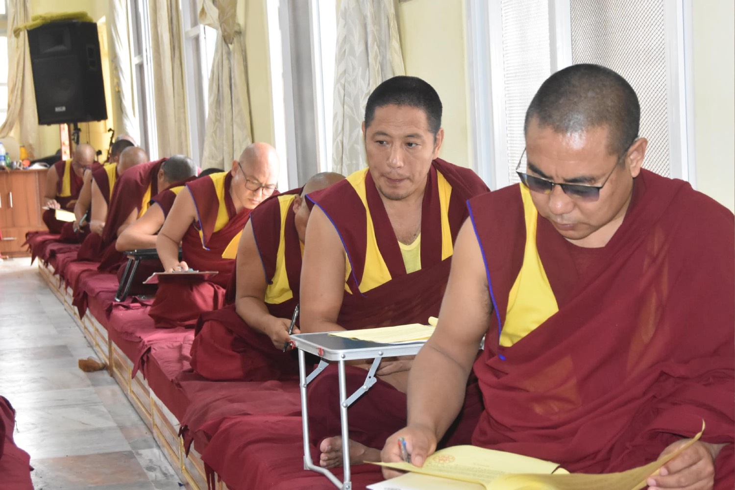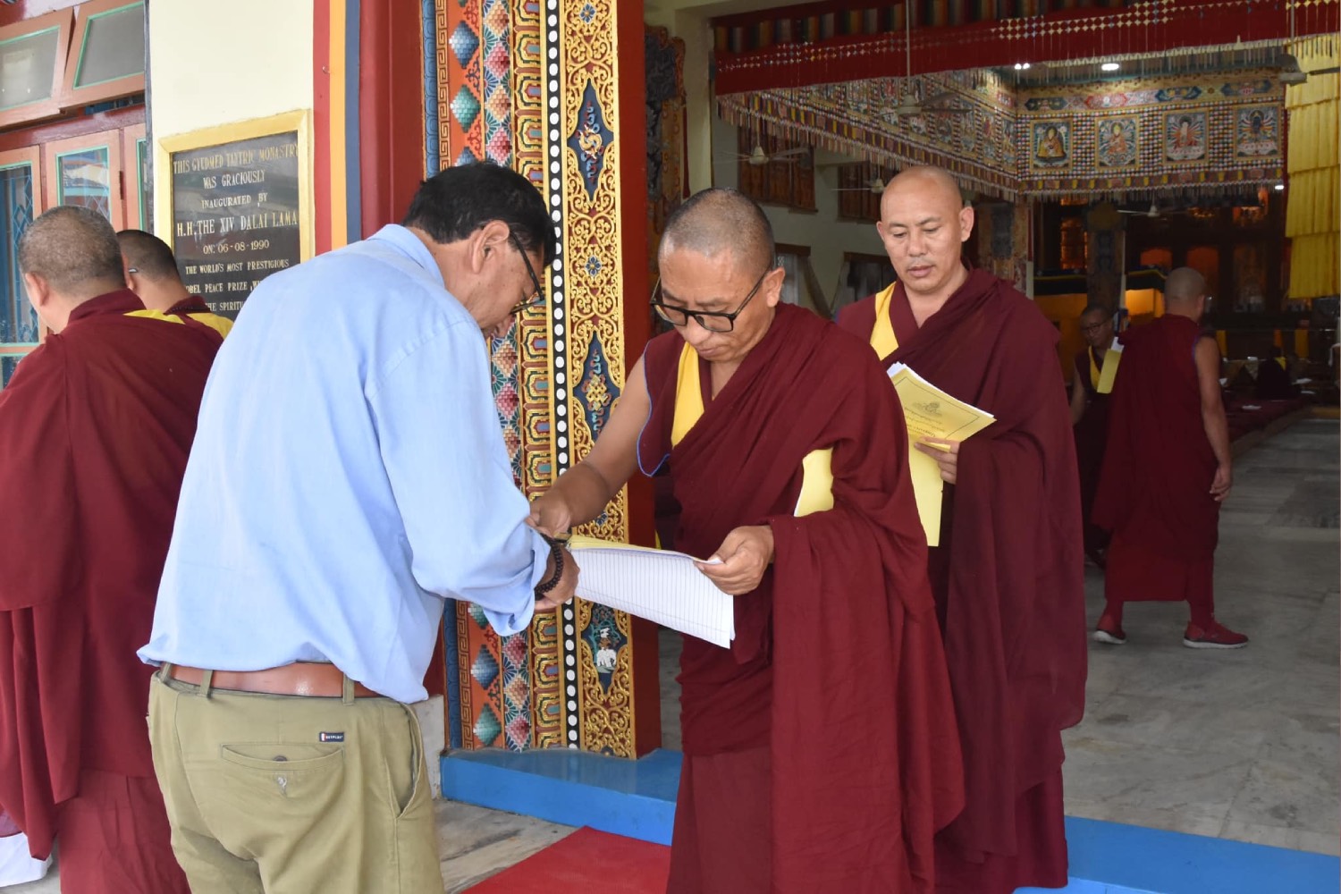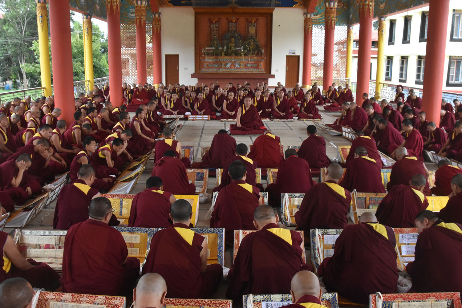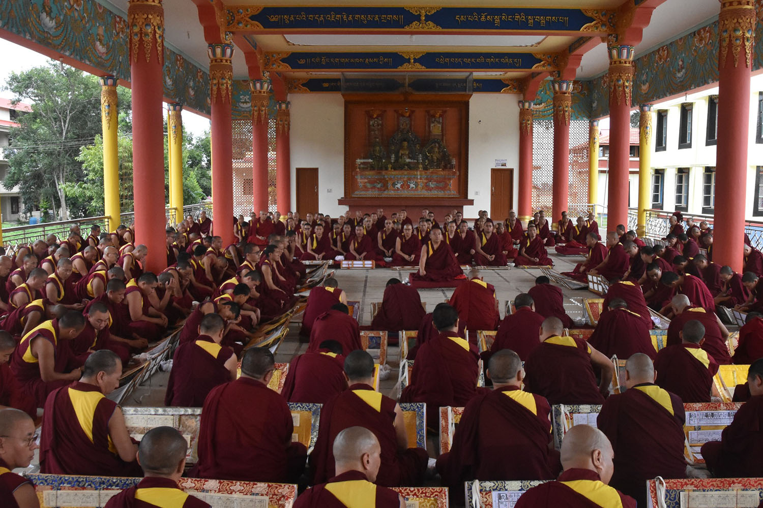 སྤྱིར་བོད་དུ་རྒྱུད་གྲྭར་སྔགས་ཕྱོགས་ལ་ཐོས་བསམ་སློབ་གཉེར་ལས། མདོ་ཕྱོགས་གྱི་གཞུང་ཆེན་ལ་གདན་ས་ཁག་ནང་བཞིན་སློབ་གཉེར་གནང་སྲོལ་མེད་ན་ཡང་། ༧ བླ་མ་སྤྱན་རས་གཟིགས་ཀྱིས་བཀའ་དགོངས་ལམ་སྟོན་ལྟར། ༡༩༨༡ ལོ་ནས་འདི་ག་རྒྱུད་སྨད་གྲྭ་ཚང་དུའང་སྔོན་སྲོལ་རྒྱུད་འཛིན་གྱི་སྟེང་མཚན་ཉིད་ཀྱི་གཞུང་ཆེན་བཀའ་པོད་ལྔ་ལ་གདན་ས་ཁག་ལྟར་སློབ་གཉེར་གྱི་ལམ་སྲོལ་གསར་འཛུགས་གནང་། ༢༠༠༩།༠༤།༡༡།ཉིན་གྱི་ཆོས་རྭ།