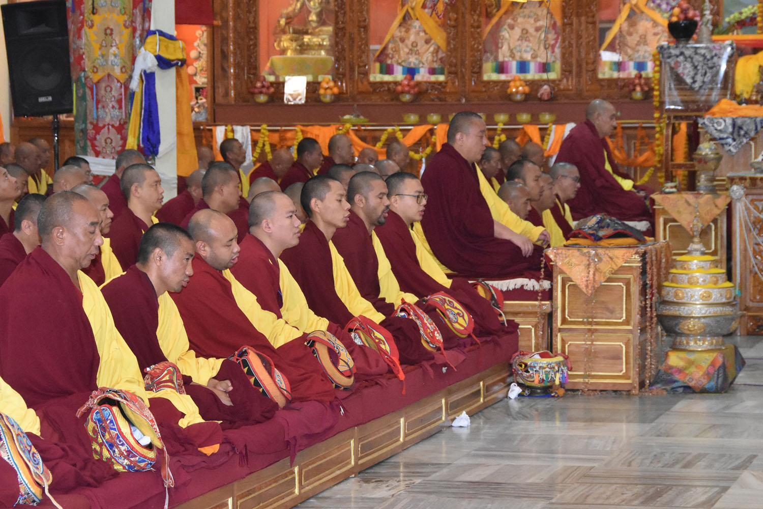 གསང་ཆེན་དཔལ་ལྡན་སྨད་རྒྱུད་པའི་བཞེས་རྒྱུན་ཕྱག་ལེན་ཆོས་ཕྱོགས་ཀྱི་རིམ་པ་སྣེ་མང་ལས་དབྱར་ཆོས་བྱེད་སྒོ་གནས་མཆོག་ཕྱི་མིག་ལུང་གི་ཆོས་ཐོག་སྐབས་ལས་སྣེ་འབྲེལ་ཡོད་རྣམ་པས་དམ་ཅན་སྐུ་མཁར་གྱི་མཆོད་འགྲན་དང་། བསྐང་འཕྲིན་བསྟོད་སྐུལ་མཛད་རྗེས་སྔར་སྲོལ་དབྱངས་ར་ཆེན་མོ་ཉིན་ལྔ་དབུ་འཛུགས་ཞུས། རྒྱུད་སྨད་དཔེ་མཛོད་ཁང་དྲ་ངོས་རྩོམ་སྒྲིག་པས་ ༢༠༢༤།༡༠།༠༩།ལ།
