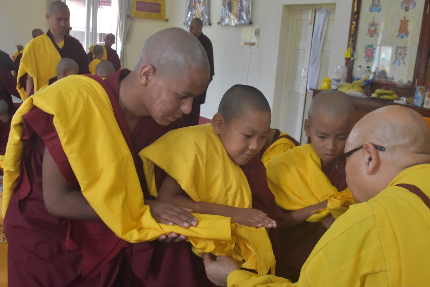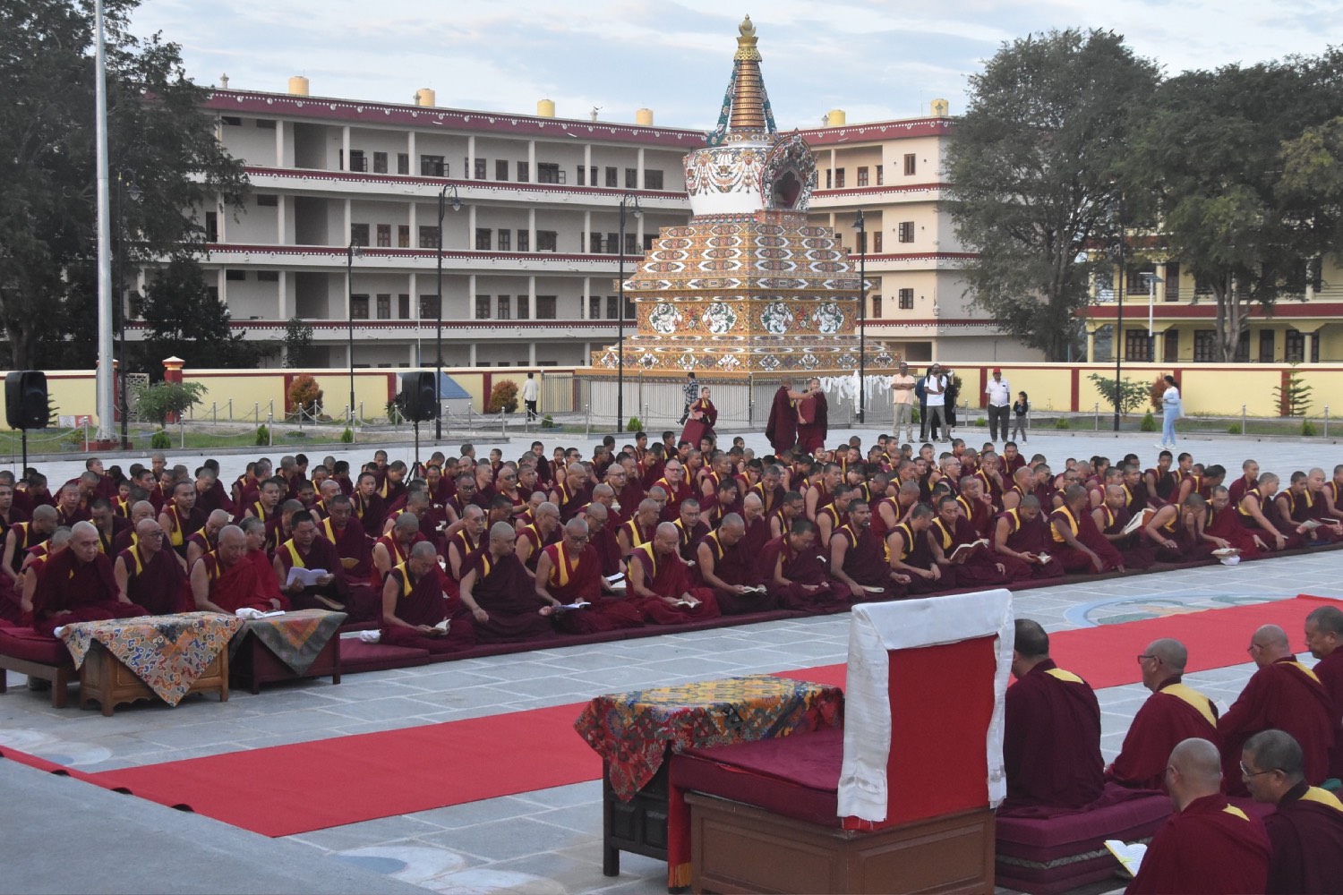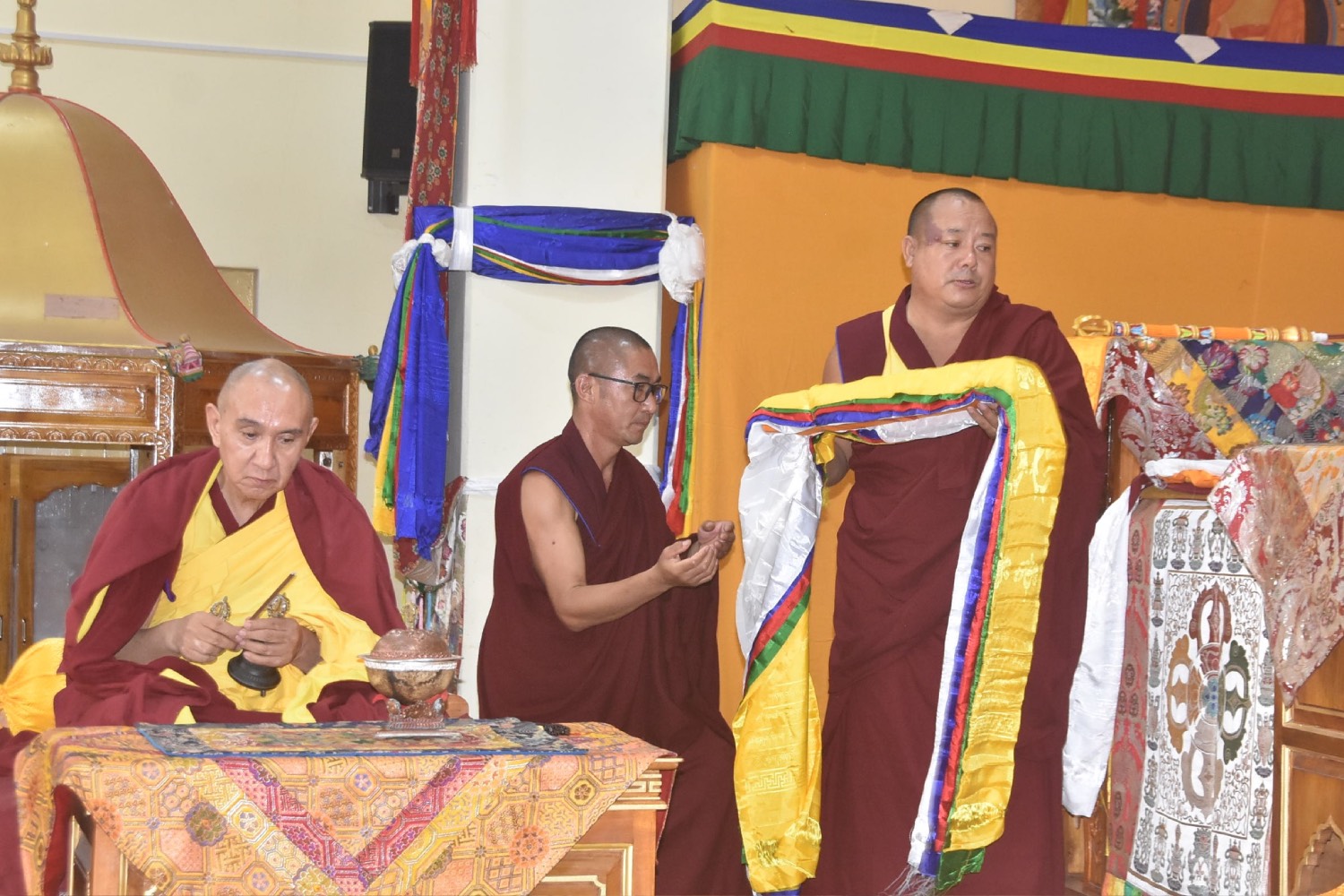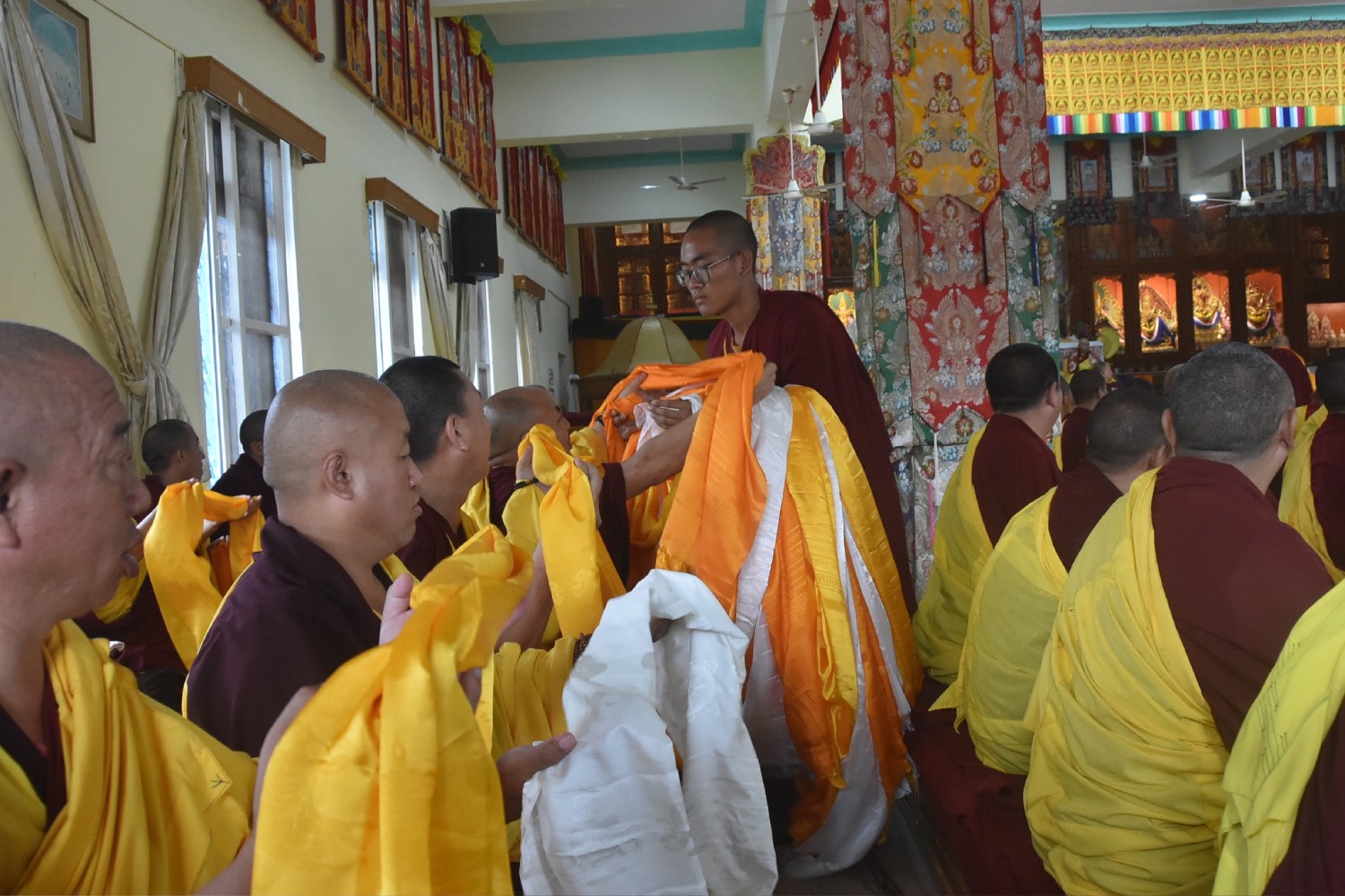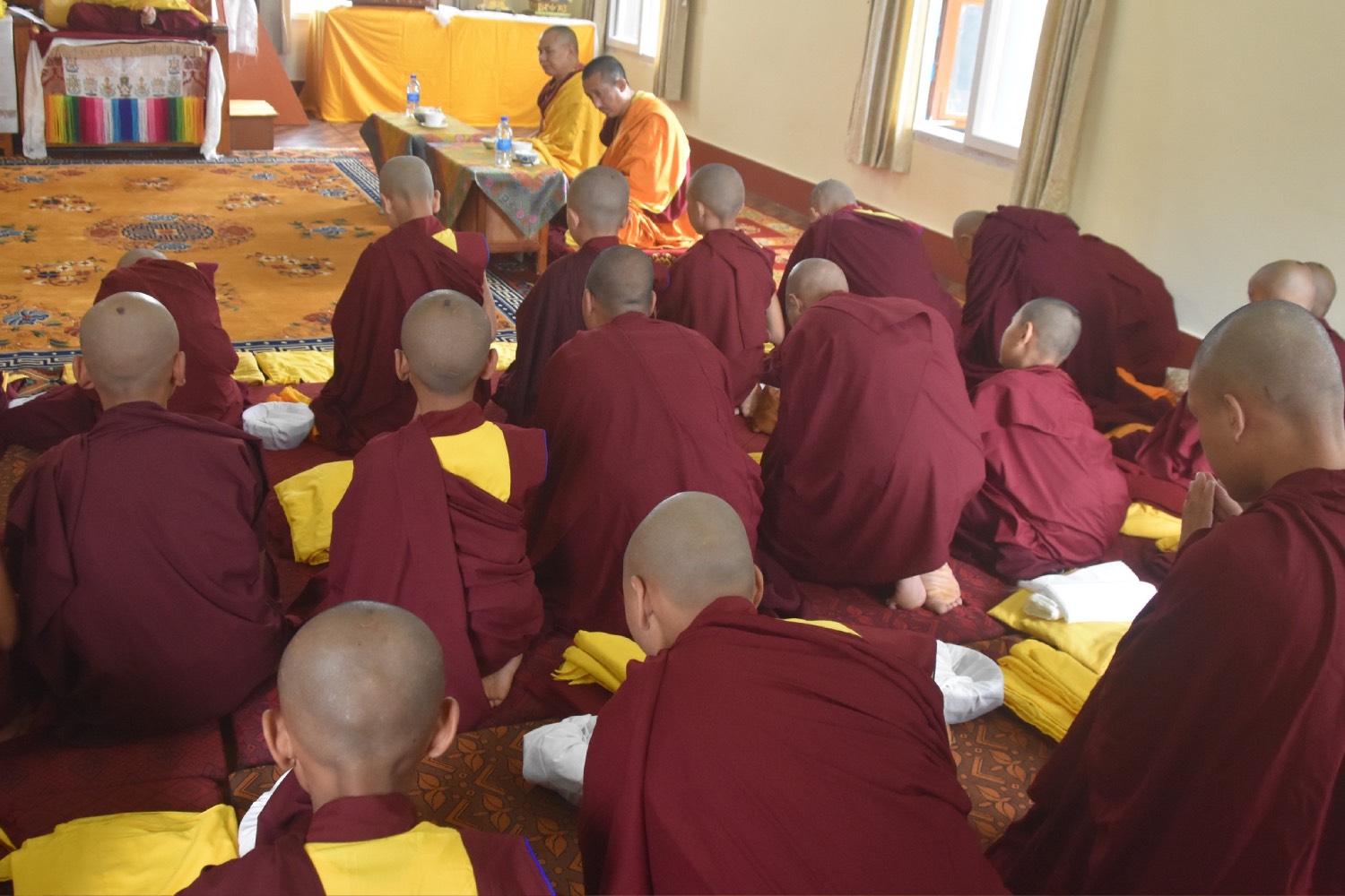 ༄༅།། དེ་རིང་སྤྱི་ཟླ་ ༩ པའི་ཚེས་བཅུ་ལྷག་དཀར་གཟའ་ཚེས་དགེ་བའི་ཉིན་མང་ཐོས་འདུལ་བ་འཛིན་པ་གྲྭ་ཚང་འདི་ཉིད་ཀྱི་མཁན་རིན་པོ་ཆེ་རྗེ་བཙུན་ངག་དབང་སངས་རྒྱས་མཆོག་ནས་གྲྭ་ཚང་གི་གསར་ཞུགས་གྲྭ་རྒྱུན་གྲངས་སུམ་ཅུ་ཙམ་ལ་དགེ་ཚུལ་གྱི་བསླབ་སྡོམ་སྩལ་གནང་ཞིང་། འདུས་མང་ཚོགས་ཡོངས་ནས་སྔོན་བྱོན་སྟོན་པའི་རྣམ་ཐར་རྗེས་འཛིན་དུ་དགྲ་བཅོམ་གསོལ་སྙོམ་ལ་ཕེབས་པའི་ཚུལ་གྱིས་ལྷུང་བཟེད་མཆོད་པའི་ཉམས་བཞེས་ལྷུར་ལེན་མཛད་དོ། །རྒྱུད་སྨད་དཔེ་མཛོད་ཁང་དྲ་ངོས་རྩོམ་སྒྲིག་པས་༢༠༢༥།༠༩།༡༠ ལ།