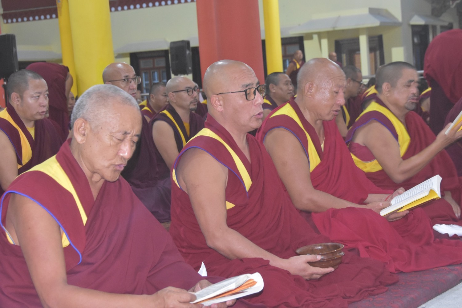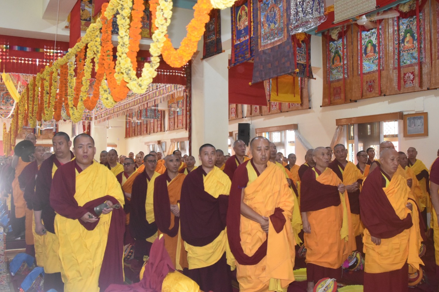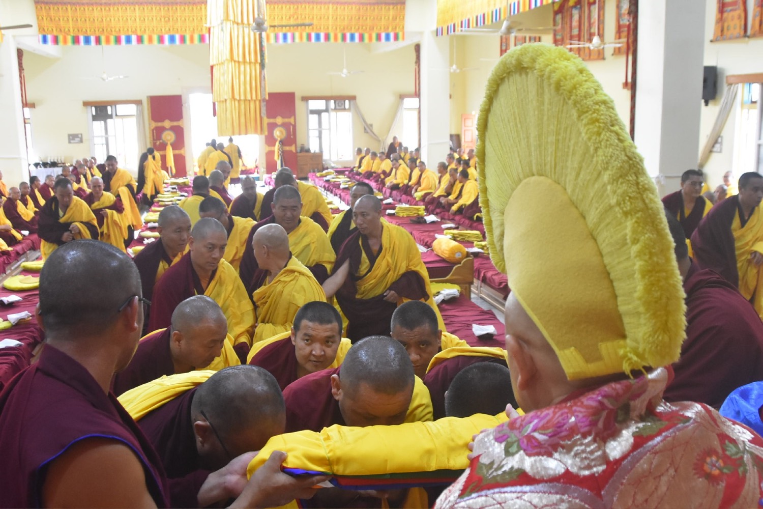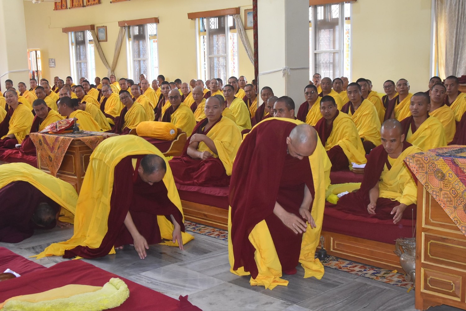 ༄༅།། དེ་རིང་སྤྱི་ཟླ་ ༩ པའི་ཚེས་བཅུ་ལྷག་དཀར་གཟའ་ཚེས་དགེ་བའི་ཉིན་མང་ཐོས་འདུལ་བ་འཛིན་པ་གྲྭ་ཚང་འདི་ཉིད་ཀྱི་མཁན་རིན་པོ་ཆེ་རྗེ་བཙུན་ངག་དབང་སངས་རྒྱས་མཆོག་ནས་གྲྭ་ཚང་གི་གསར་ཞུགས་གྲྭ་རྒྱུན་གྲངས་སུམ་ཅུ་ཙམ་ལ་དགེ་ཚུལ་གྱི་བསླབ་སྡོམ་སྩལ་གནང་ཞིང་། འདུས་མང་ཚོགས་ཡོངས་ནས་སྔོན་བྱོན་སྟོན་པའི་རྣམ་ཐར་རྗེས་འཛིན་དུ་དགྲ་བཅོམ་གསོལ་སྙོམ་ལ་ཕེབས་པའི་ཚུལ་གྱིས་ལྷུང་བཟེད་མཆོད་པའི་ཉམས་བཞེས་ལྷུར་ལེན་མཛད་དོ། །རྒྱུད་སྨད་དཔེ་མཛོད་ཁང་དྲ་ངོས་རྩོམ་སྒྲིག་པས་༢༠༢༥།༠༩།༡༠ ལ།