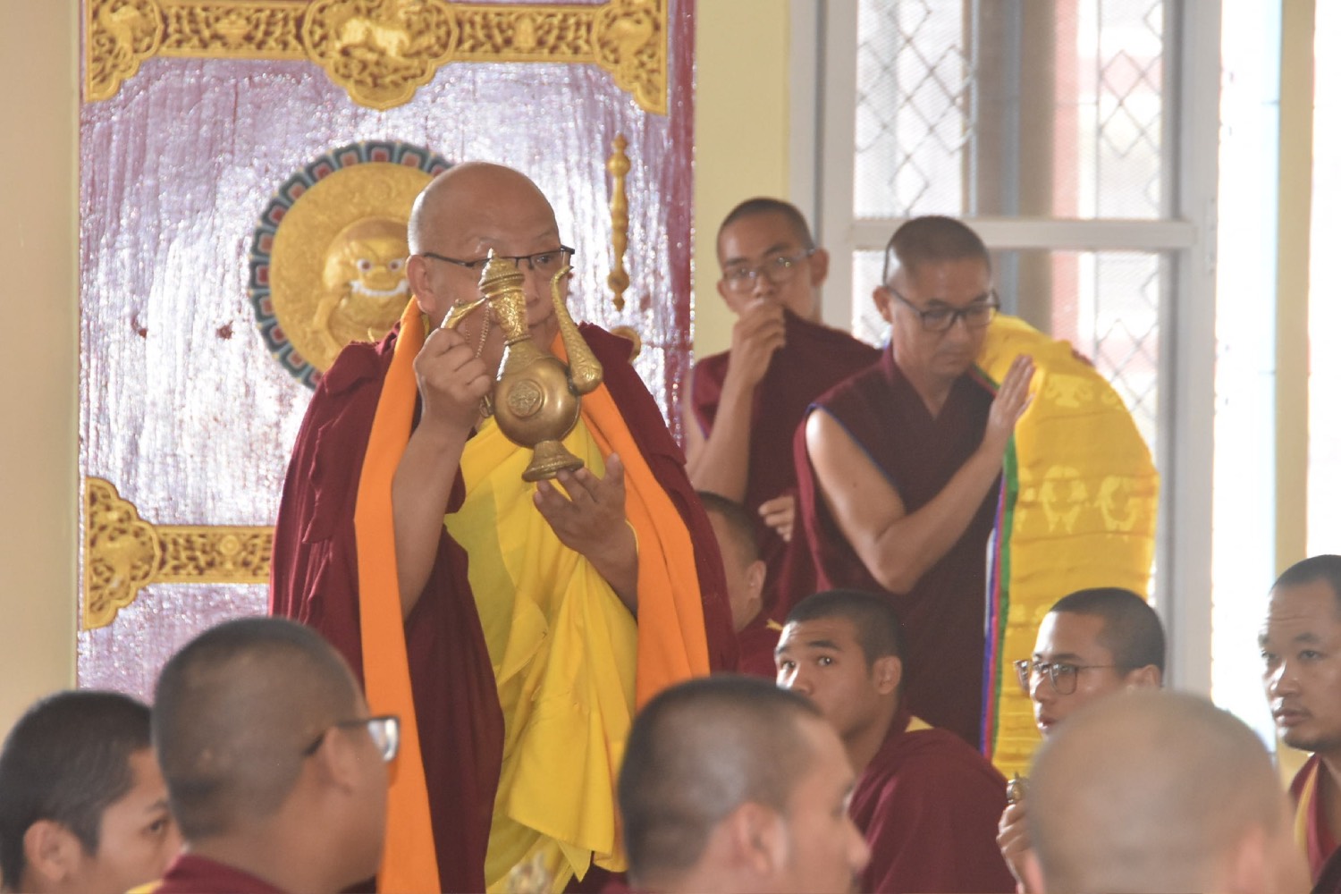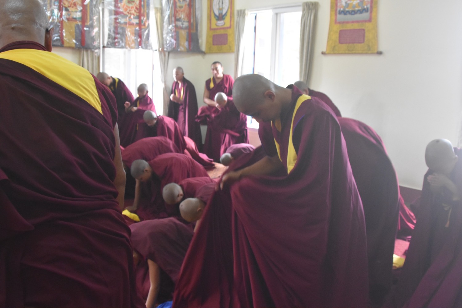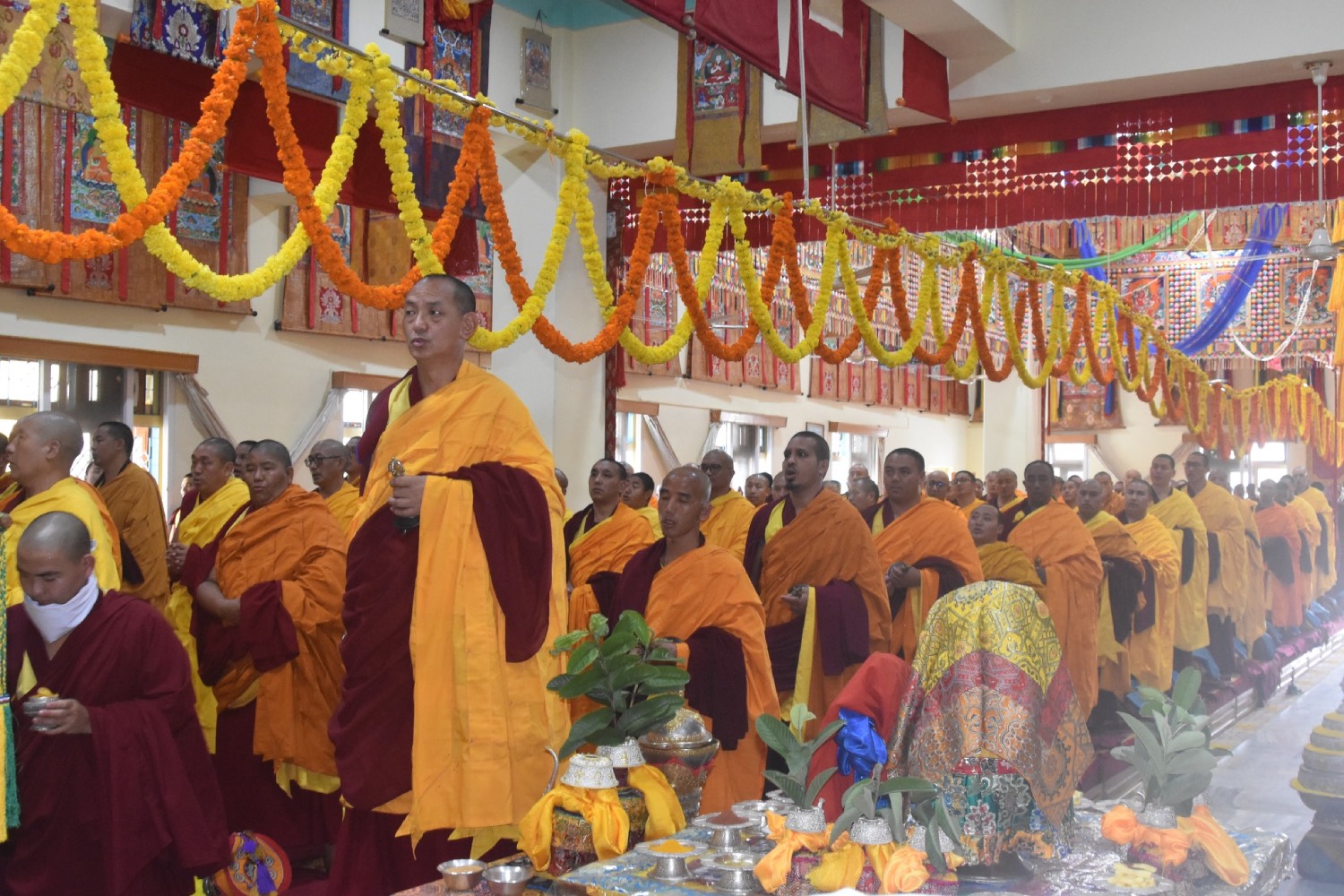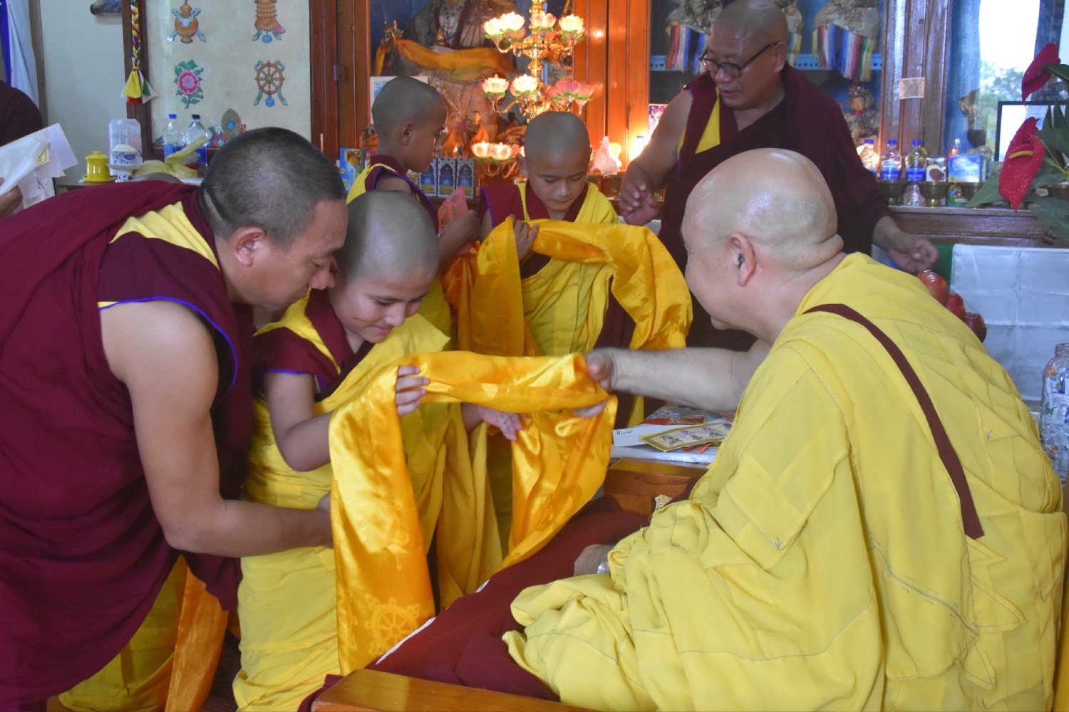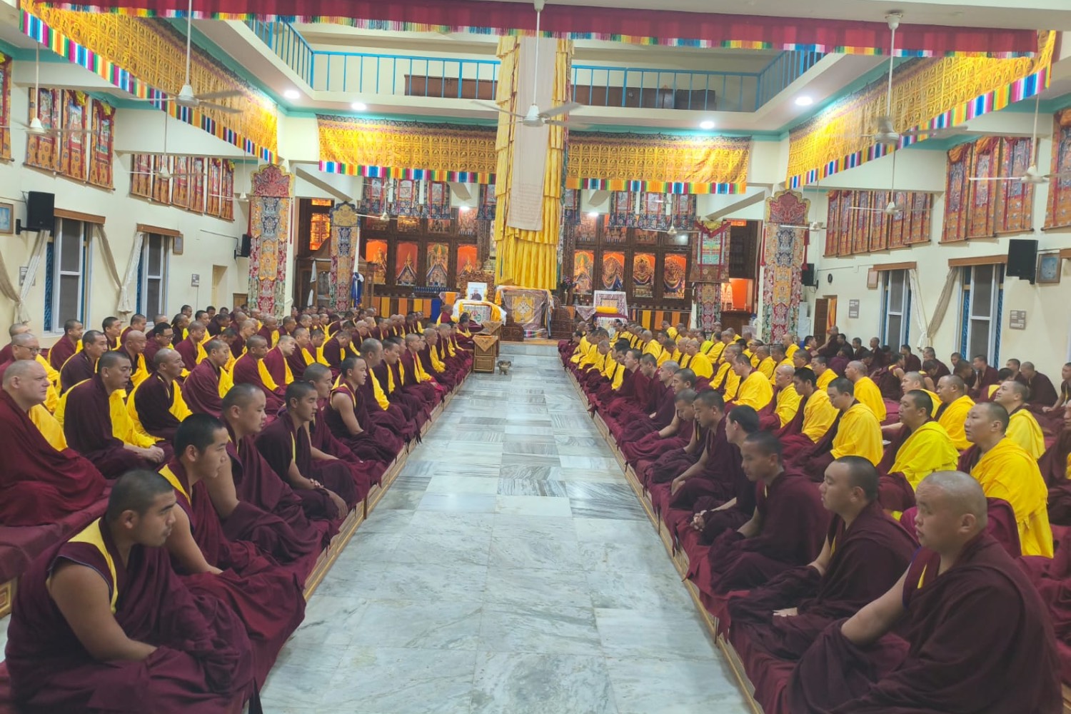 ༄༅།། དེ་རིང་སྤྱི་ཟླ་ ༩ པའི་ཚེས་བཅུ་ལྷག་དཀར་གཟའ་ཚེས་དགེ་བའི་ཉིན་མང་ཐོས་འདུལ་བ་འཛིན་པ་གྲྭ་ཚང་འདི་ཉིད་ཀྱི་མཁན་རིན་པོ་ཆེ་རྗེ་བཙུན་ངག་དབང་སངས་རྒྱས་མཆོག་ནས་གྲྭ་ཚང་གི་གསར་ཞུགས་གྲྭ་རྒྱུན་གྲངས་སུམ་ཅུ་ཙམ་ལ་དགེ་ཚུལ་གྱི་བསླབ་སྡོམ་སྩལ་གནང་ཞིང་། འདུས་མང་ཚོགས་ཡོངས་ནས་སྔོན་བྱོན་སྟོན་པའི་རྣམ་ཐར་རྗེས་འཛིན་དུ་དགྲ་བཅོམ་གསོལ་སྙོམ་ལ་ཕེབས་པའི་ཚུལ་གྱིས་ལྷུང་བཟེད་མཆོད་པའི་ཉམས་བཞེས་ལྷུར་ལེན་མཛད་དོ། །རྒྱུད་སྨད་དཔེ་མཛོད་ཁང་དྲ་ངོས་རྩོམ་སྒྲིག་པས་༢༠༢༥།༠༩།༡༠ ལ།
