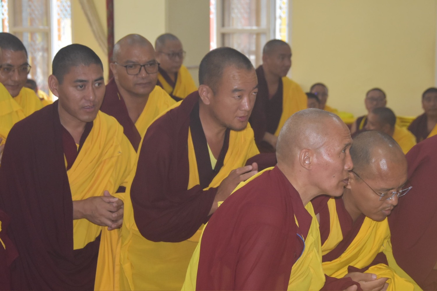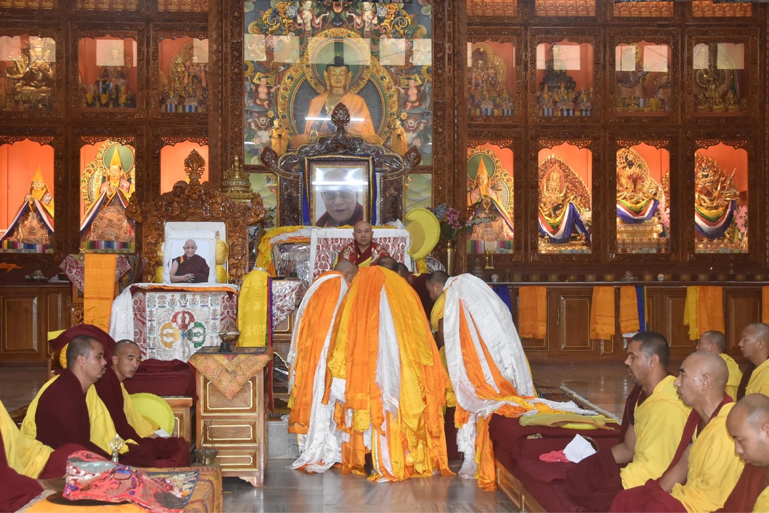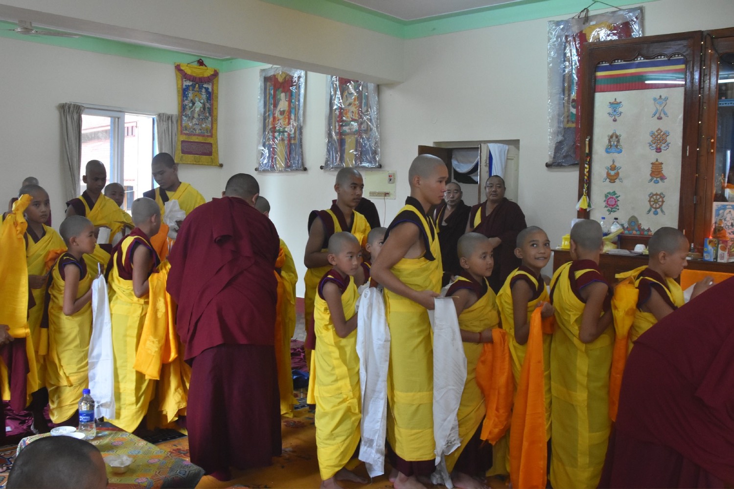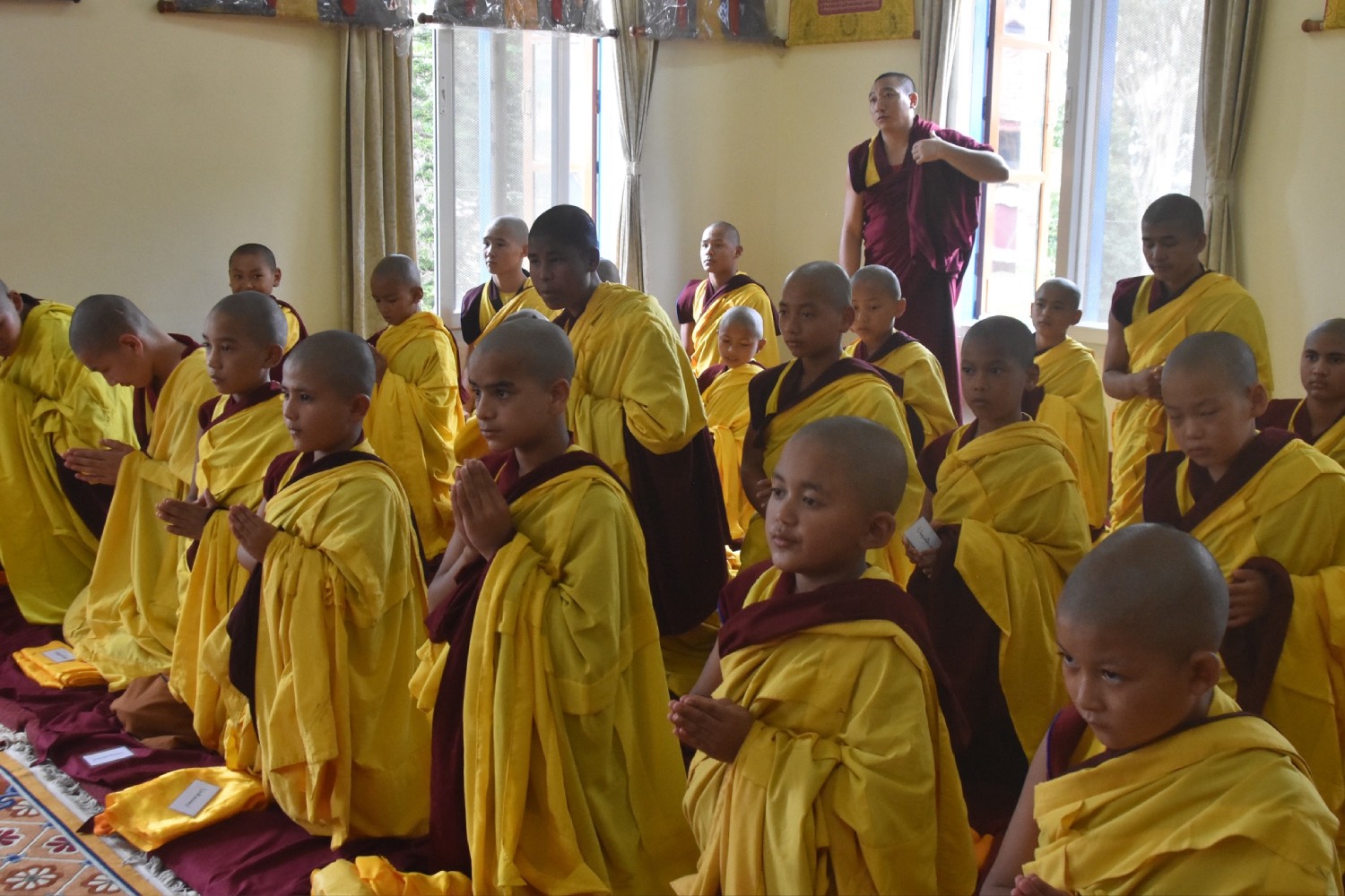 ༄༅།། དེ་རིང་སྤྱི་ཟླ་ ༩ པའི་ཚེས་བཅུ་ལྷག་དཀར་གཟའ་ཚེས་དགེ་བའི་ཉིན་མང་ཐོས་འདུལ་བ་འཛིན་པ་གྲྭ་ཚང་འདི་ཉིད་ཀྱི་མཁན་རིན་པོ་ཆེ་རྗེ་བཙུན་ངག་དབང་སངས་རྒྱས་མཆོག་ནས་གྲྭ་ཚང་གི་གསར་ཞུགས་གྲྭ་རྒྱུན་གྲངས་སུམ་ཅུ་ཙམ་ལ་དགེ་ཚུལ་གྱི་བསླབ་སྡོམ་སྩལ་གནང་ཞིང་། འདུས་མང་ཚོགས་ཡོངས་ནས་སྔོན་བྱོན་སྟོན་པའི་རྣམ་ཐར་རྗེས་འཛིན་དུ་དགྲ་བཅོམ་གསོལ་སྙོམ་ལ་ཕེབས་པའི་ཚུལ་གྱིས་ལྷུང་བཟེད་མཆོད་པའི་ཉམས་བཞེས་ལྷུར་ལེན་མཛད་དོ། །རྒྱུད་སྨད་དཔེ་མཛོད་ཁང་དྲ་ངོས་རྩོམ་སྒྲིག་པས་༢༠༢༥།༠༩།༡༠ ལ།