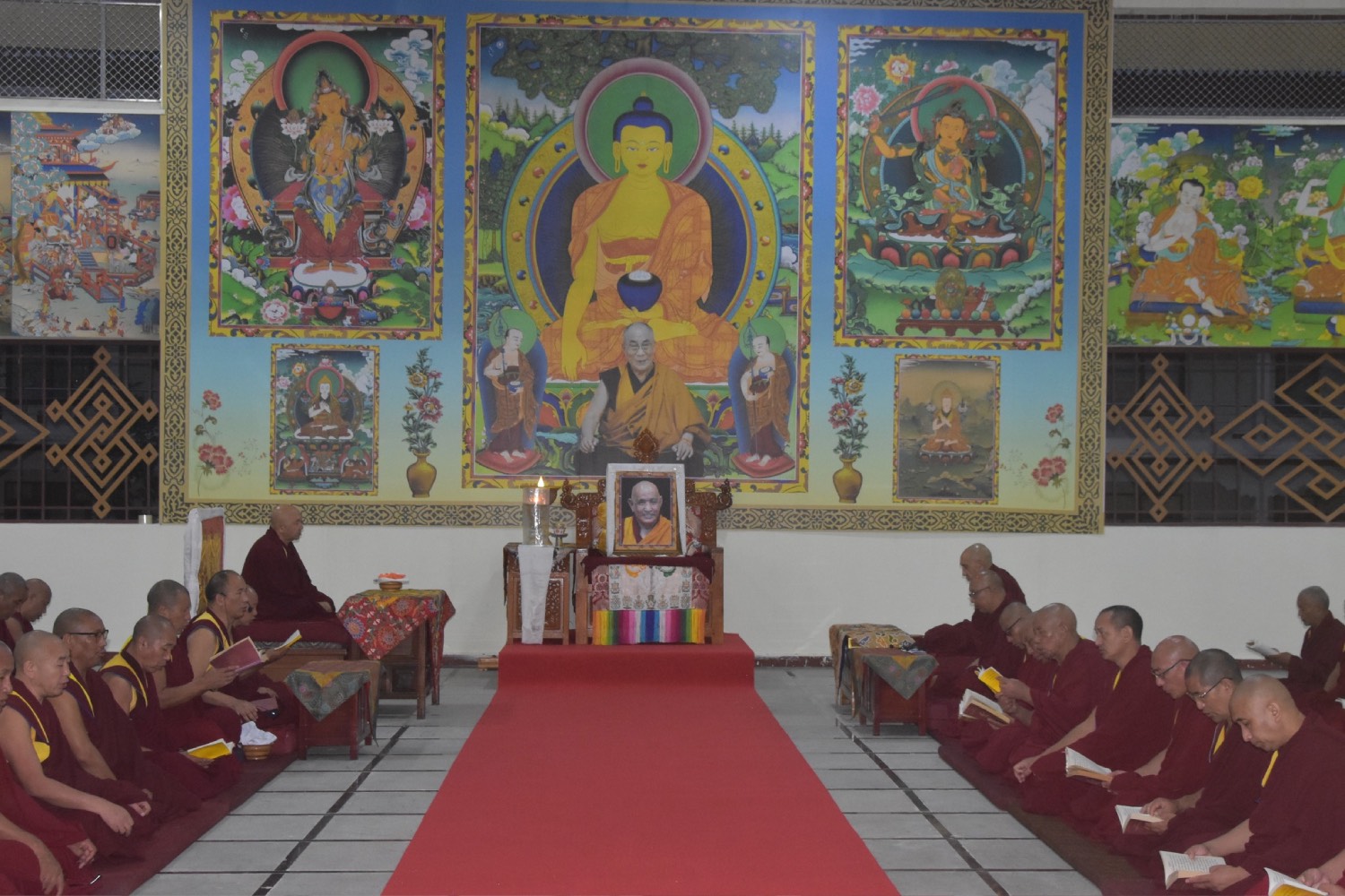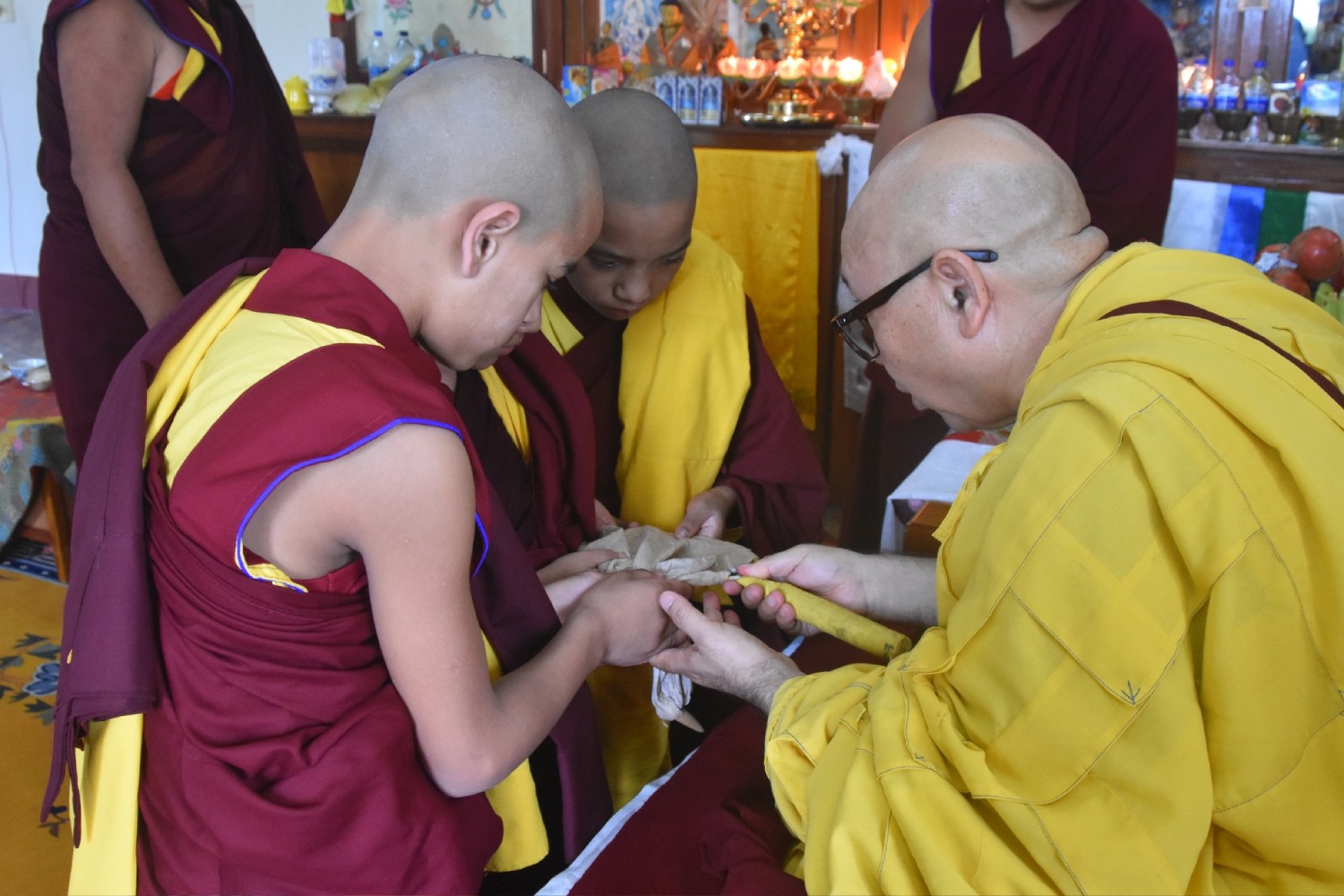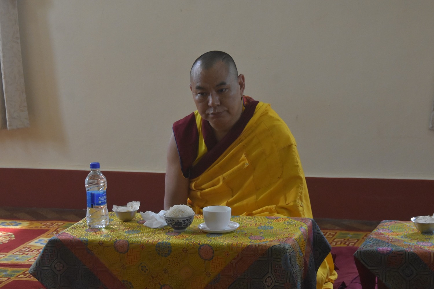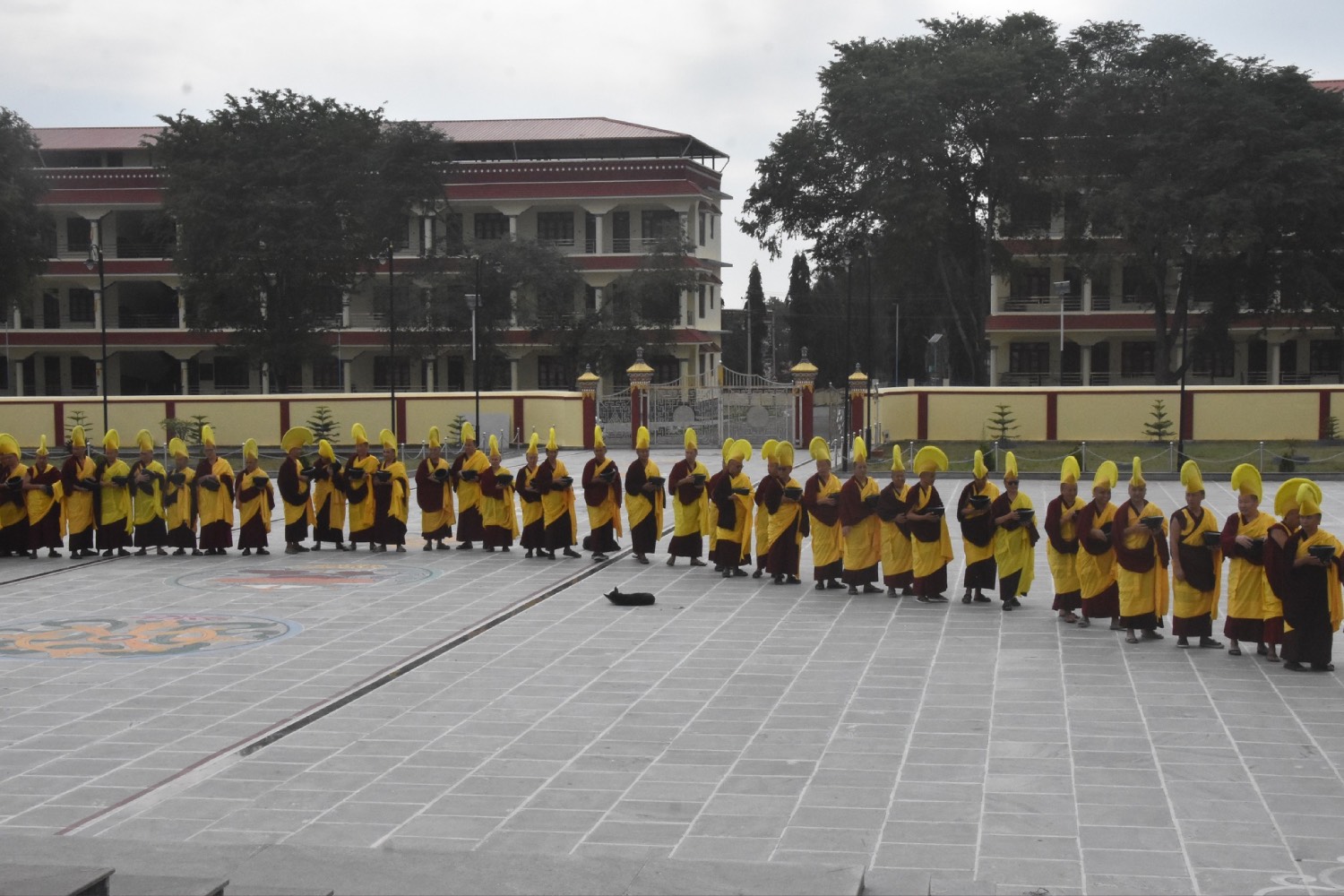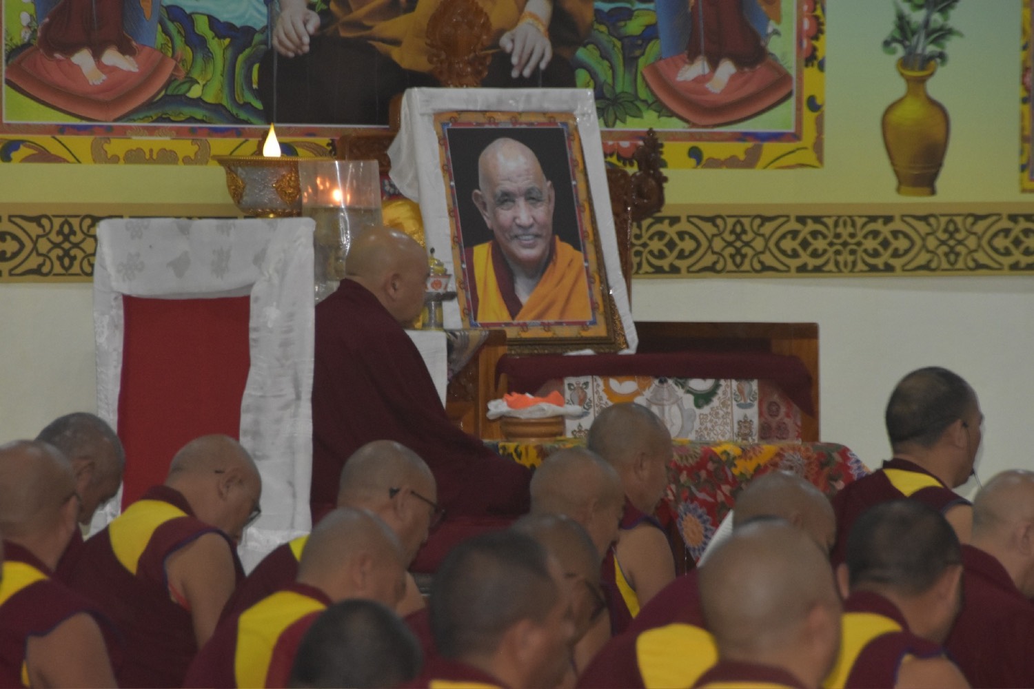 ༄༅།། དེ་རིང་སྤྱི་ཟླ་ ༩ པའི་ཚེས་བཅུ་ལྷག་དཀར་གཟའ་ཚེས་དགེ་བའི་ཉིན་མང་ཐོས་འདུལ་བ་འཛིན་པ་གྲྭ་ཚང་འདི་ཉིད་ཀྱི་མཁན་རིན་པོ་ཆེ་རྗེ་བཙུན་ངག་དབང་སངས་རྒྱས་མཆོག་ནས་གྲྭ་ཚང་གི་གསར་ཞུགས་གྲྭ་རྒྱུན་གྲངས་སུམ་ཅུ་ཙམ་ལ་དགེ་ཚུལ་གྱི་བསླབ་སྡོམ་སྩལ་གནང་ཞིང་། འདུས་མང་ཚོགས་ཡོངས་ནས་སྔོན་བྱོན་སྟོན་པའི་རྣམ་ཐར་རྗེས་འཛིན་དུ་དགྲ་བཅོམ་གསོལ་སྙོམ་ལ་ཕེབས་པའི་ཚུལ་གྱིས་ལྷུང་བཟེད་མཆོད་པའི་ཉམས་བཞེས་ལྷུར་ལེན་མཛད་དོ། །རྒྱུད་སྨད་དཔེ་མཛོད་ཁང་དྲ་ངོས་རྩོམ་སྒྲིག་པས་༢༠༢༥།༠༩།༡༠ ལ།
