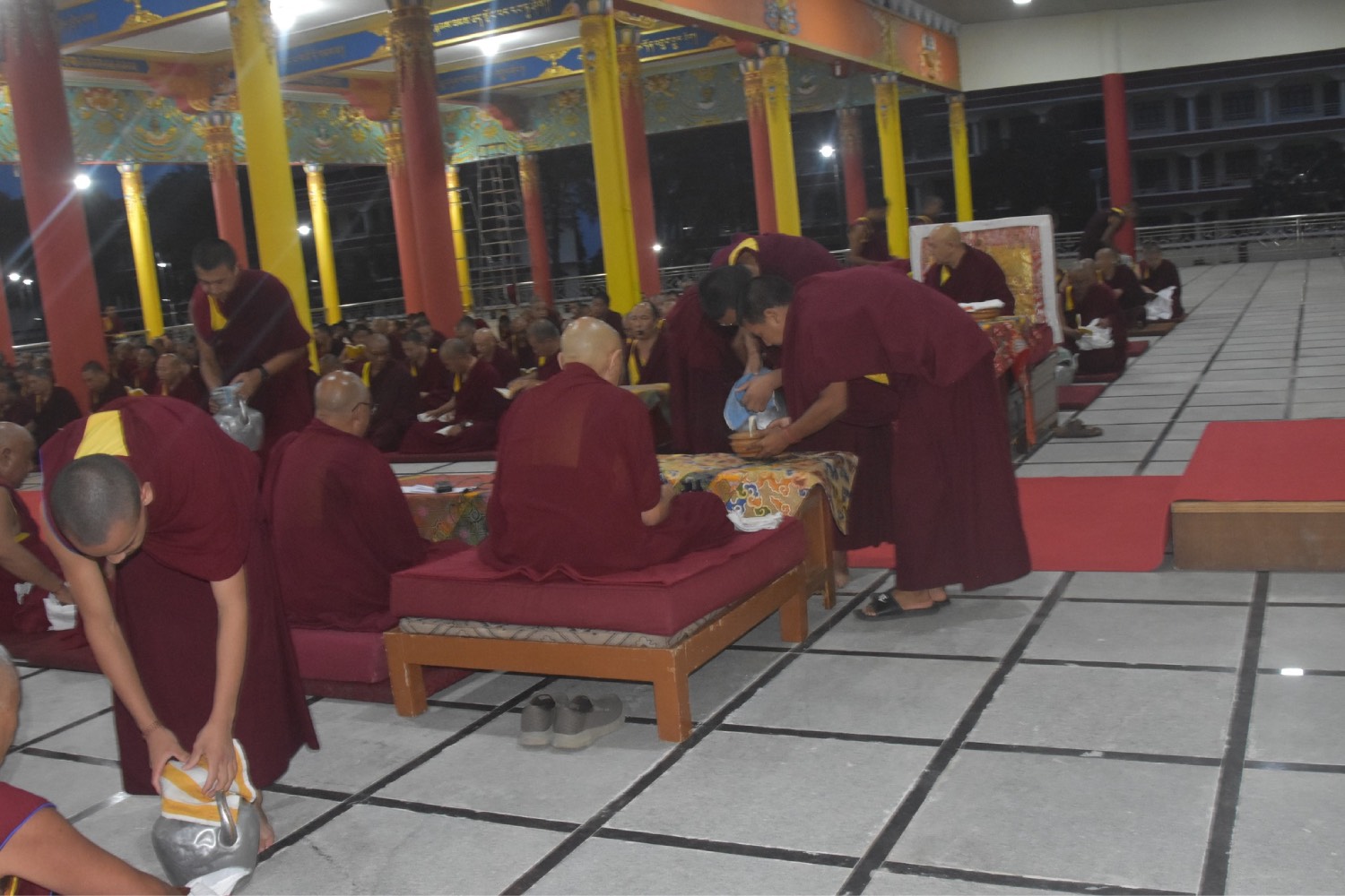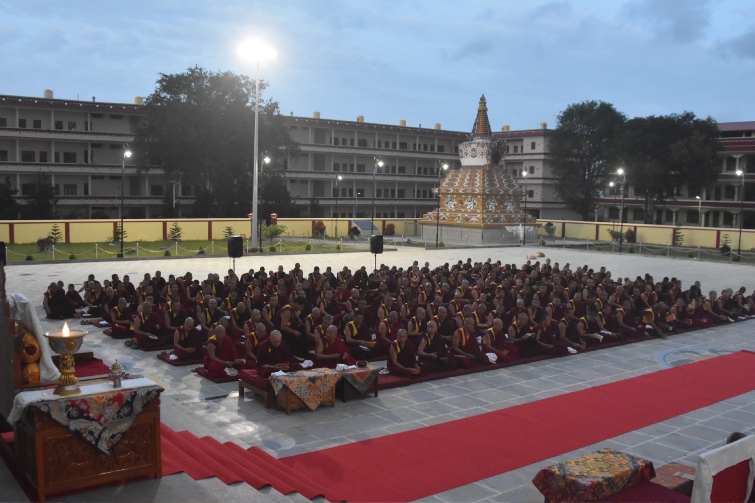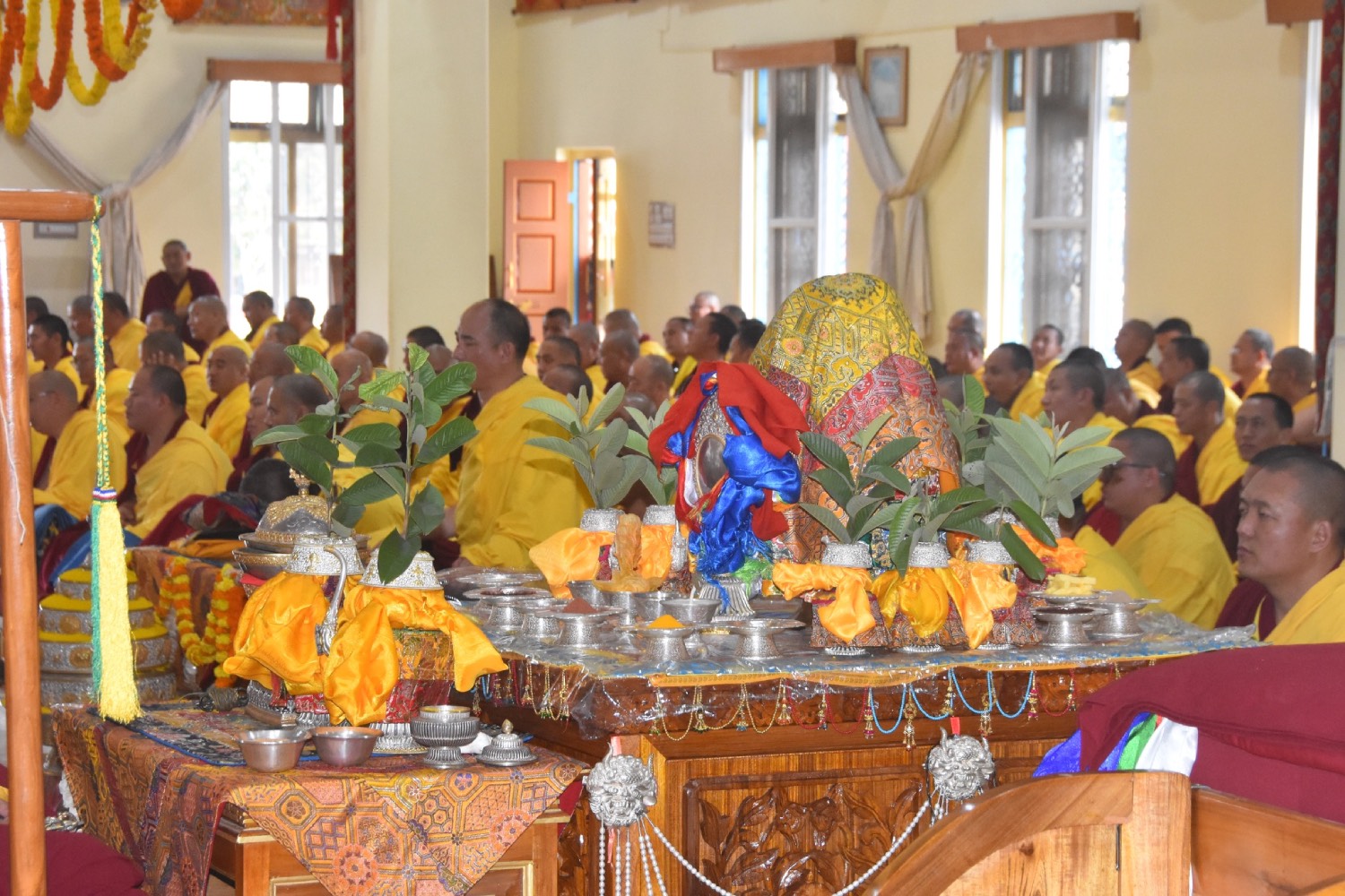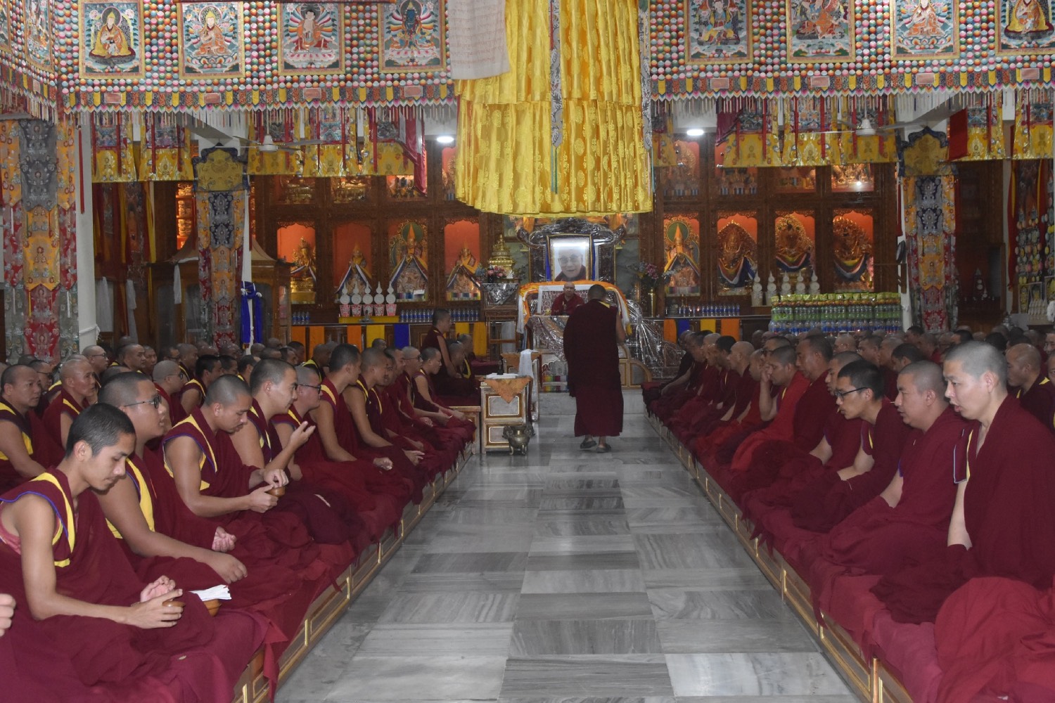 ༄༅།། དེ་རིང་སྤྱི་ཟླ་ ༩ པའི་ཚེས་བཅུ་ལྷག་དཀར་གཟའ་ཚེས་དགེ་བའི་ཉིན་མང་ཐོས་འདུལ་བ་འཛིན་པ་གྲྭ་ཚང་འདི་ཉིད་ཀྱི་མཁན་རིན་པོ་ཆེ་རྗེ་བཙུན་ངག་དབང་སངས་རྒྱས་མཆོག་ནས་གྲྭ་ཚང་གི་གསར་ཞུགས་གྲྭ་རྒྱུན་གྲངས་སུམ་ཅུ་ཙམ་ལ་དགེ་ཚུལ་གྱི་བསླབ་སྡོམ་སྩལ་གནང་ཞིང་། འདུས་མང་ཚོགས་ཡོངས་ནས་སྔོན་བྱོན་སྟོན་པའི་རྣམ་ཐར་རྗེས་འཛིན་དུ་དགྲ་བཅོམ་གསོལ་སྙོམ་ལ་ཕེབས་པའི་ཚུལ་གྱིས་ལྷུང་བཟེད་མཆོད་པའི་ཉམས་བཞེས་ལྷུར་ལེན་མཛད་དོ། །རྒྱུད་སྨད་དཔེ་མཛོད་ཁང་དྲ་ངོས་རྩོམ་སྒྲིག་པས་༢༠༢༥།༠༩།༡༠ ལ།