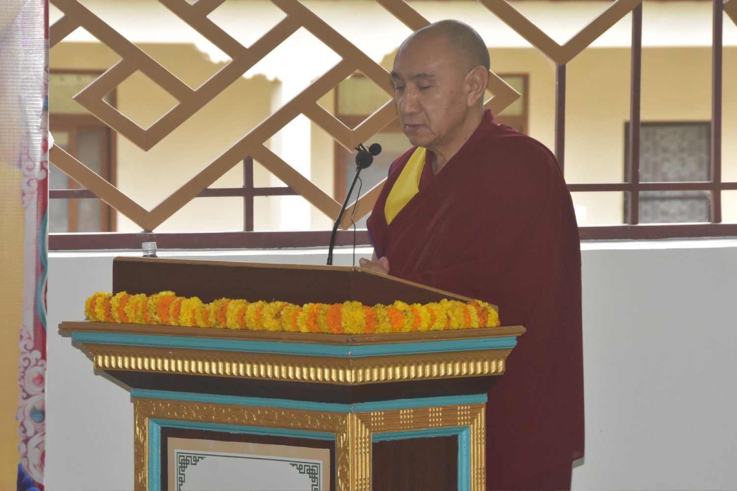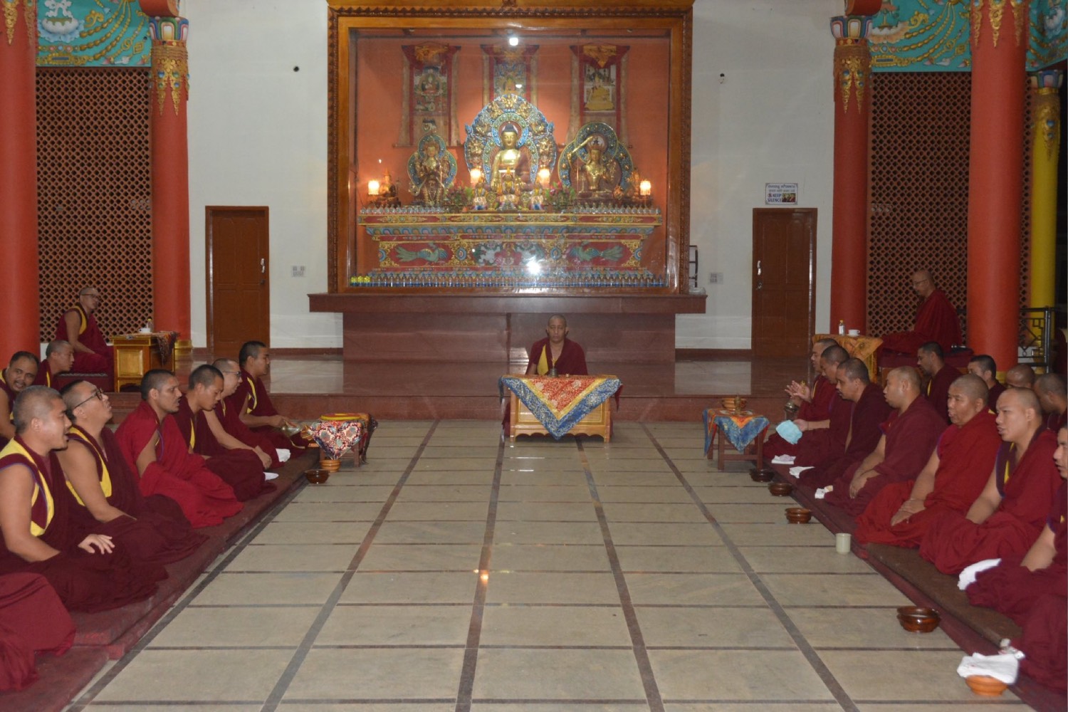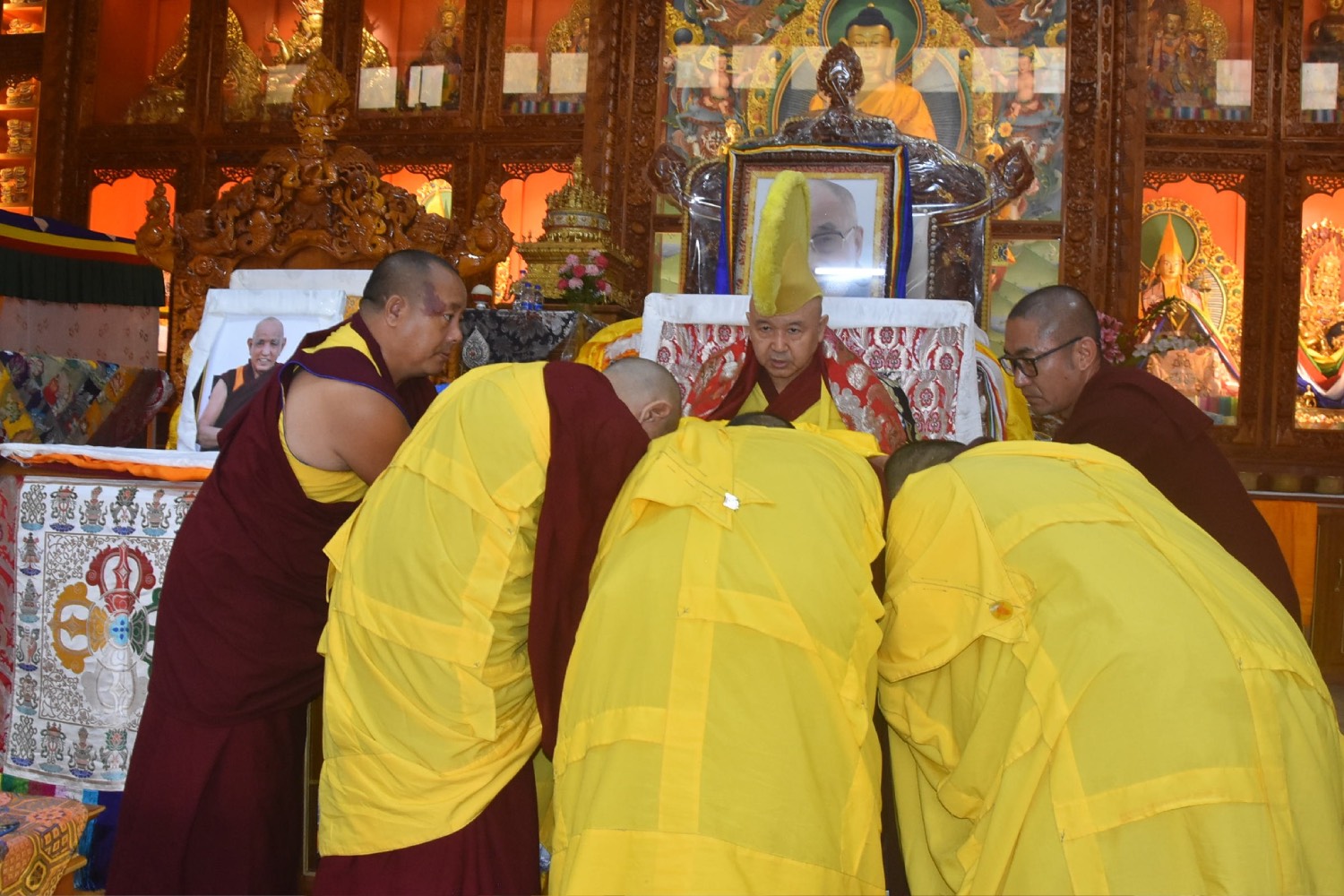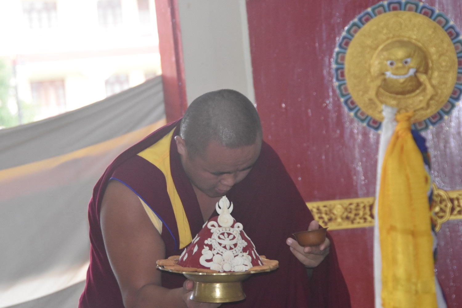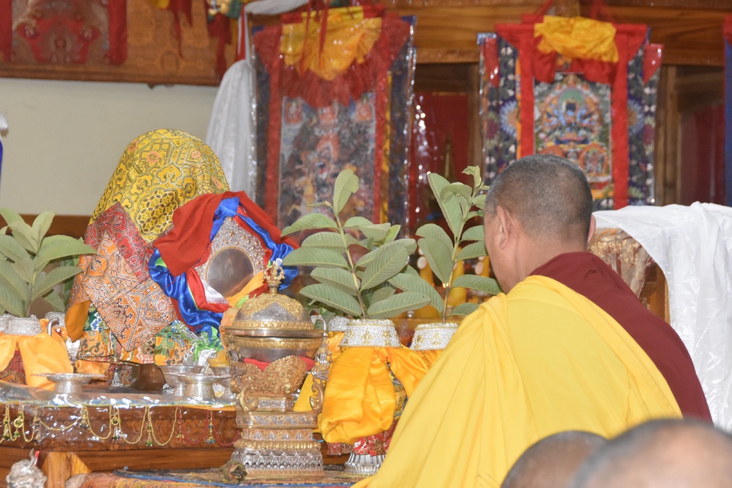༄༅།། དེ་རིང་སྤྱི་ཟླ་ ༩ པའི་ཚེས་བཅུ་ལྷག་དཀར་གཟའ་ཚེས་དགེ་བའི་ཉིན་མང་ཐོས་འདུལ་བ་འཛིན་པ་གྲྭ་ཚང་འདི་ཉིད་ཀྱི་མཁན་རིན་པོ་ཆེ་རྗེ་བཙུན་ངག་དབང་སངས་རྒྱས་མཆོག་ནས་གྲྭ་ཚང་གི་གསར་ཞུགས་གྲྭ་རྒྱུན་གྲངས་སུམ་ཅུ་ཙམ་ལ་དགེ་ཚུལ་གྱི་བསླབ་སྡོམ་སྩལ་གནང་ཞིང་། འདུས་མང་ཚོགས་ཡོངས་ནས་སྔོན་བྱོན་སྟོན་པའི་རྣམ་ཐར་རྗེས་འཛིན་དུ་དགྲ་བཅོམ་གསོལ་སྙོམ་ལ་ཕེབས་པའི་ཚུལ་གྱིས་ལྷུང་བཟེད་མཆོད་པའི་ཉམས་བཞེས་ལྷུར་ལེན་མཛད་དོ། །རྒྱུད་སྨད་དཔེ་མཛོད་ཁང་དྲ་ངོས་རྩོམ་སྒྲིག་པས་༢༠༢༥།༠༩།༡༠ ལ།