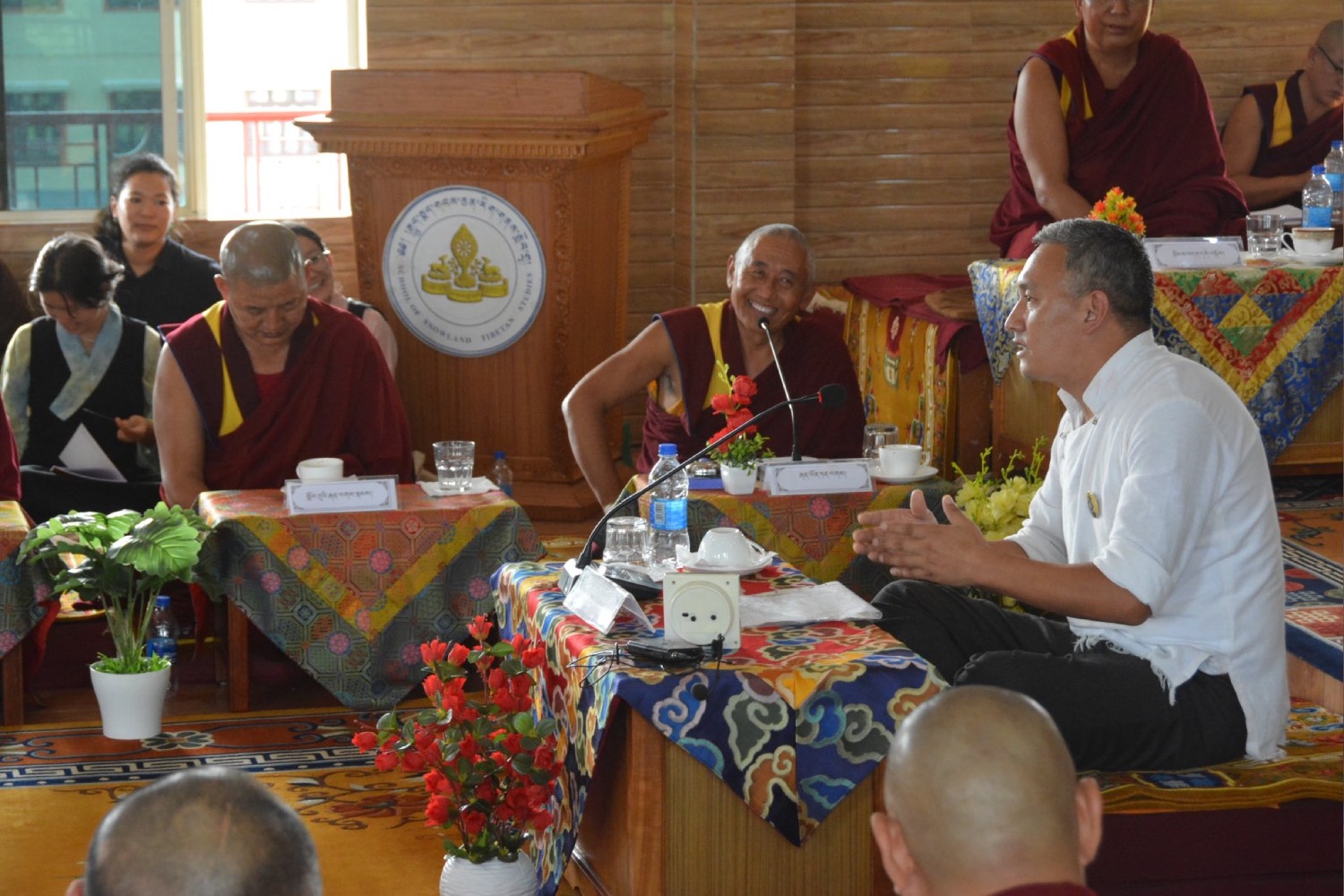 ༄༅། །གསང་ཆེན་རྡོ་རྗེ་ཐེག་པའི་བཤད་སྒྲུབ་ཀྱི་བསྟི་གནས་ཆེན་པོ་འདིར་རིག་པ་འཛིན་པའི་དགེ་འདུན་འདུ་བ་དང་གནས་ཤིང་བསླབ་གསུམ་ཐུགས་ལ་གཞོལ་བའི་ཆ་རྐྱེན་དགོས་མཁོར་དམིགས། སྐབས་འདིའི་གྲྭ་ཚང་གི་སྤྱི་འགན་ལས་ཐོག་པ་རྣམས་ནས་འདུས་མང་གི་བཞུགས་གནས་ཀུན་དགའ་ར་བ་ཐོག་བརྩེགས་ཅན་ཞིག་གསར་དུ་བསྐྲུན་པའི་ལས་འཆར་འདི་ཡང་གྲྭ་ཚང་འདི་ཉིད་ལ་དད་འདུན་ཅན་ཕྱི་ནང་འབྲེལ་ཡོད་རྣམ་པའི་མཐུན་སྦྱོར་དང། སྤྱི་འགན་ཁང་ནས་ཀྱང་སྐུ་ངལ་འབད་ཐབས་གནང་བའི་འོག་ཨར་ལས་འཛུགས་བསྐྲུན་གྱི་ལས་འགོ་འཛུགས་ཐུབ་པ་དང། དང་པོའི་ས་བཅག་རྡོ་འདུལ་གྱི་ཆོ་གའི་རིམ་པ་བརྒྱུད་ལས་དོན་ལམ་ལྷོང་ཡོང་པའི་སྨོན་ཆོག་བཅས་ཀྱི་ལས་ཡུལ་དངོས་སུ་གནང་བའོ། །རྒྱུད་སྨད་དཔེ་མཛོད་ཁང་དྲ་ངོས་རྩོམ་སྒྲིག་པས་ ༢༠༢༥།༠༩།༢༣ལ།