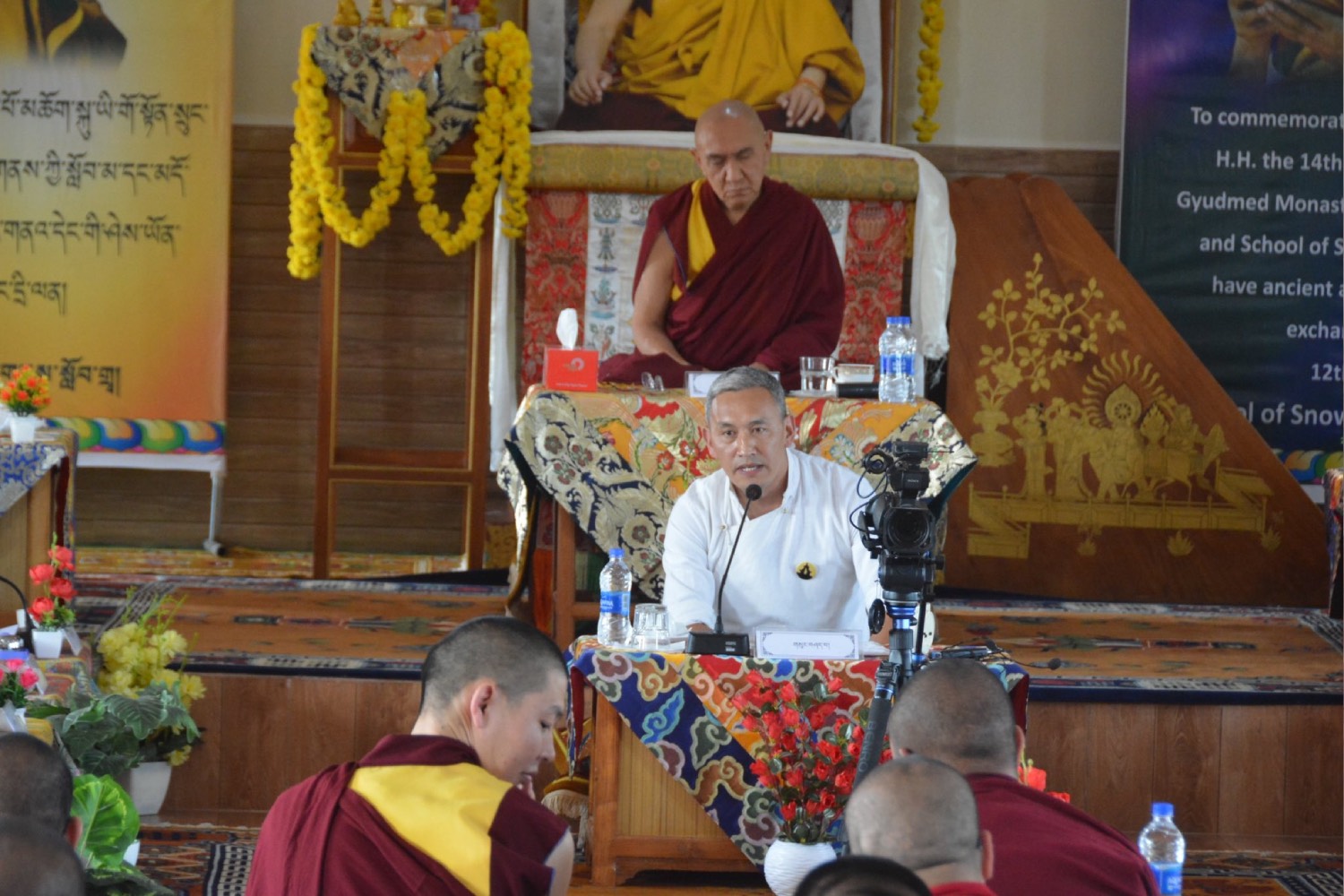 རྩ་བཤད་འགྲེལ་པ་བཞི་སྦྲགས་ཀྱིས་སྣེ་འཛིན་བདེ་གསང་འཇིགས་གསུམ་གྱི་བསྐྱེད་རྫོགས་རྣམ་གྲངས་གསུམ་ལ་སོགས་པའི་ལོ་གཅིག་གི་འཆད་ཉན་གནང་སྒོ་མཐའ་ཡས་པ་དེ་དག་དེ་རིང་ལེགས་པར་གྲུབ་པའི་བླ་མ་རྒྱུན་མཆོད་དང་འབྲེལ། བུ་སློབ་རྡོ་རྗེ་འཛིན་པ་དག་གིས་མཁན་ཆེན་རྡོ་རྗེ་འཆང་ཆེན་པོའི་དྲུང་ནས་འགྲེལ་དབང་ཞུ་བ་དང་། འཆད་ཉན་ལེགས་པར་གྲུབ་པའི་དགའ་སྟོན་འགྲེལ་སྐྱིད་དང་ཚོགས་ཀྱི་འཁོར་ལོའི་མཆོད་པས་སློབ་དཔོན་མཉེས་པར་བྱས་པའི་རྒྱུད་དོན་ཇི་བཞིན་ཕྱག་ལེན་དུ་བསྟར་བའི་རིམ་པའོ། །རྒྱུད་སྨད་དཔེ་མཛོད་ཁང་དྲ་ངོས་རྩོམ་སྒྲིག་པས་ ༢༠༢༥།༡༠།༡༨ལ།