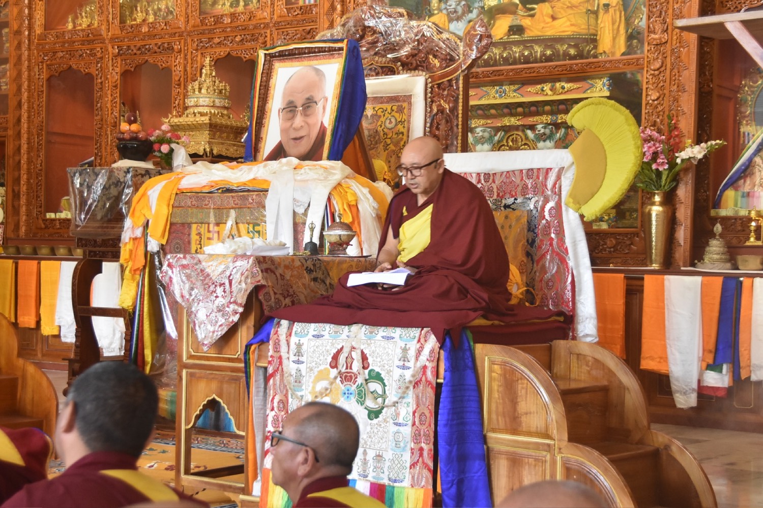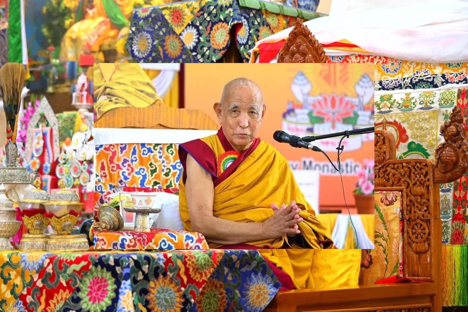 ༄༅། །བོད་བསྟན་སྲིད་སྤྱི་དང་ལྷག་པར་དུ་ས་སྟེང་༧རྒྱལ་བསྟན་ཡོངས་ཀྱི་མངའ་བདག་༧གོང་ས་༧སྐྱབས་མགོན་༧རྒྱལ་དབང་ཡིད་བཞིན་ནོར་བུའི་སྐུ་ཚེ་མཛད་འཕྲིན་རྒྱས་ཆེད་ལྷ་བླའི་ལུང་བཞིན་ཞབས་རིམ་གནས་བརྟན་ཕྱག་མཆོད་དང་། རྟེན་ཁྲུས་ཡུལ་ཁྲུས་འཕྲལ་མྱུར་གནད་སྨིན་དགོས་གལ་གཞུང་སའི་བཀའ་ཡིག་ལྟར་དེ་རིང་དཔལ་ལྡན་སྨད་རྒྱུད་གྲྭ་ཚང་གི་འདུས་མང་ཡོངས་སུ་རྫོགས་པའི་འདུས་པ་ཆེན་པོའི་ཐོག་བསྟན་དོན་ཞབས་རིམ་ཁག་གནད་སྨིན་ཞུས་པ་ལགས། རྒྱུད་སྨད་དཔེ་མཛོད་ཁང་དྲ་ངོས་རྩོམ་སྒྲིག་པས་ ༢༠༢༥།༡༠།༠༤ རེས་གཟའ་སྤེན་པ་ཉིན།