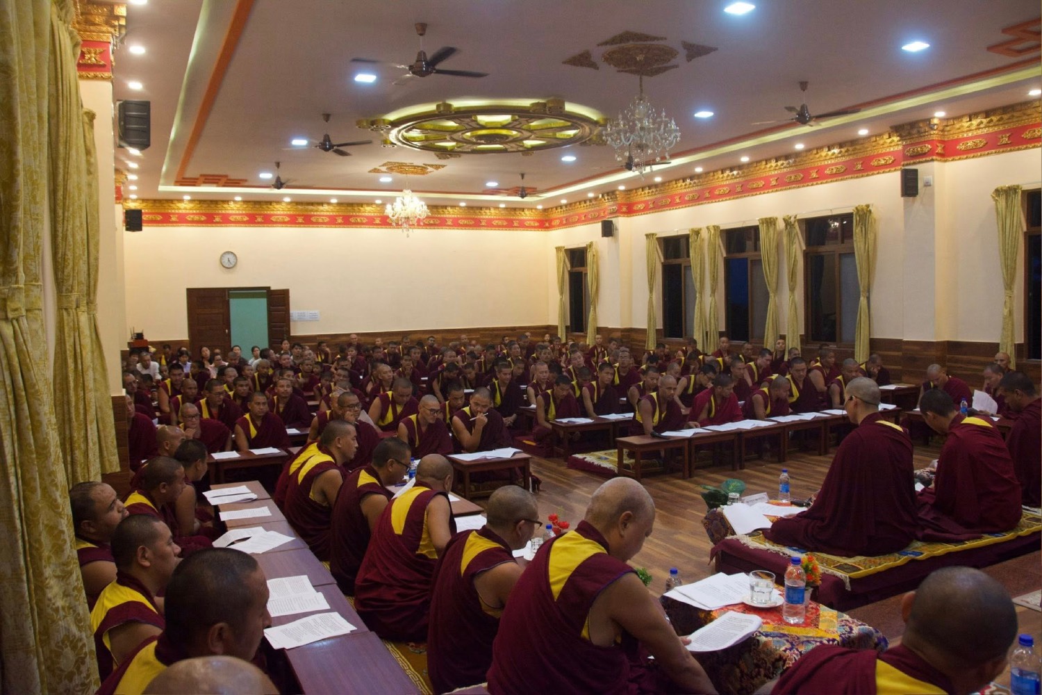 ༄༅། །གསང་ཆེན་སྨད་རྒྱུད་གྲྭ་ཚང་གི་སློབ་གཉེར་བ་རྣམས་ཀྱིས་ཟླ་རེ་ལ་སྐྱོར་སྦྱོང་ཆེན་མོ་རེ་དང་དམ་བཅའ་ཆེན་མོ་རེ་ཚོགས་བཞིན་ཡོད་པ་ལྟར། ཟླ་འདིའི་ཕྱི་ཚེས་ ༡༧ དང་ ༡༨ གཉིས་ལ་སྐྱོར་སྦྱོང་ཆེན་མོ་དང་དམ་བཅའ་ཆེན་མོ་གཉིས་ཚོགས་བཞིན་པ། རྒྱུད་སྨད་དཔེ་མཛོད་ཁང་དྲ་ངོས་རྩོམ་སྒྲིག་པས་༢༠༢༥།༡༠།༡༧-༡༨ལ།