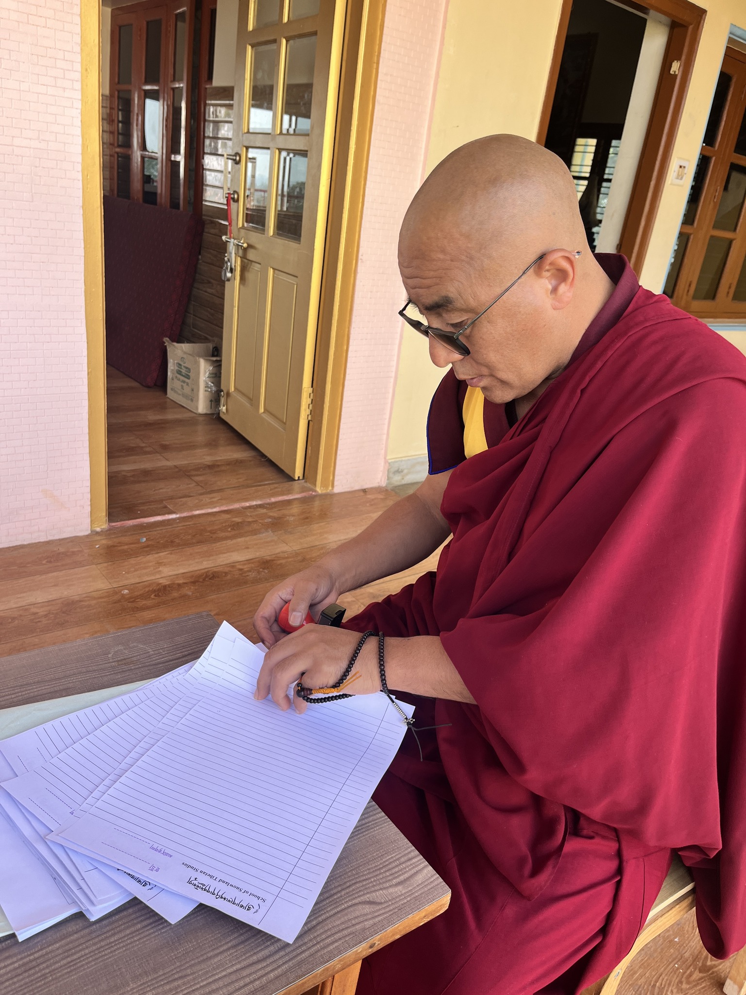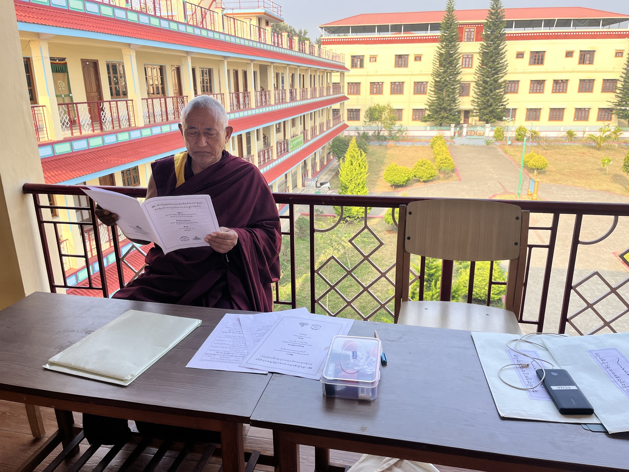 ༄༅། །གསང་ཆེན་དཔལ་ལྡན་སྨད་རྒྱུད་གྲྭ་ཚང་གསང་སྔགས་བསྟན་པའི་བཤད་སྒྲུབ་ཀྱི་བསྟི་གནས་འཛིན་པ་མཚན་གྱི་སྙན་པ་ཡོངས་སུ་གྲགས་པ་འདི་ཡི་དགེ་འདུན་གྱི་འཚོ་བའི་མཐུན་འགྱུར་དེ་ཡང་སྔར་བས་ལེགས་ཕྱོགས་ནས་ལེགས་སུ་འགྲོ་མུས་ལྟར། སྐབས་འདིའི་སྤྱི་འགན་འདུས་སྤྱི་ལྷན་ཁང་ནས་འདུས་མང་གི་འཕྲལ་ཕུག་མངོན་འཕྲད་ཀྱི་དཀའ་ངལ་སེལ་ཕྱིར་དགེ་འདུན་པའི་བཞུགས་ཤག་ཐོག་བརྩེགས་གསུམ་ཅན་ཞིག་