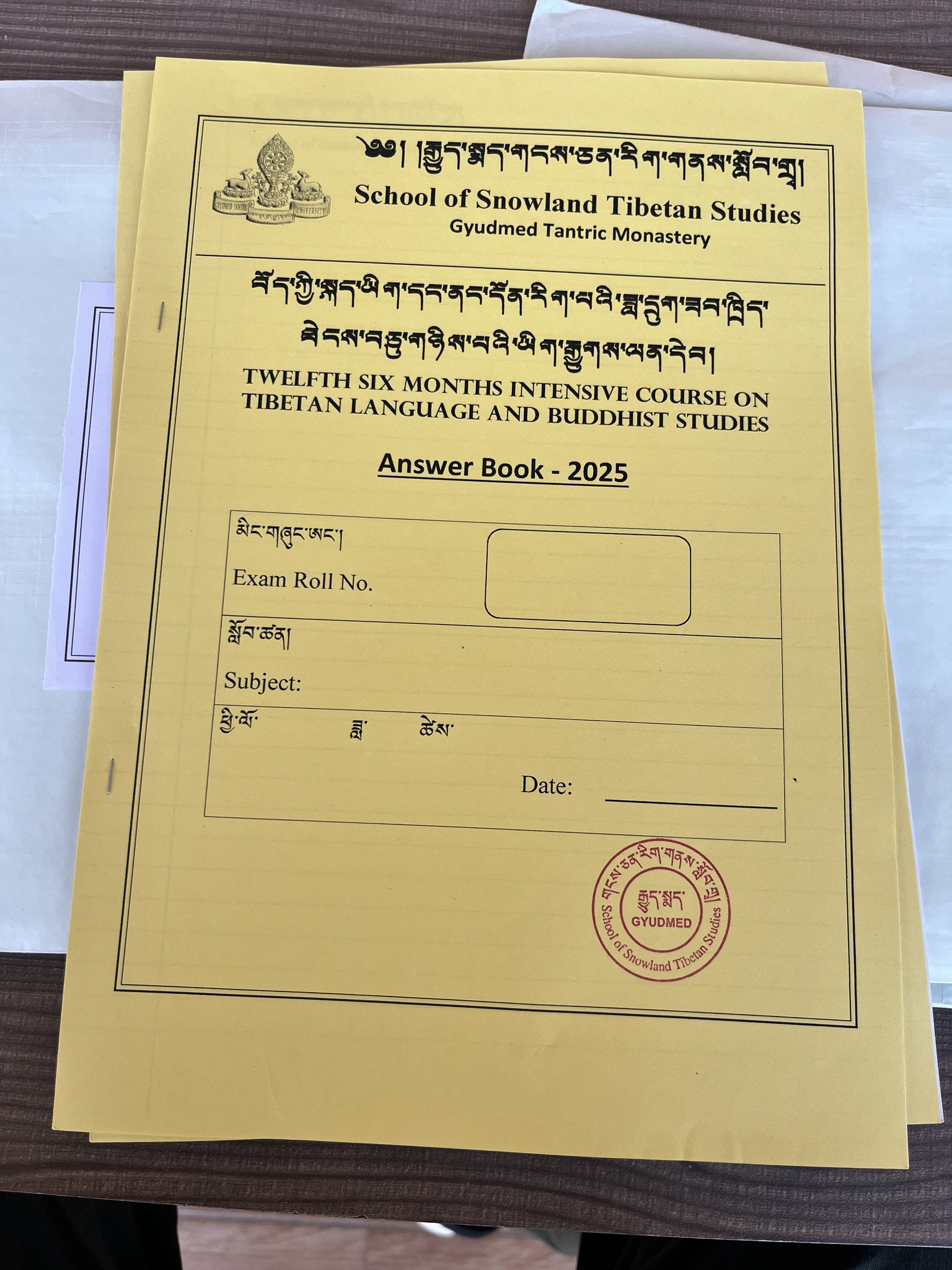 ༄༅། །དཔལ་ལྡན་སྨད་རྒྱུད་གྲྭ་ཚང་དུ་སྤྱི་ལོ་ ༢༠༢༥ ཟླ་ ༡༢ ཚེས་ ༢༢ ཉིན་བོད་ཀྱི་སྐད་ཡིག་དང་ནང་དོན་རིག་པའི་ཟླ་དྲུག་ཟབ་ཁྲིད་ཐེངས་བཅུ་གཉིས་པ་ལ་ཞུགས་པའི་སློབ་ཕྲུག་རྣམས་ཀྱི་སྔོན་འགྲོའི་ཆོས་འབྱུང་དང་། གཞུང་ཆེན་དབུ་མ་དང་ཕར་ཕྱིན་བཅས་ཀྱི་བྲིས་རྒྱུགས། ཉིན་དང་པོ། རྒྱུད་སྨད་དཔེ་མཛོད་ཁང་དྲ་ངོས་རྩོམ་སྒྲིག་པས་ ༢༠༢༥།༡༢།༢༢ ལ།